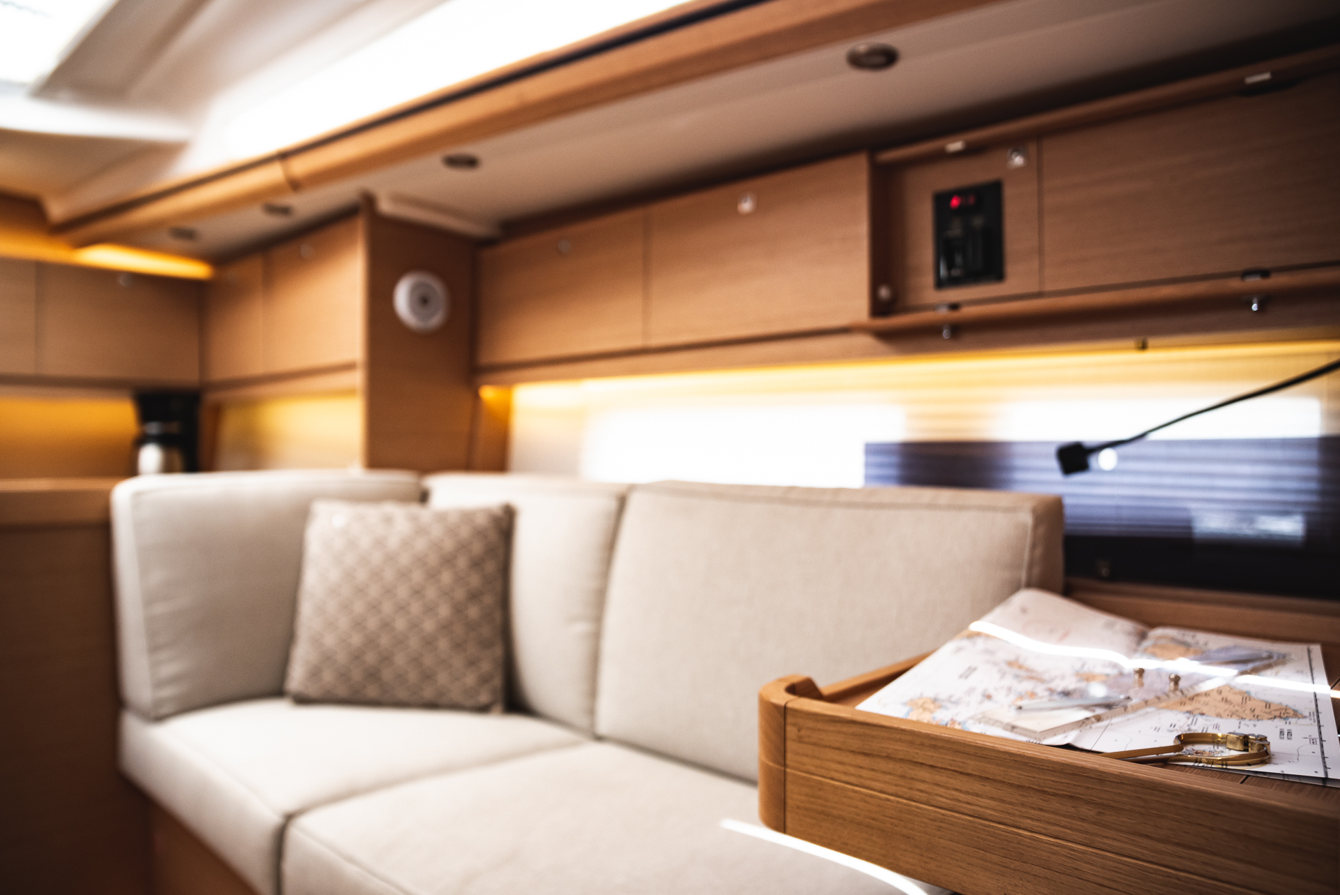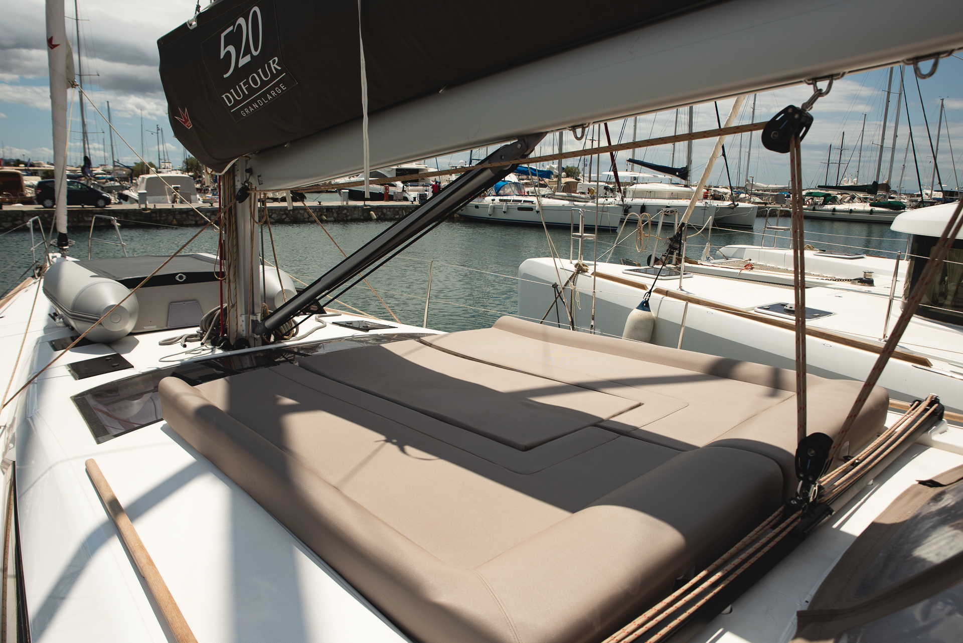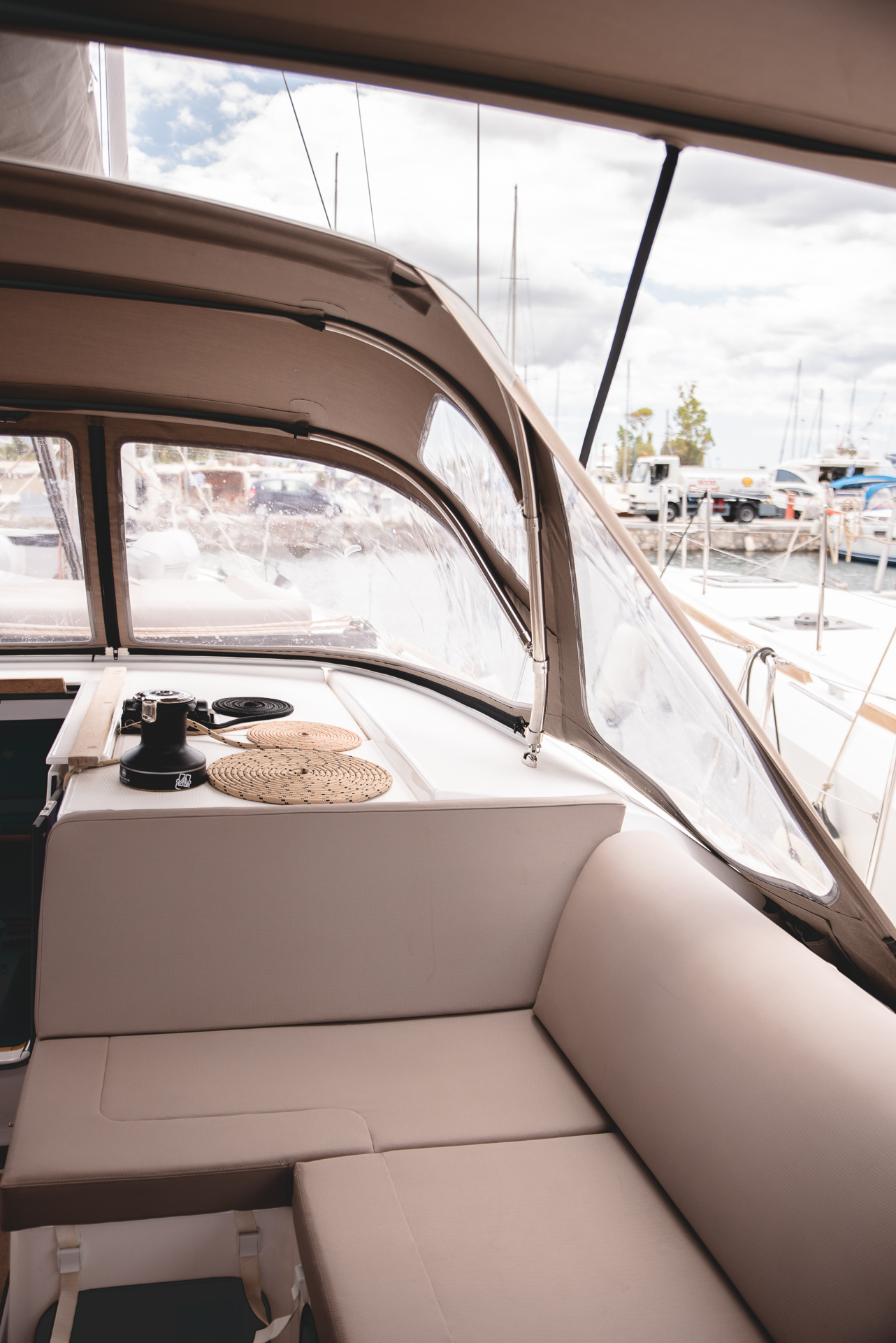| Outside | Badeleiter, Biminitop, Cockpitdusche, Cockpitpolster, Cockpittisch, Gangway, Grill, Schnorchelausrüstung, Sprayhood |