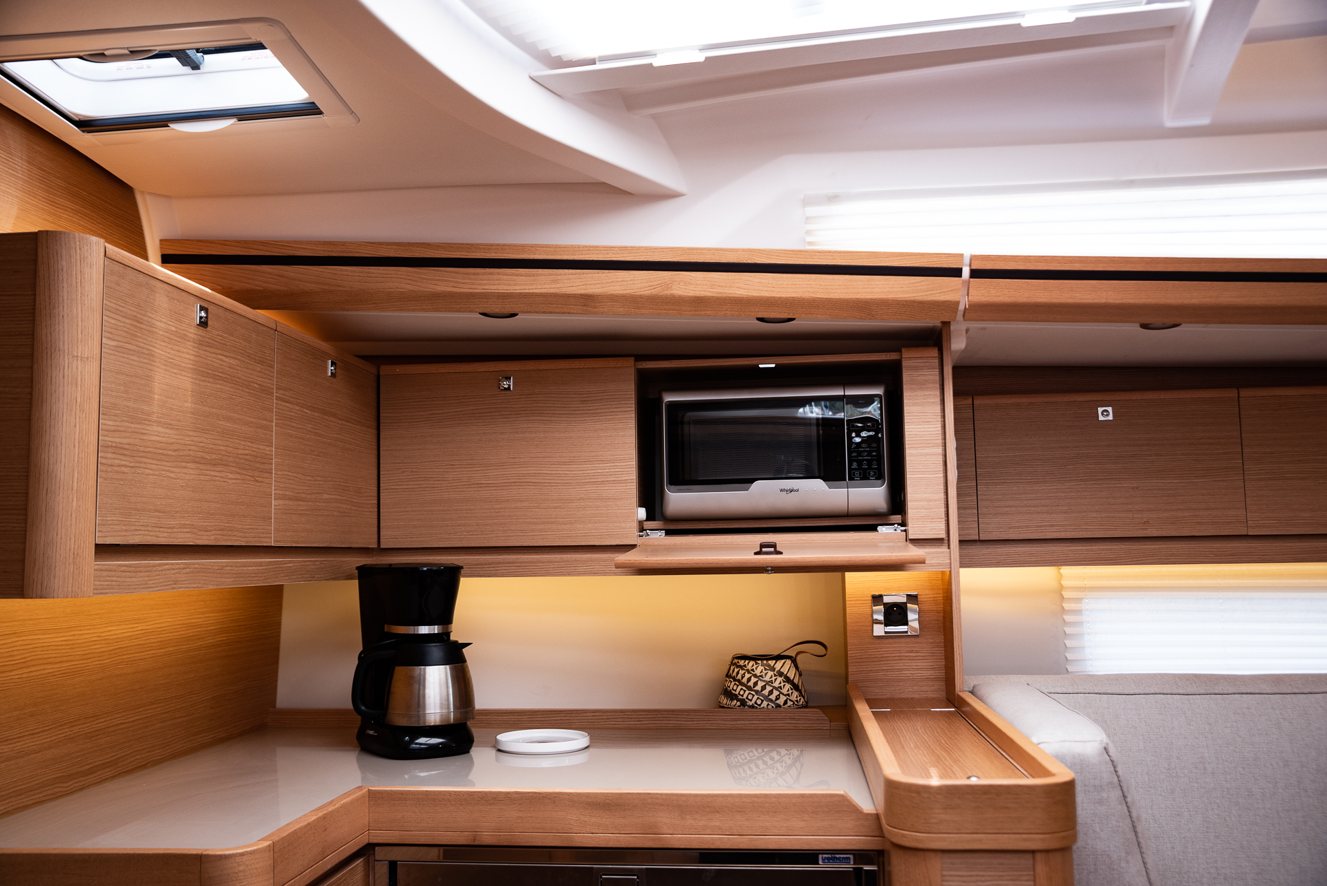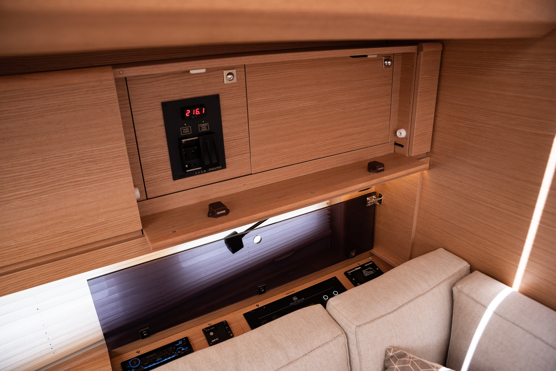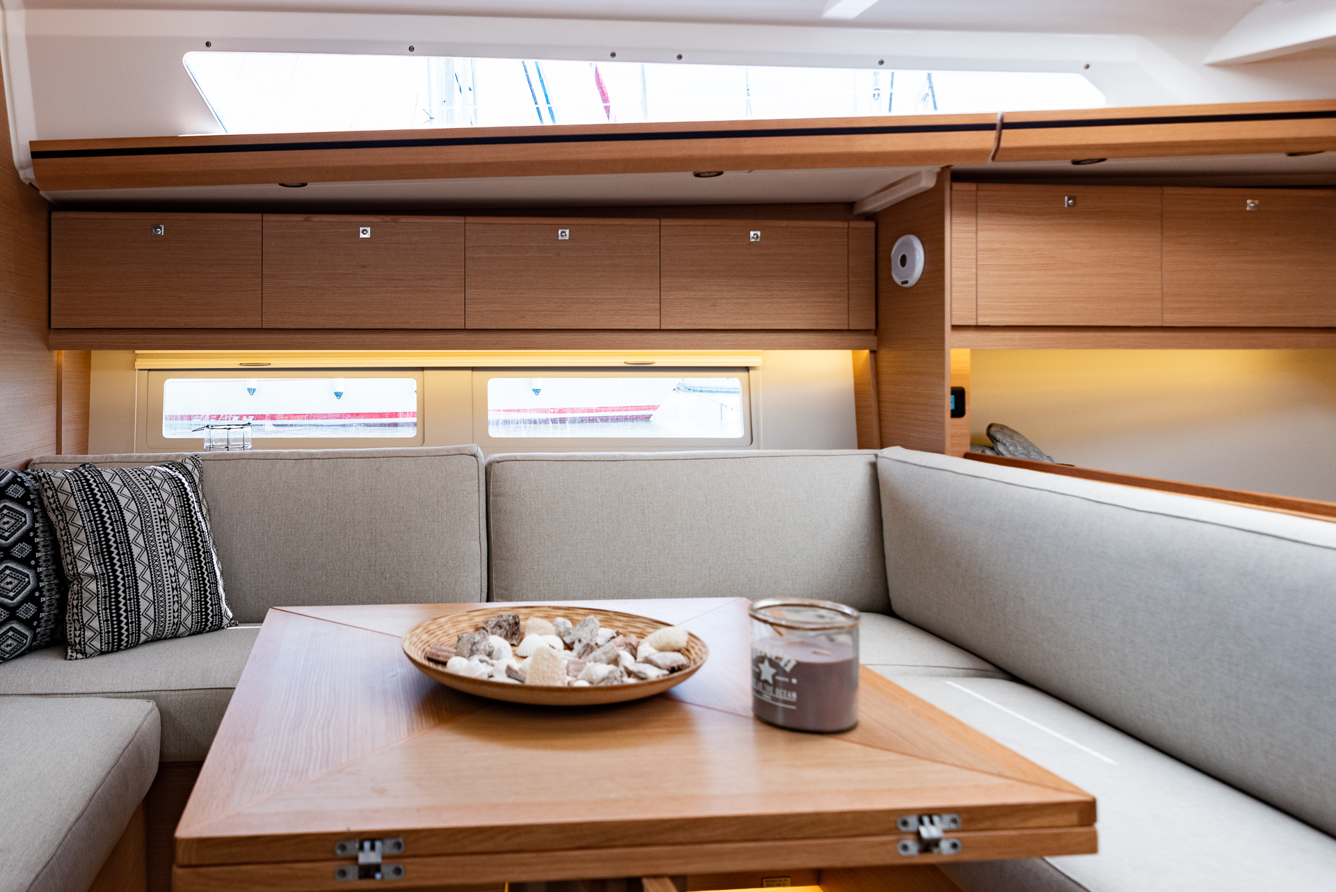 | Outside | Badeleiter, Biminitop, Cockpitdusche, Cockpitpolster, Cockpittisch, Gangway, Grill, Schnorchelausrüstung, Sprayhood |