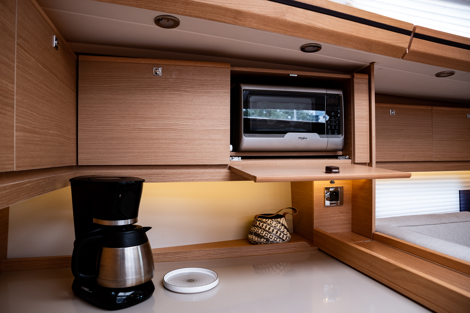 | Inside | Generator, Klimaanlage (ohne Landstrombedarf), Kühlschrank, Pantryausstattung, Salontisch absenkbar, Ventilatoren in Kabinen |