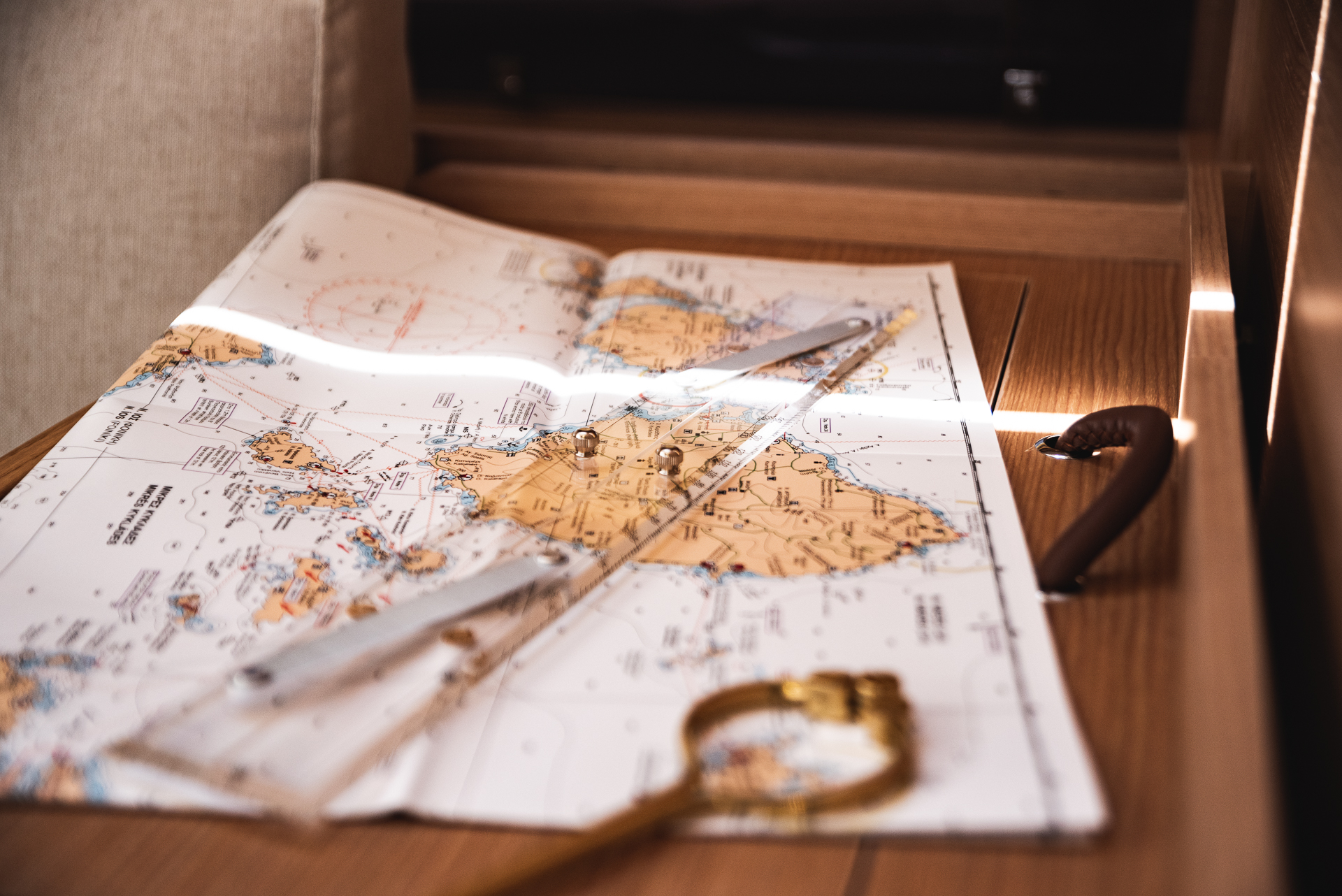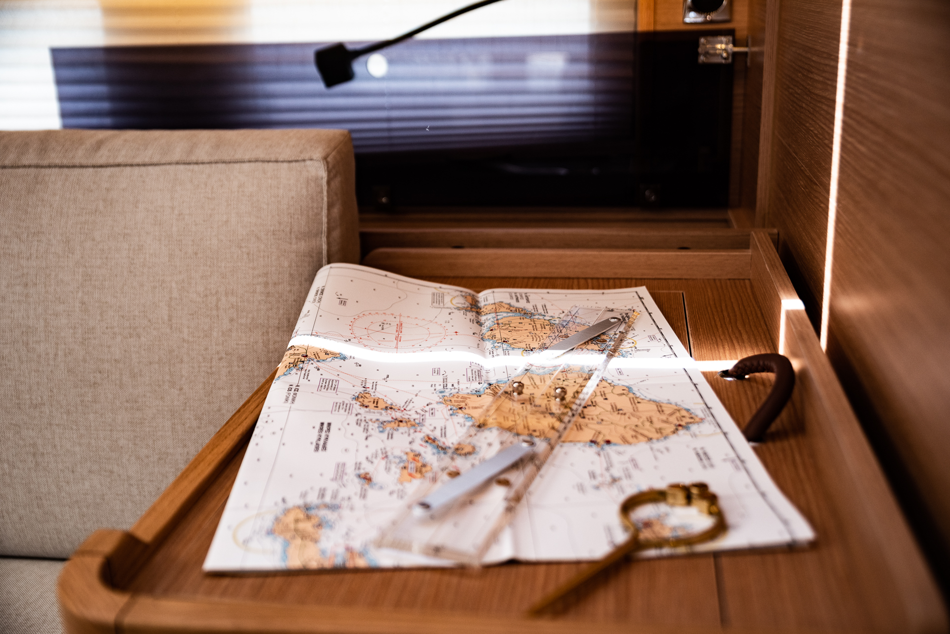 | Navigation | GPS mit Kartenplotter im Cockpit, Tridata (Log, Echolot, Windm.) |