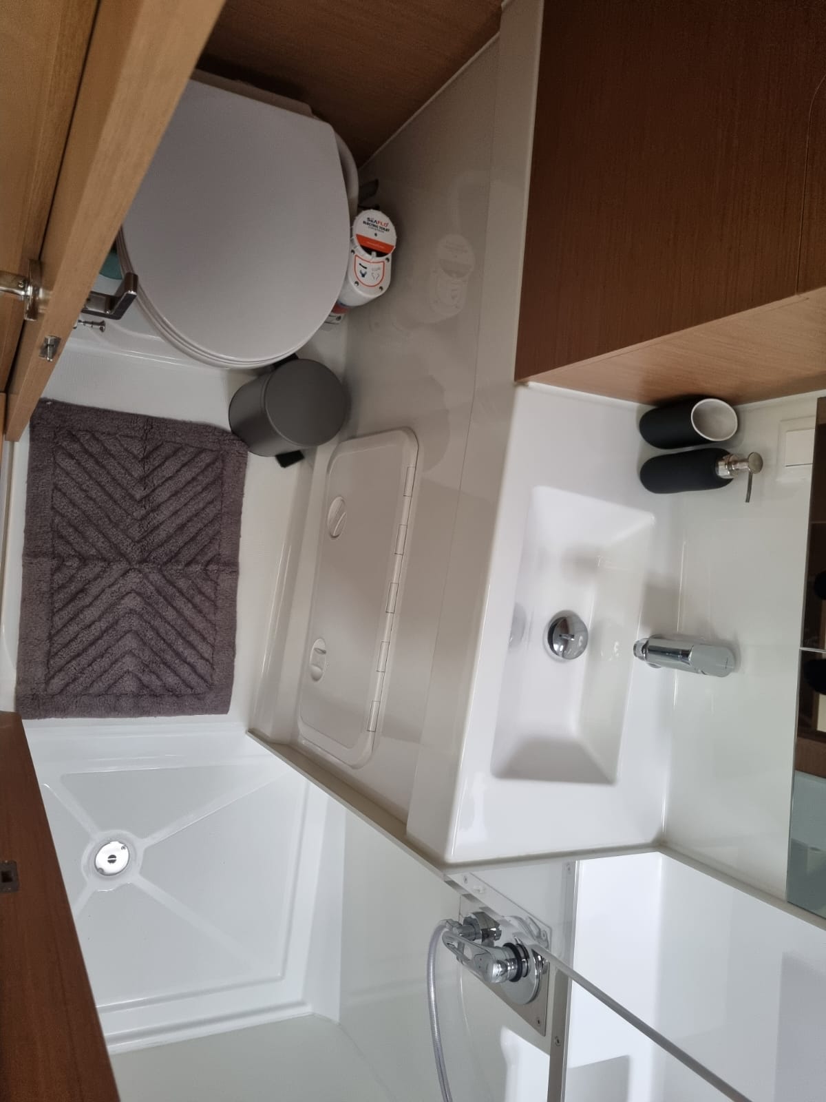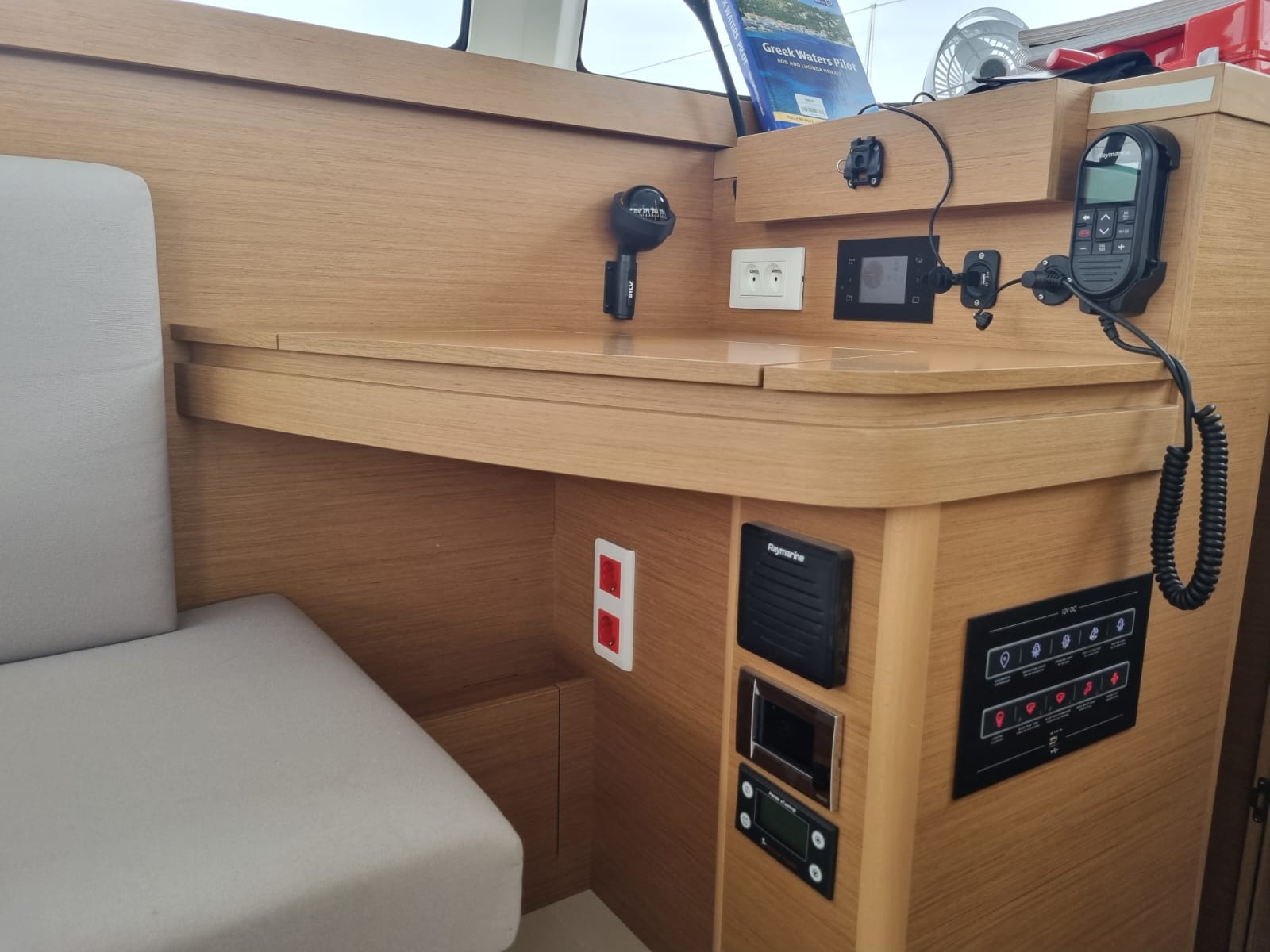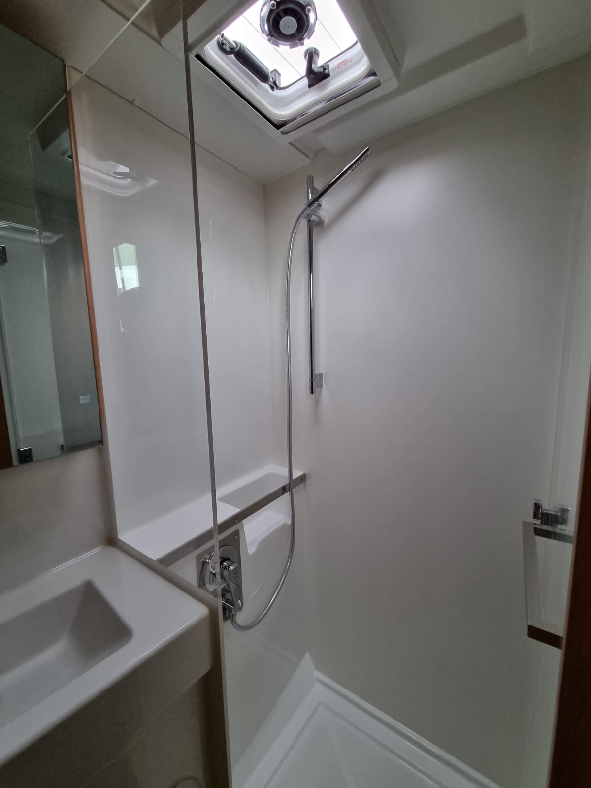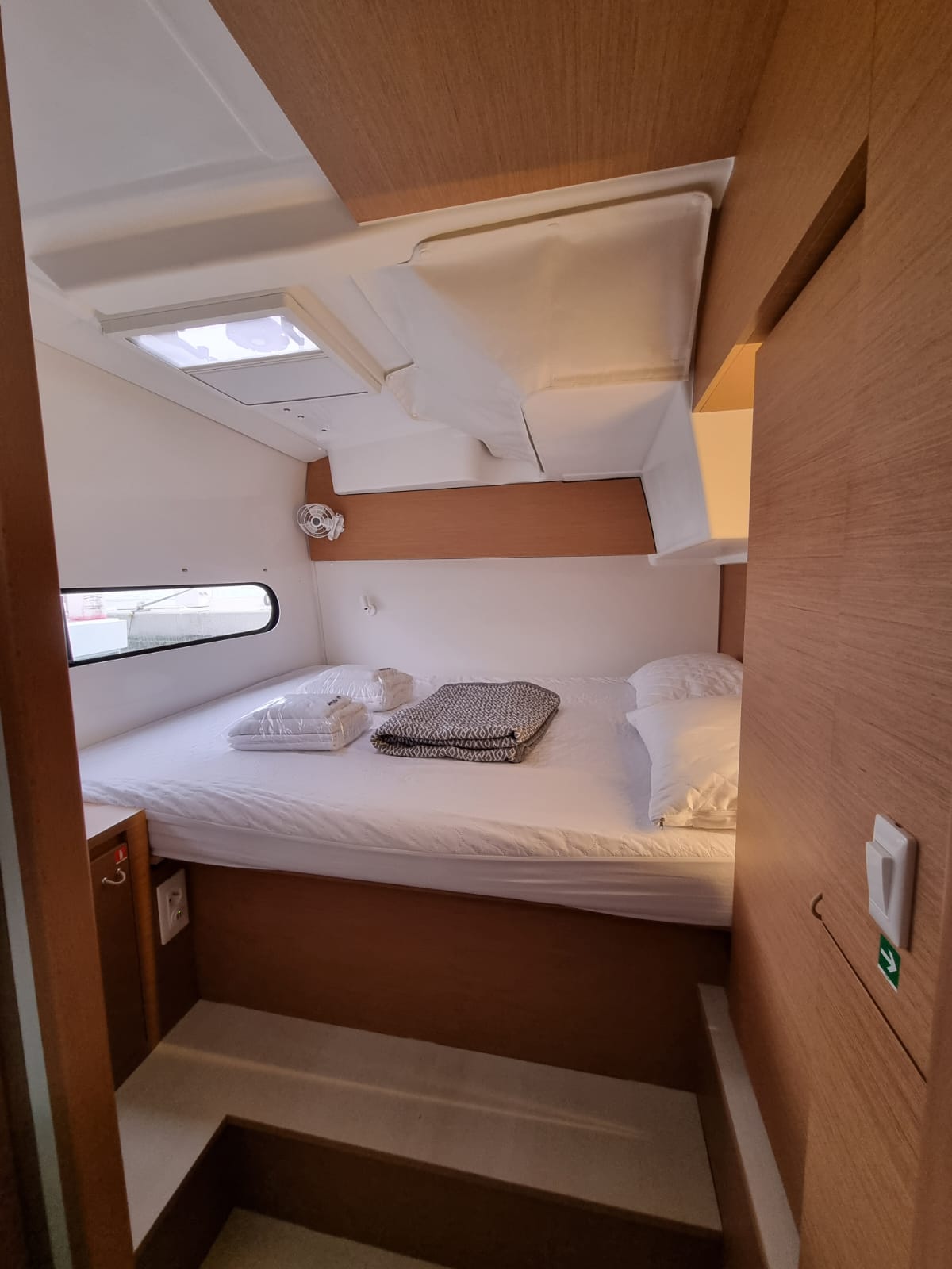 | Inside | 2. Kühlschrank, Eiswürfelmaschine, Espresso Maschine, FUSION Sound System, Generator, Inverter 12V/220V, Klimaanlage (ohne Landstrombedarf), Radio mit Bluetooth, TV, USB Steckdosen in Salon und Kabinen, Ventilatoren in Salon und Kabinen, Watermaker, WC (elektr.), Weinkühlschrank |