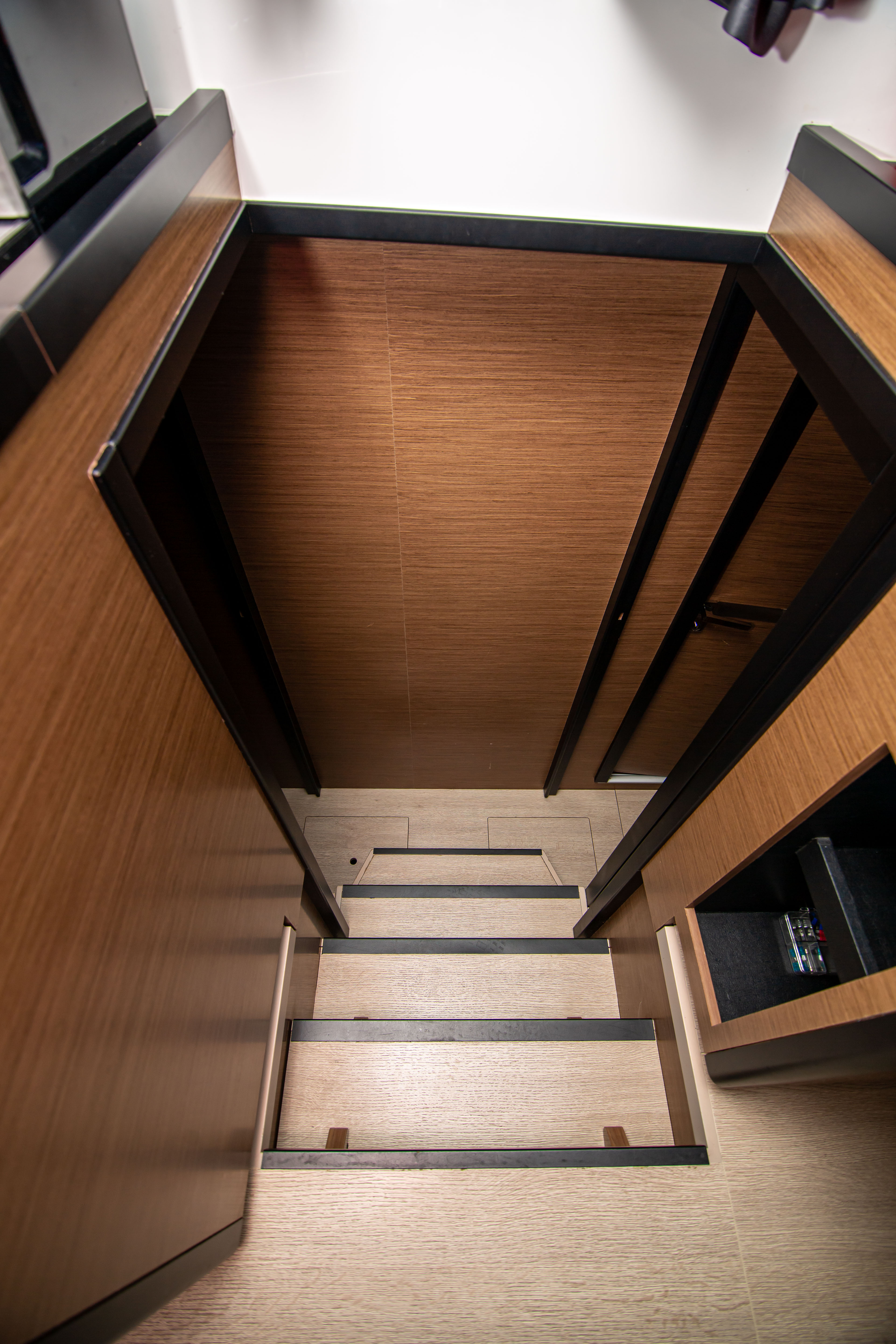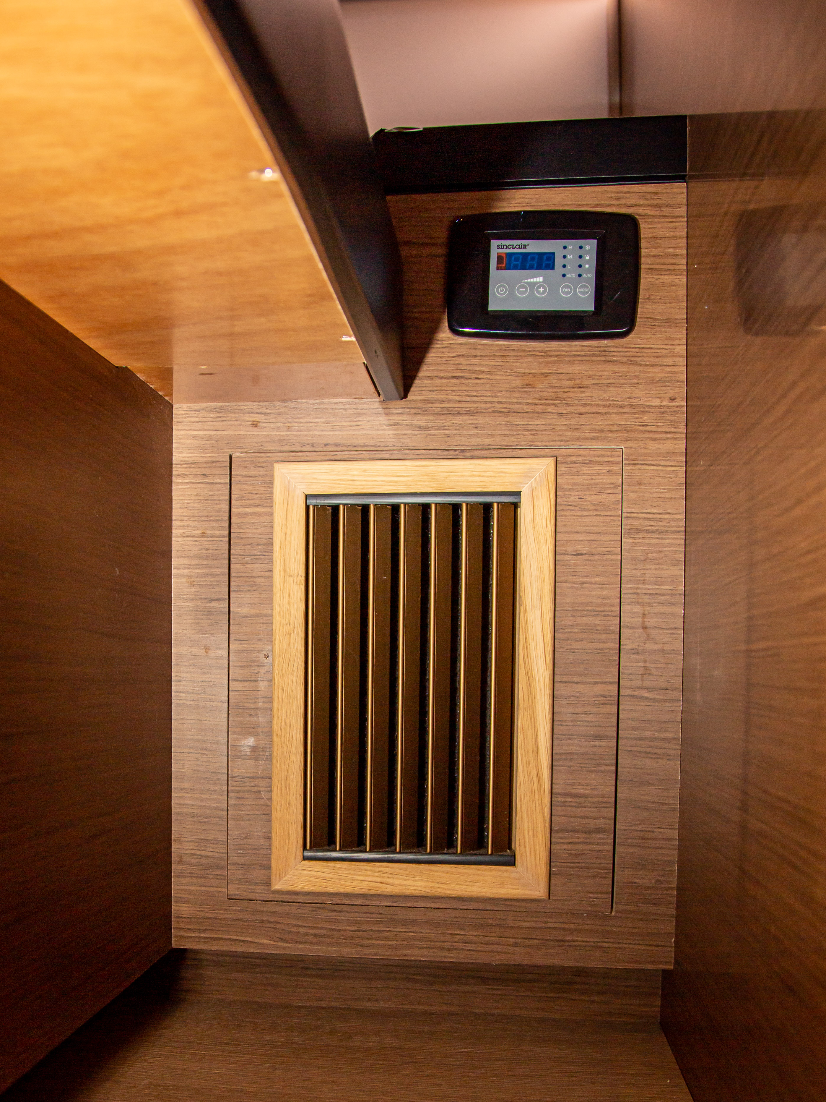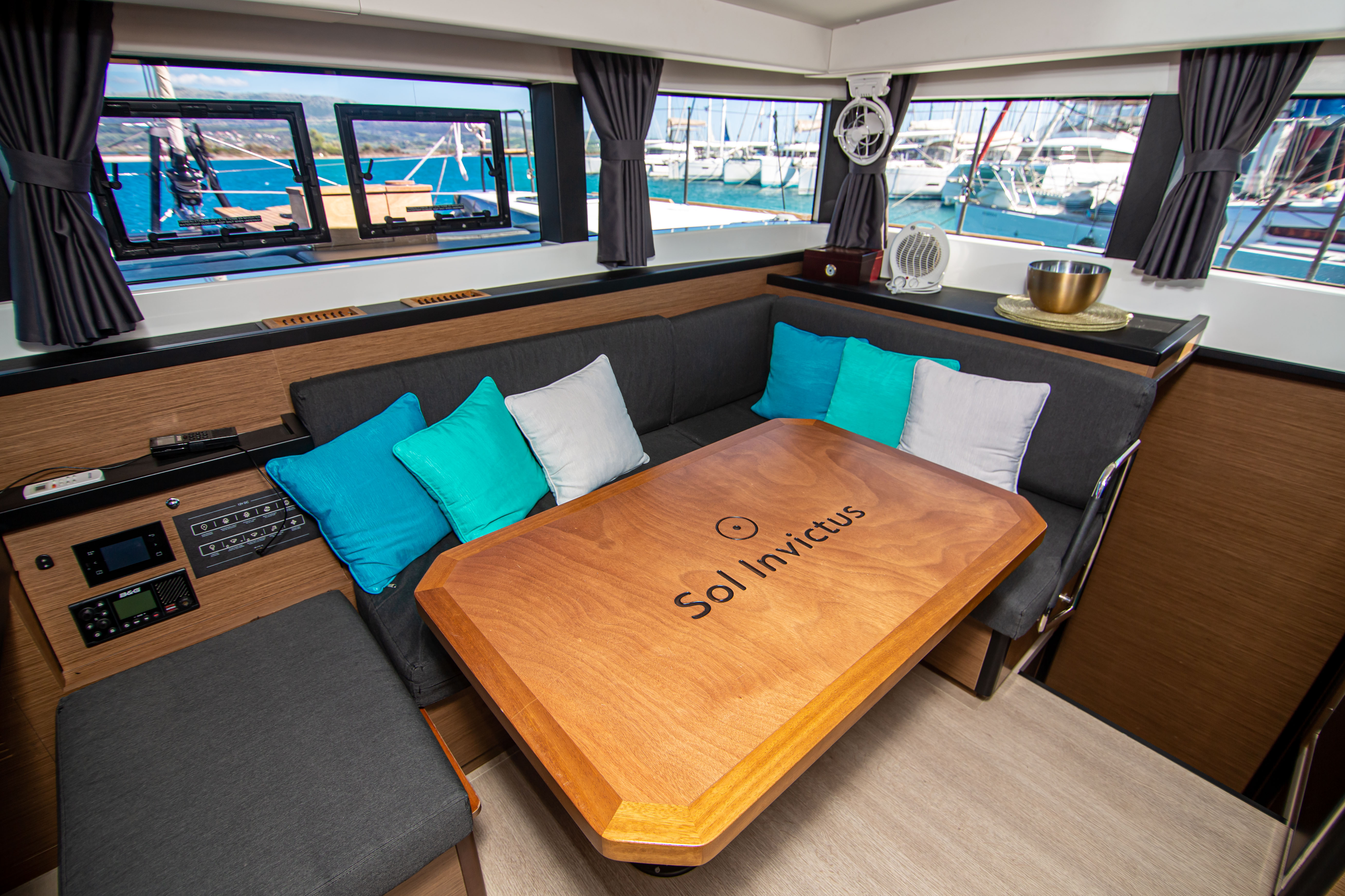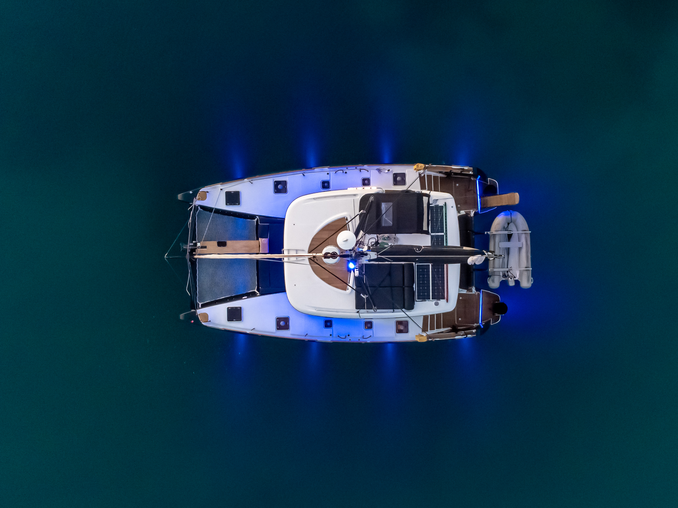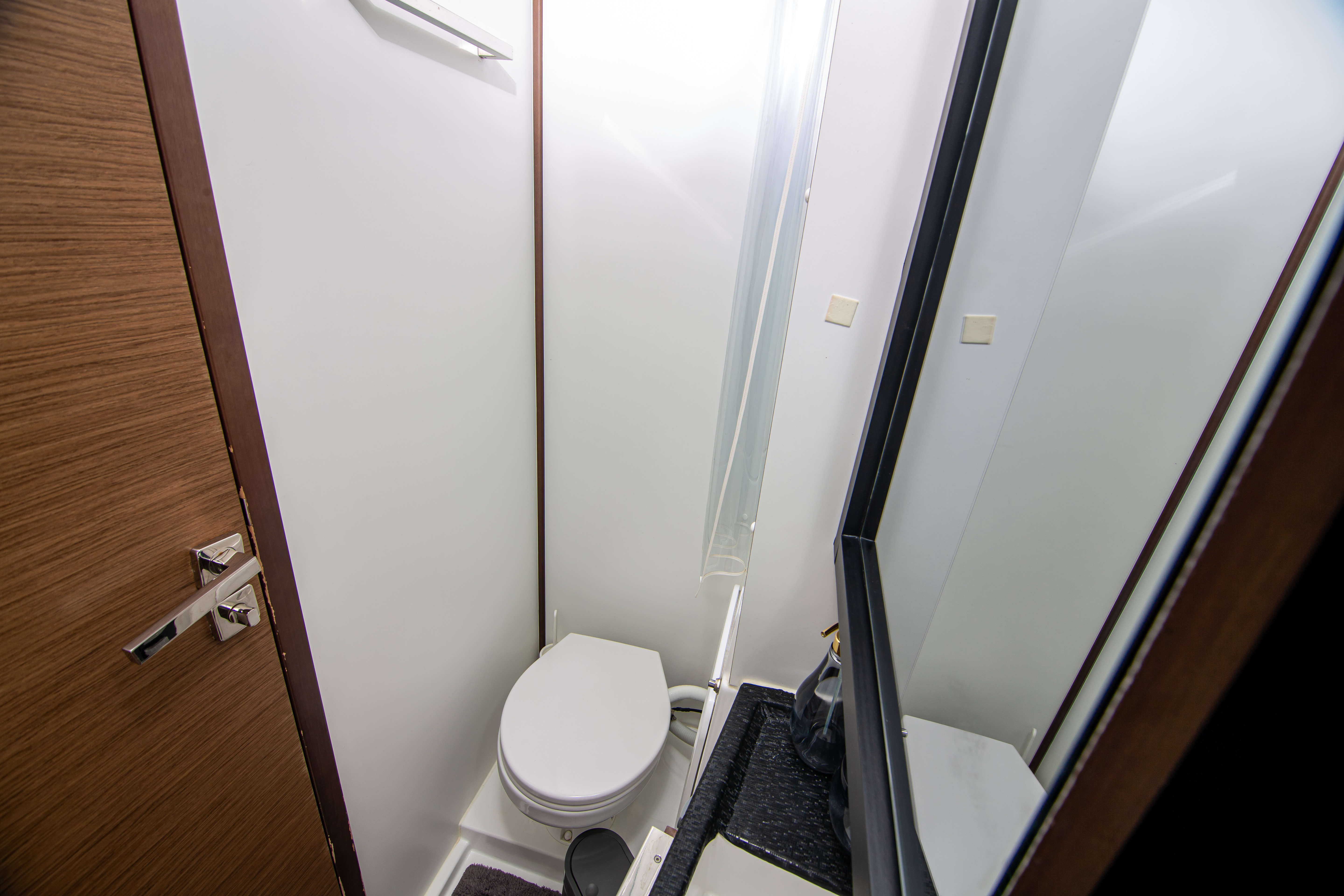 | Inside | 2. Kühlschrank, Eiswürfelmaschine, Espresso Maschine, Frischwasserpumpe, FUSION Sound System, Generator, Inverter 12V/220V, Klimaanlage (ohne Landstrombedarf), Pantryausstattung, Playstation, Radio mit Bluetooth, Smart-TV, USB Steckdosen in Salon und Kabinen, Ventilatoren in Salon und Kabinen, Watermaker, WC (elektr.) |