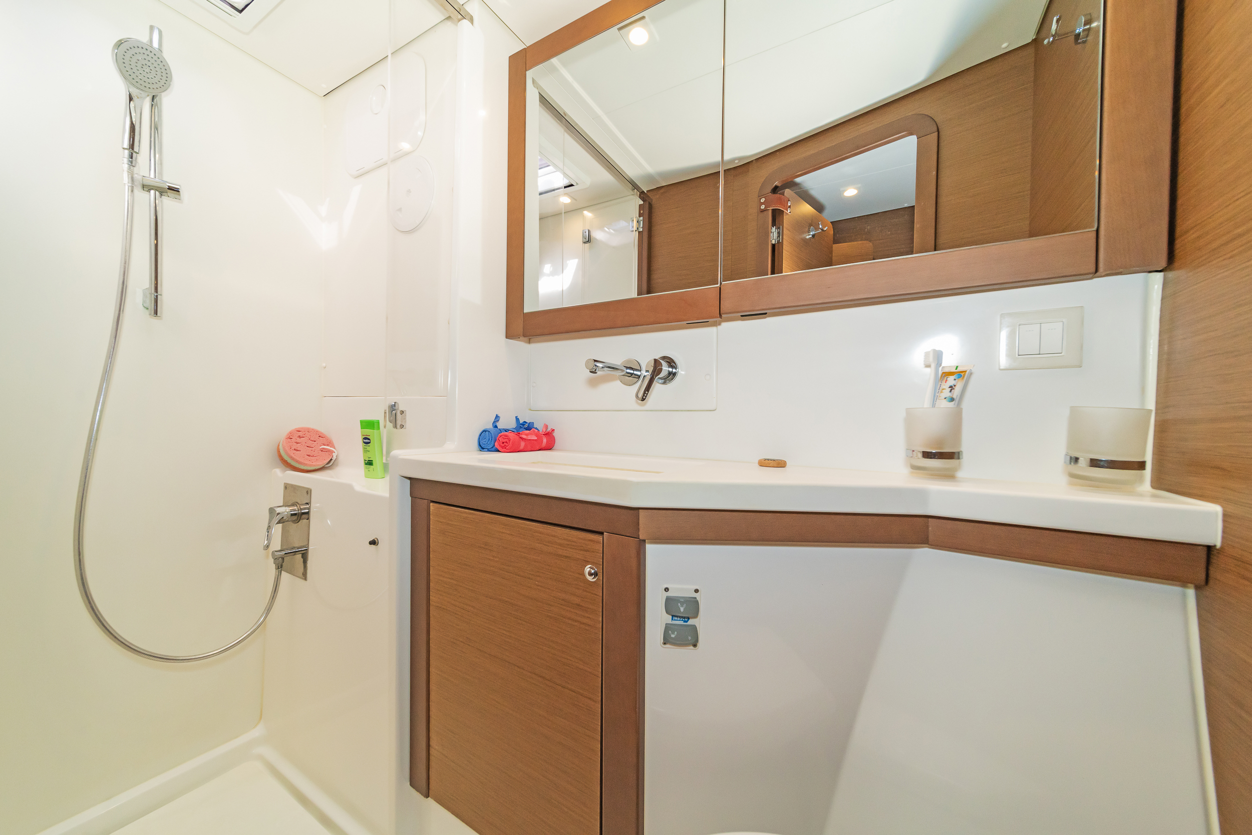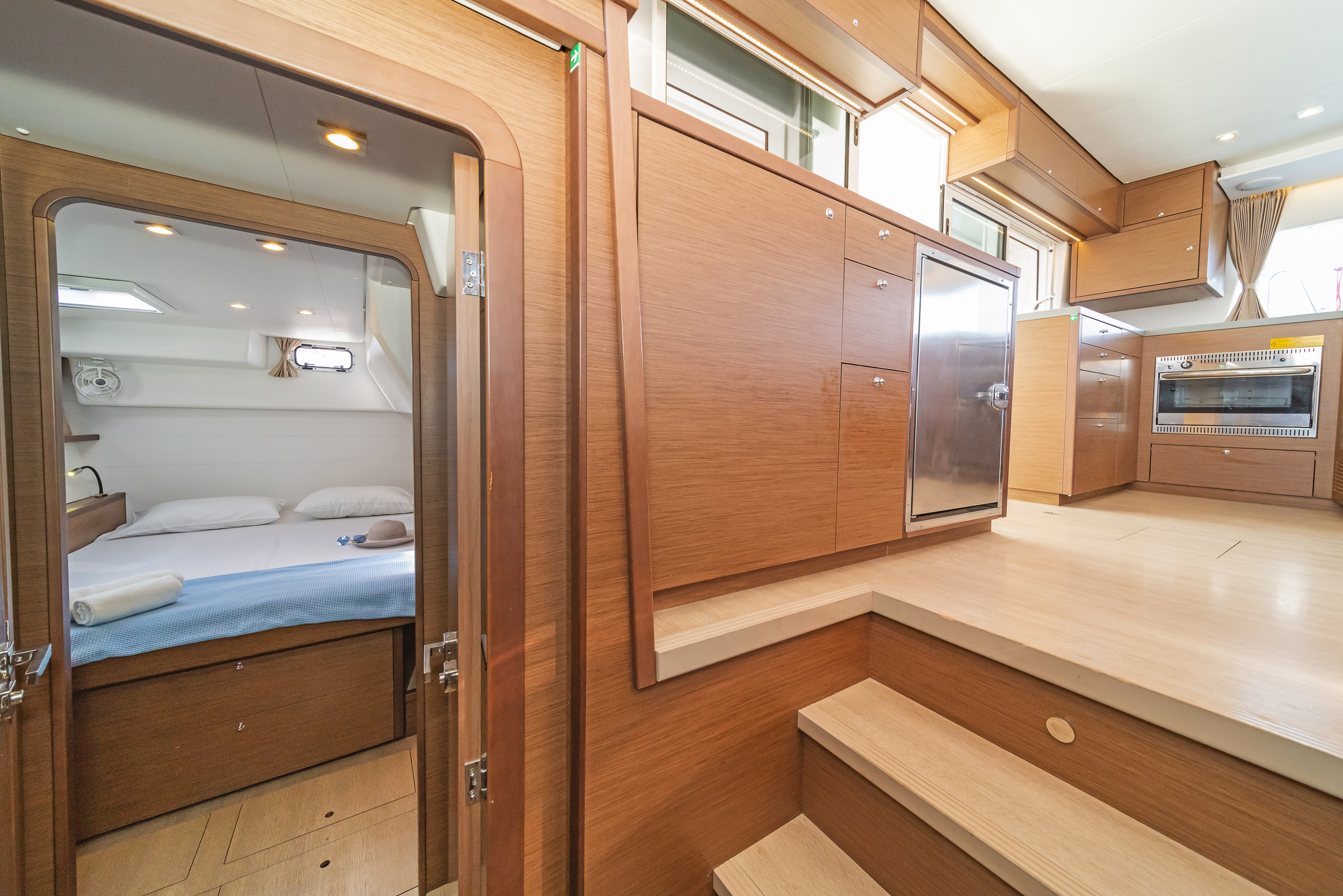 | Inside | 220V Steckdosen, Gasherd, Generator, Inverter 12V/220V, Klimaanlage (ohne Landstrombedarf), Kühlschrank, Ladegerät, Pantryausstattung, Radio mit CD, AUX und USB, USB Steckdose, USB-Ladegerät für Mobilgeräte, Ventilatoren in Kabinen, Warmwasser, Watermaker, WC (elektr.) |