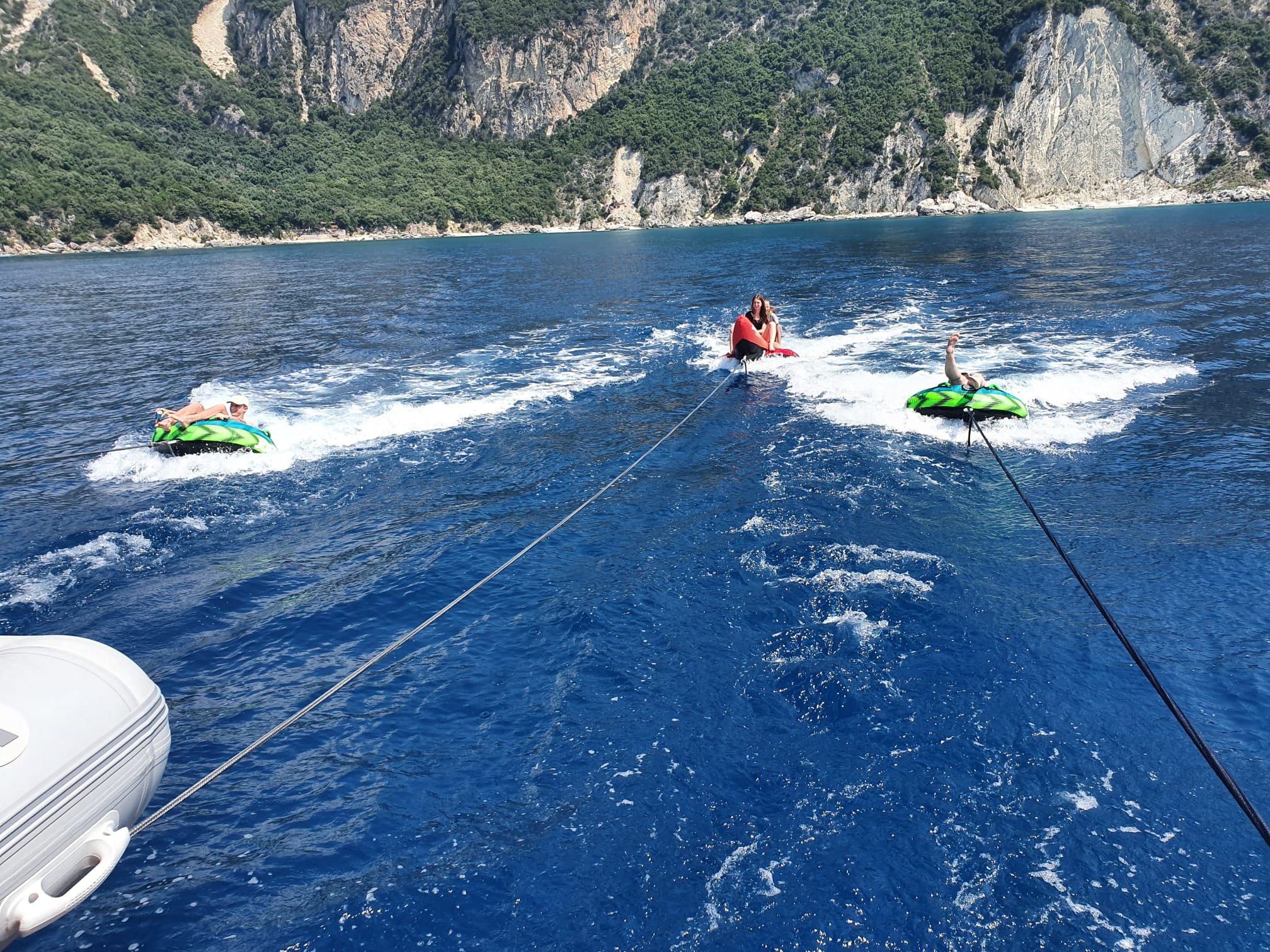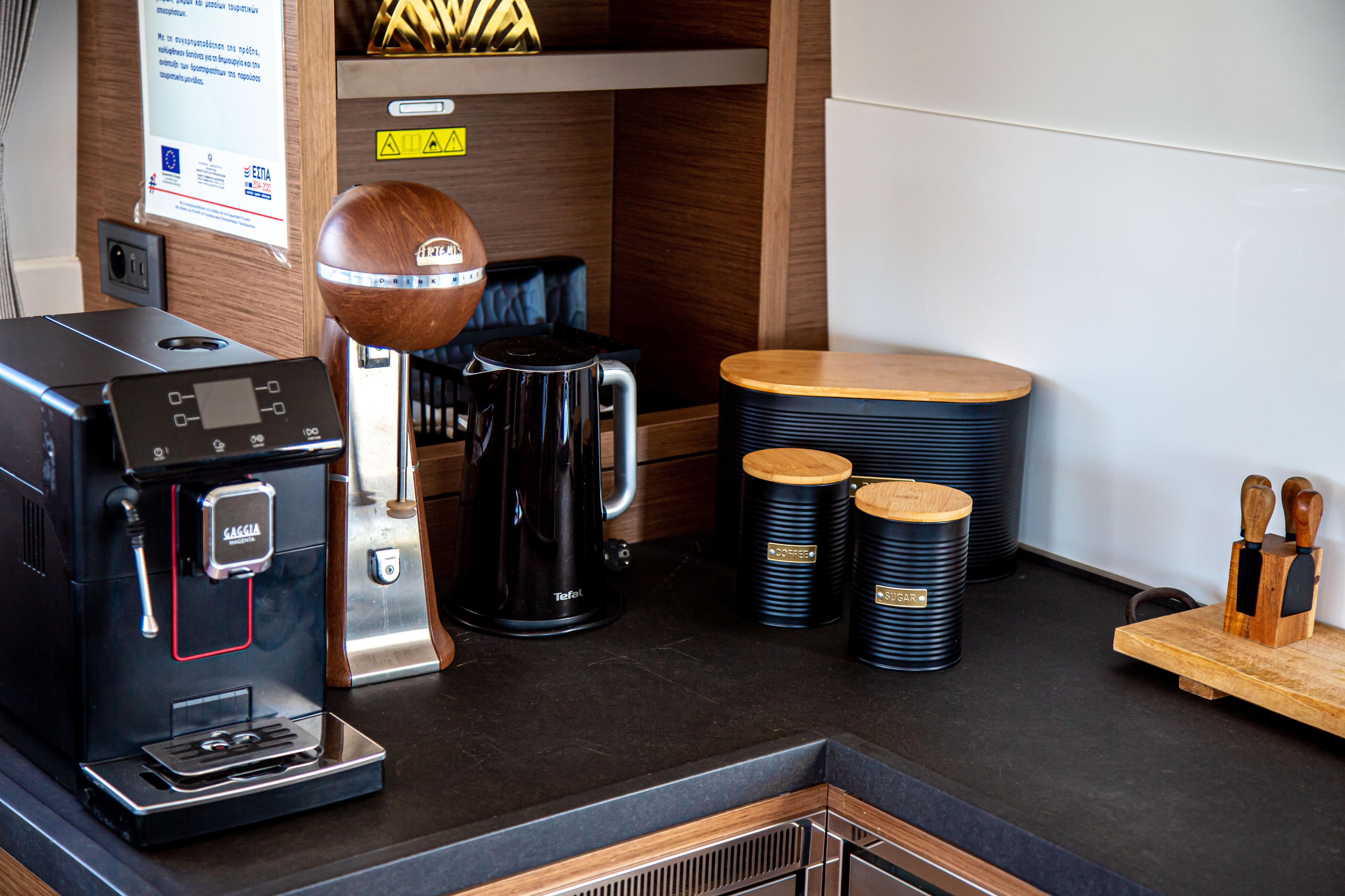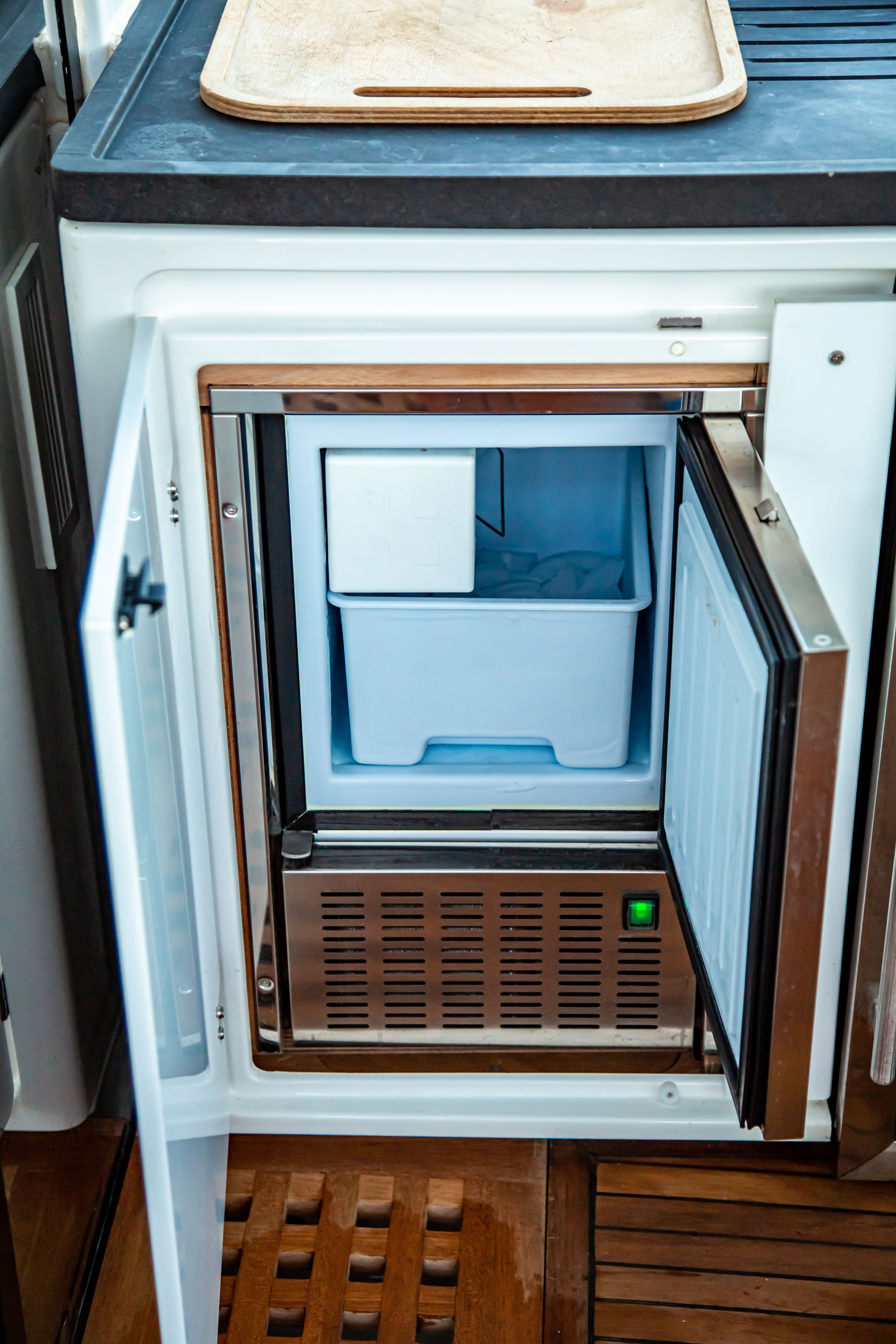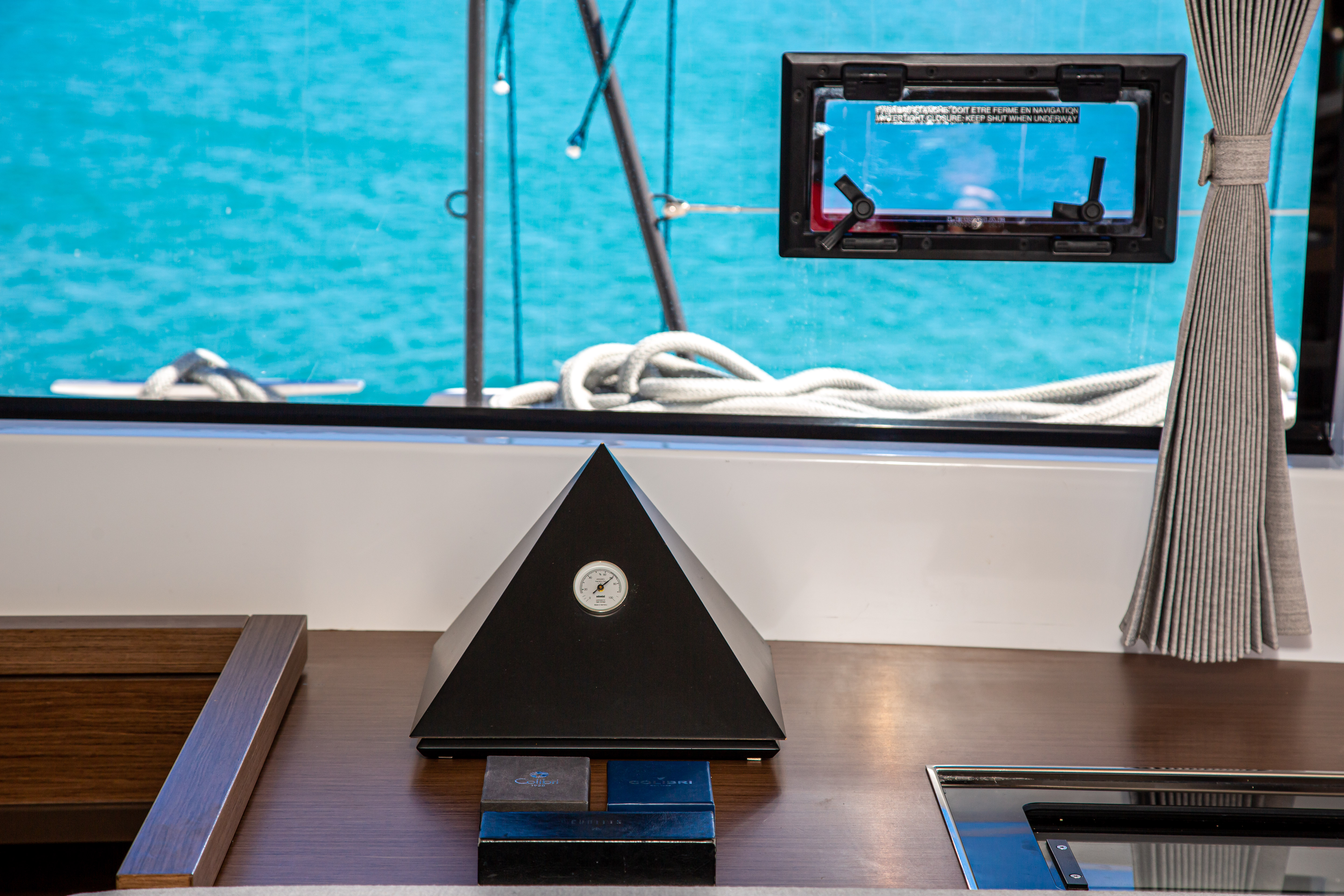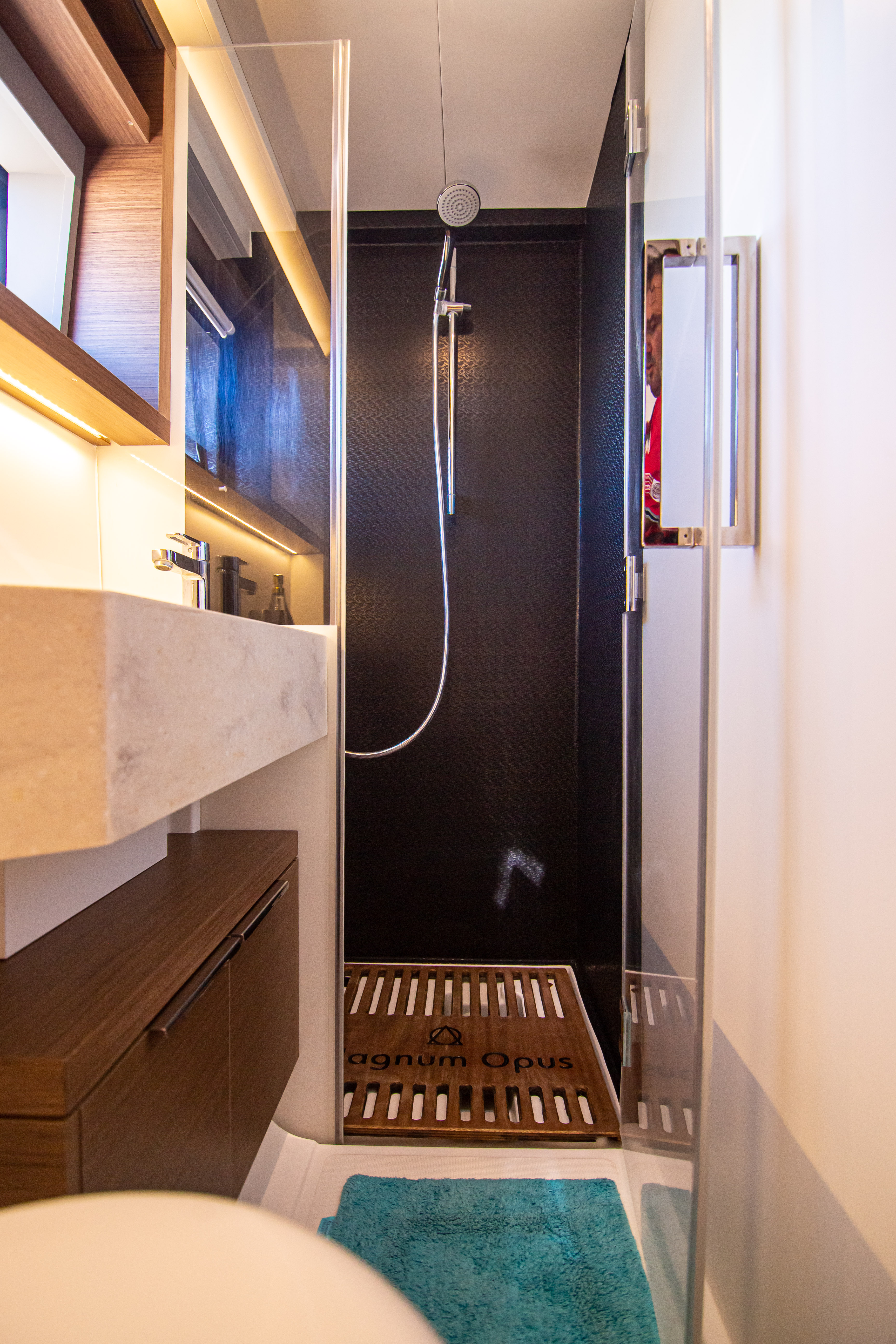 | Inside | 2. Kühlschrank, Eiswürfelmaschine, Espresso Maschine, Frischwasserpumpe, FUSION Sound System, Generator, Geschirrspüler, Inverter 12V/220V, Klimaanlage (ohne Landstrombedarf), Pantryausstattung, Playstation, Radio mit Bluetooth, Smart-TV, USB Steckdosen in Salon und Kabinen, Ventilatoren in Salon und Kabinen, Watermaker, WC (elektr.) |