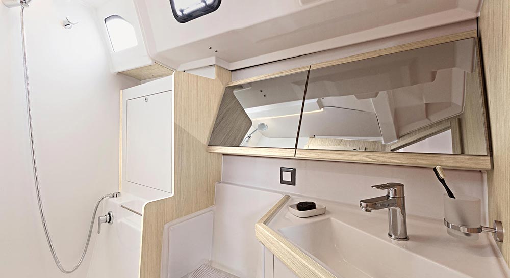 | Inside | Espresso Maschine, FUSION Sound System, Generator, Klimaanlage (ohne Landstrombedarf), Radio mit Bluetooth, TV, USB Steckdosen in Salon und Kabinen, Ventilatoren in Salon und Kabinen, WC (elektr.) |
