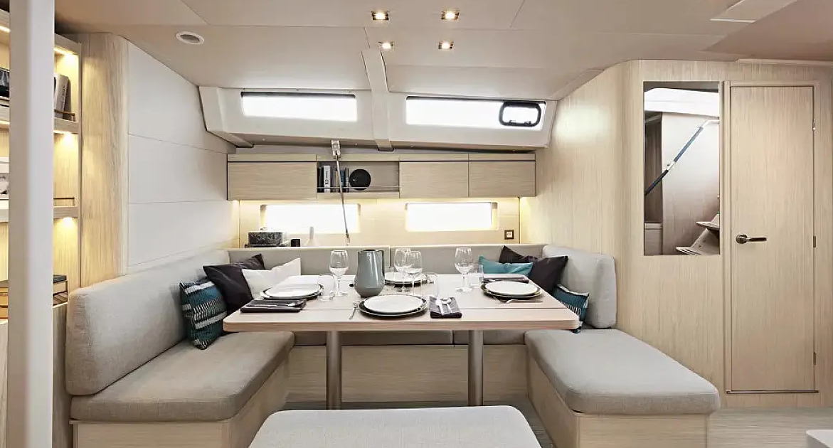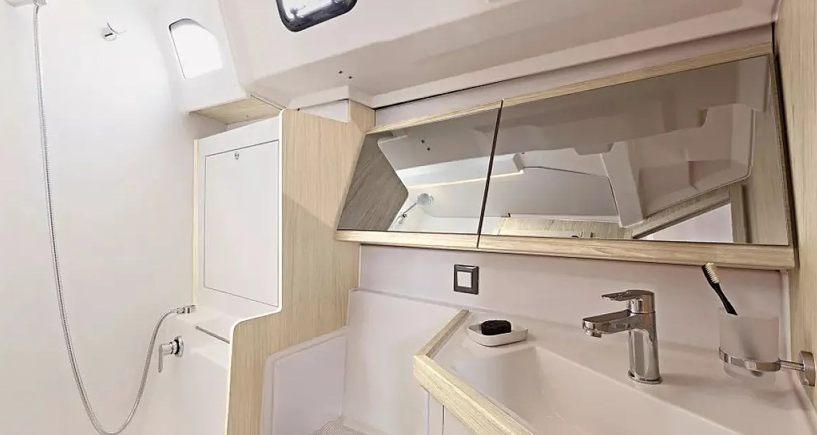 | Outside | Biminitop, Cockpitpolster, elektr. Ankerwinsch, Solaranlage, Sprayhood, Teak im Cockpit |