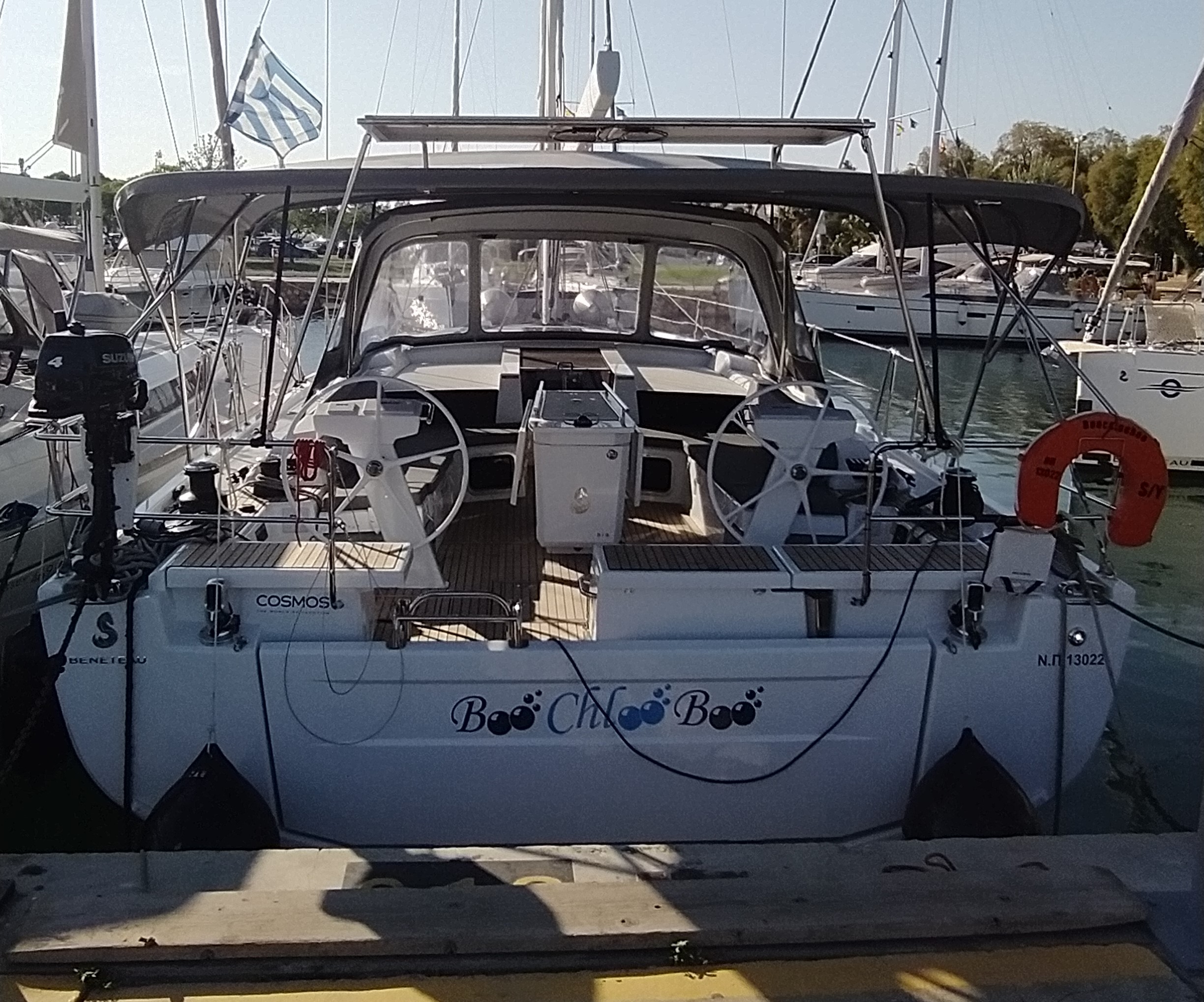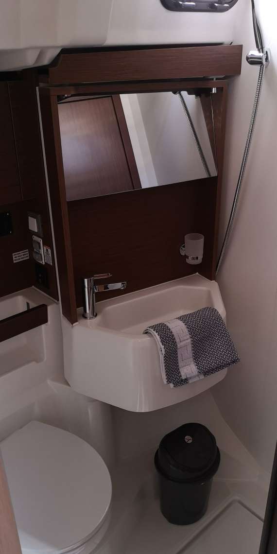 | Outside | 220 V-Landanschluss, Anker mit Kette, Badeleiter, Badeplattform, Biminitop, Bootshaken, Cockpitlautsprecher, Cockpitleuchte, Cockpitpolster, Deckbürste, elektr. Ankerwinsch, Fender, Festmacherleinen, Gangway, Kunststoff-Eimer (Pütz), Segel-Flickwerkzeug, Solaranlage, Sprayhood, Treibanker, Wantenschneider, Wasserschlauch, Winschen |