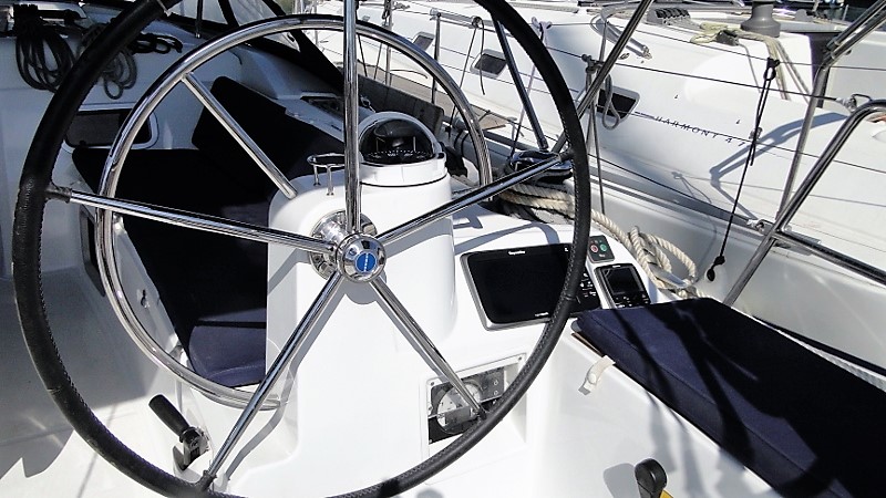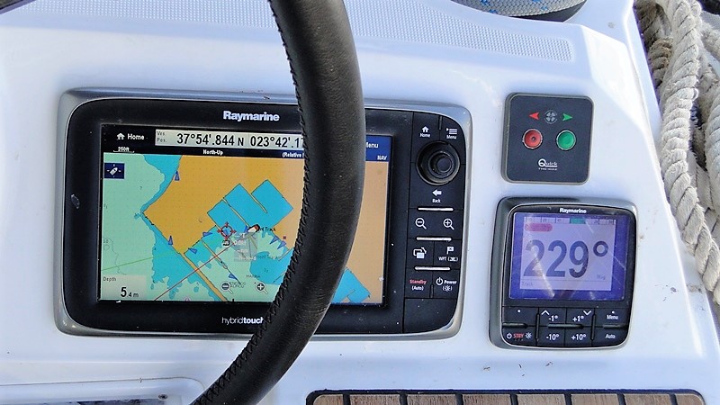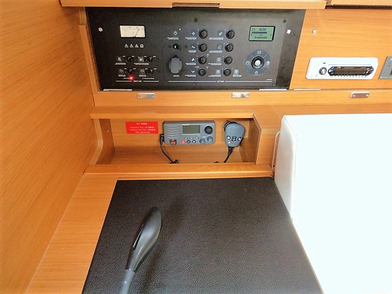 | Navigation | Echolot, GPS mit Kartenplotter im Cockpit, Hafenhandbücher, Navigationsbesteck, Seekarten, Sumlog, Windmesser |