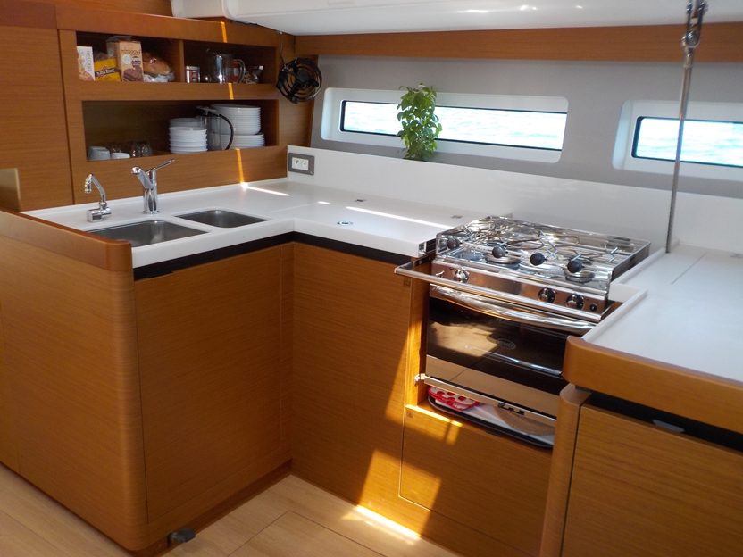 | Outside | 220 V-Landanschluss, Anker mit Kette, Badeleiter, Badeplattform, Biminitop, Cockpitdusche, Cockpitlautsprecher, elektr. Ankerwinsch, Fender, Gangway, Jambo Anker, Lifeline System, Seereling, Solaranlage, Sprayhood, Teak im Cockpit, Windex |