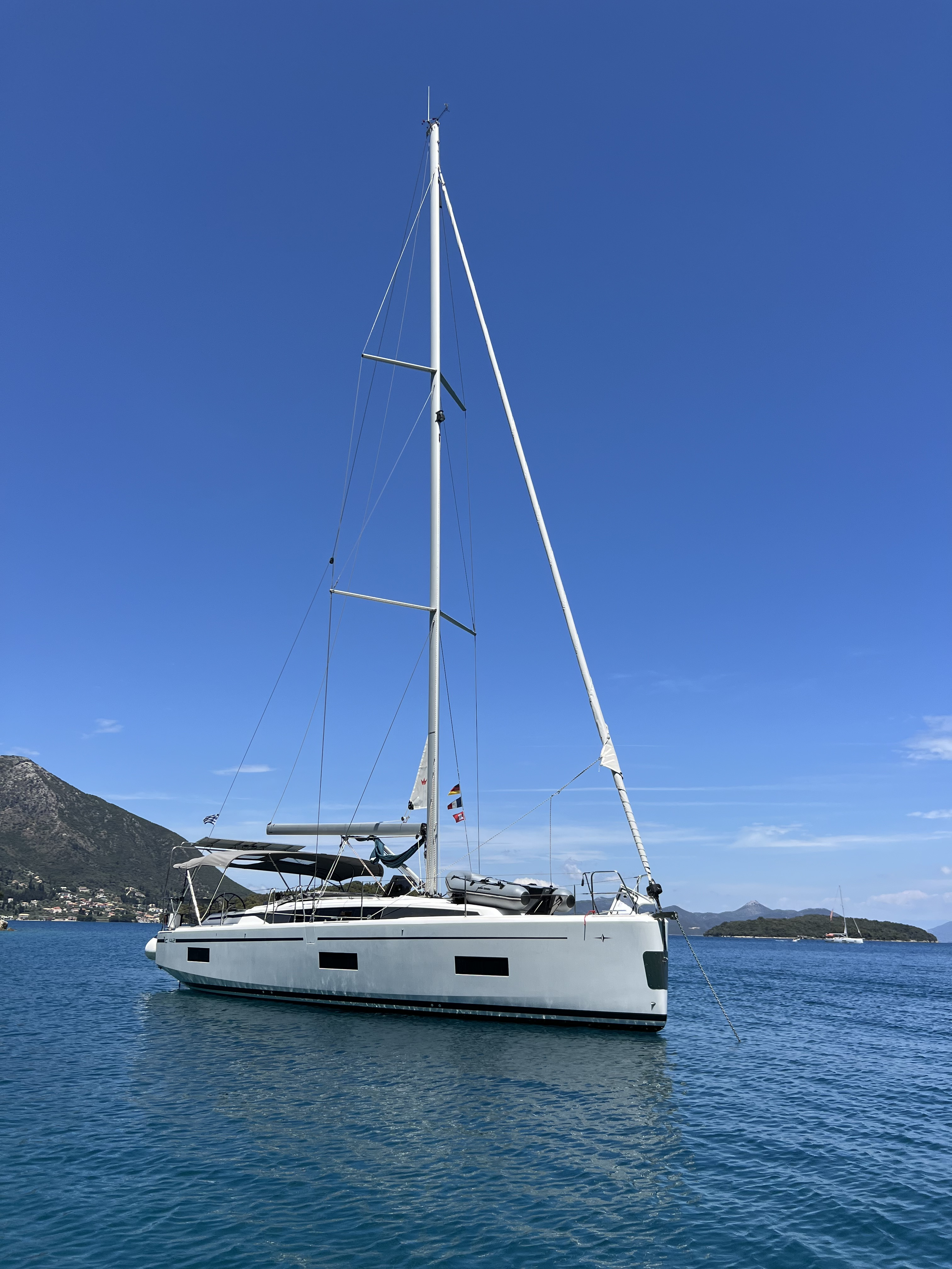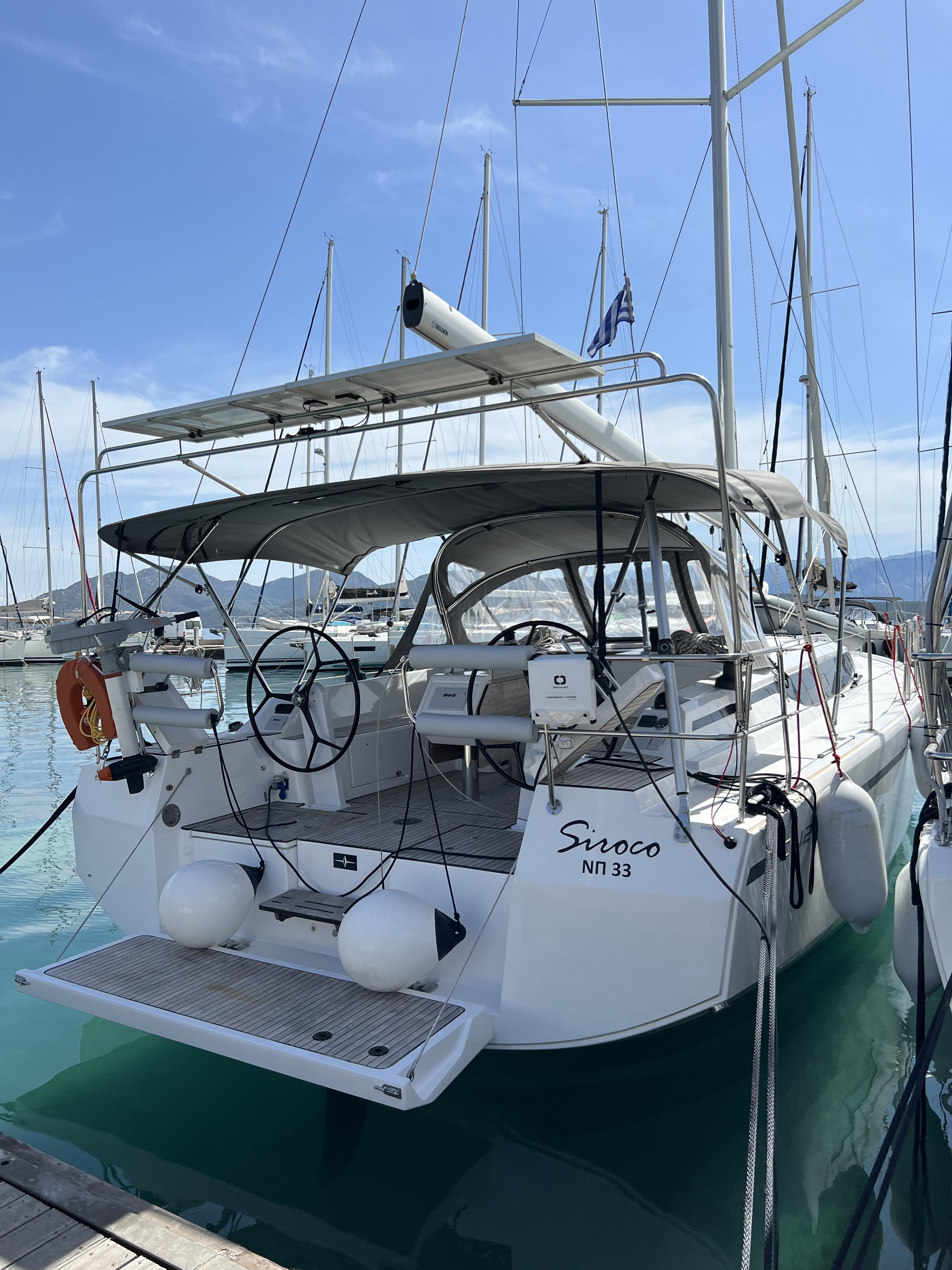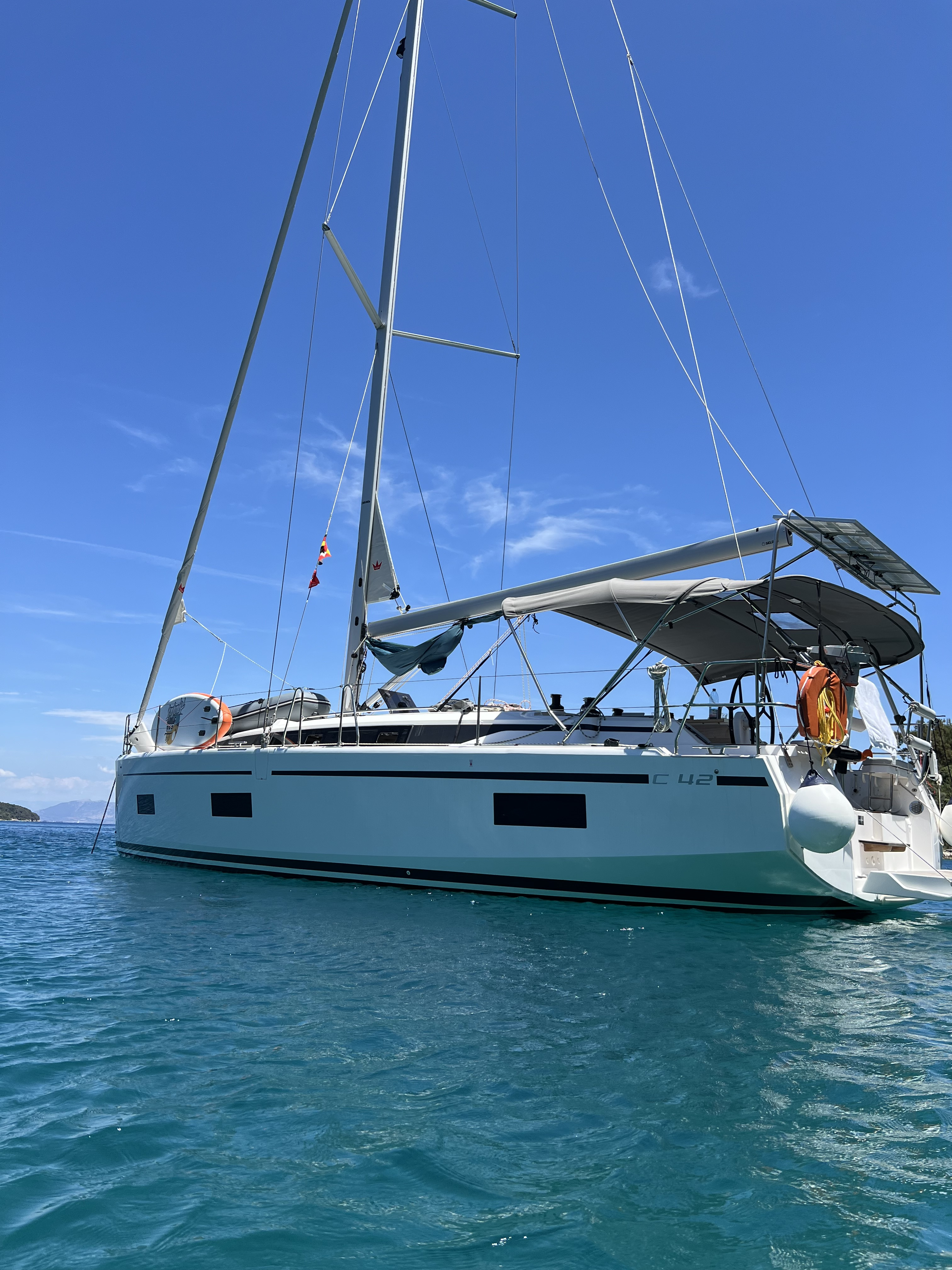 | Outside | Badeplattform, Cockpitdusche, Cockpitpolster, elektr. Ankerwinsch, Solaranlage, Teak im Cockpit |