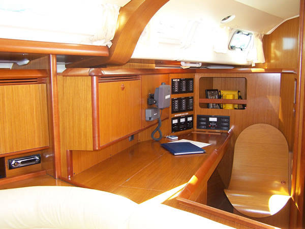 | Navigation | Echolot, GPS mit Kartenplotter im Salon, Seekarten, Sumlog, Windmesser |