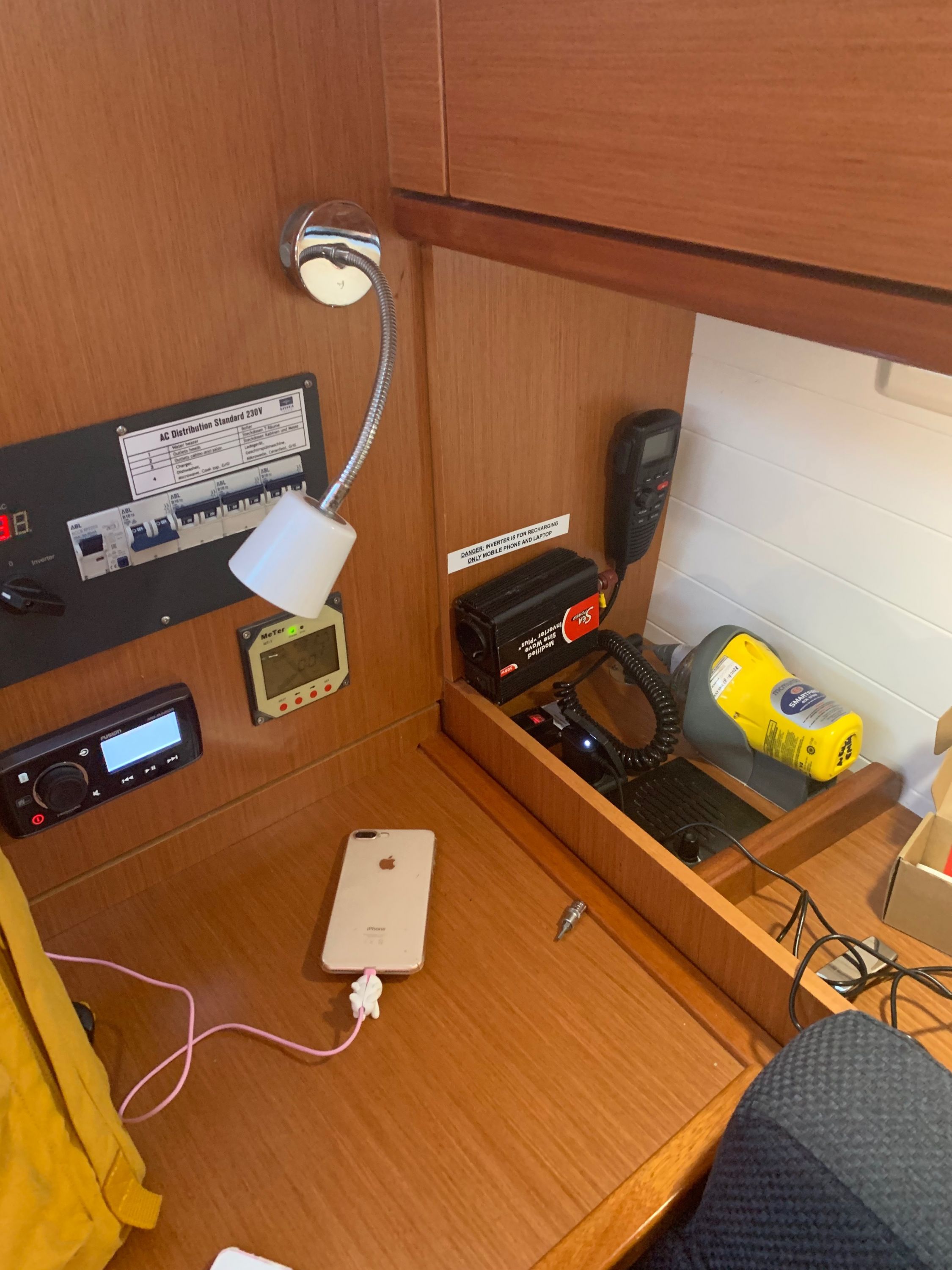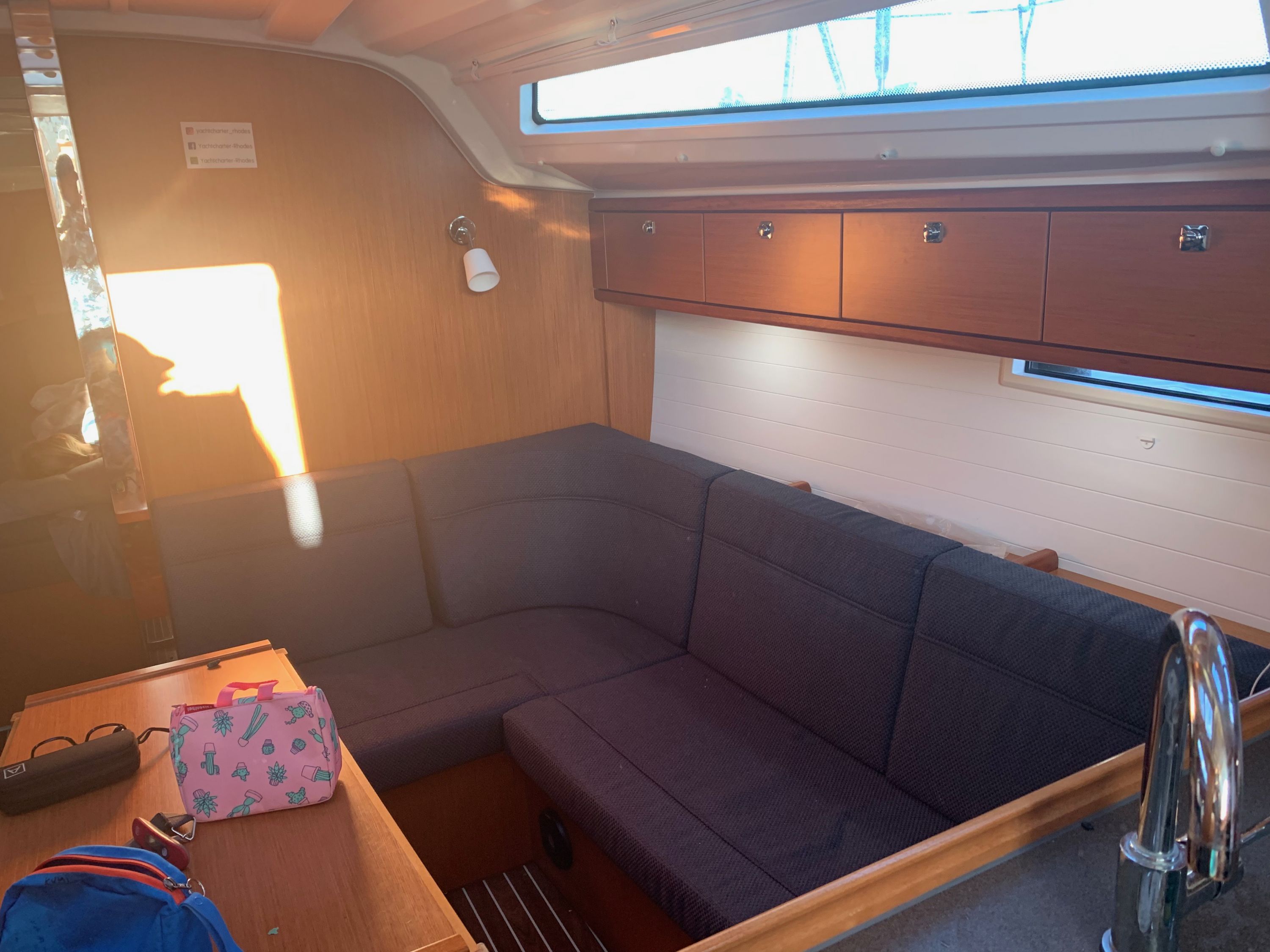 | Outside | Biminitop, Cockpitlautsprecher, Cockpitpolster, elektr. Ankerwinsch, Solaranlage, Sprayhood |
