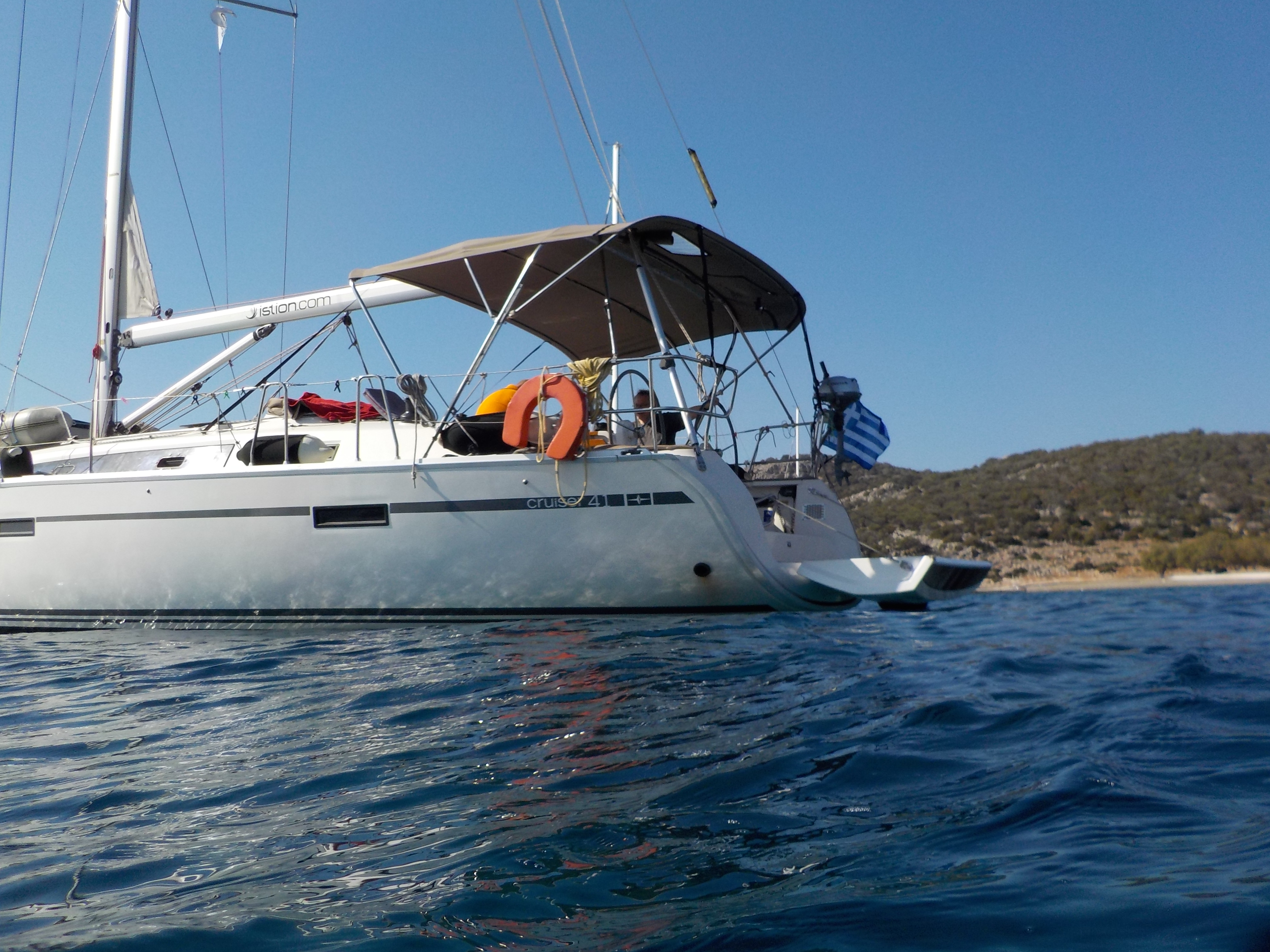 | Outside | 220 V-Landanschluss, Anker mit Kette, Badeleiter, Badeplattform, Biminitop, Bootshaken, Cockpitpolster, Cockpittisch, elektr. Ankerwinsch, Fender, Gangway, Schnorchelausrüstung, Solaranlage, Sprayhood, Wantenschneider, Wasserschlauch, Winschen |