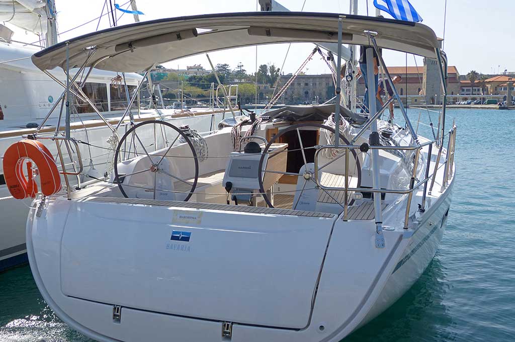 | Outside | 12 V-Anschluss, Badeleiter, Biminitop, Cockpitdusche, Cockpitlautsprecher, Cockpittisch, elektr. Ankerwinsch, Gangway, Solaranlage, Sprayhood, Treibanker, Windex |