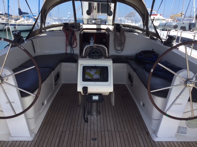 | Outside | Badeleiter, Biminitop, Cockpitdusche, Cockpitlautsprecher, Cockpitpolster, Cockpittisch, elektr. Ankerwinsch, Fender, Solaranlage, Sprayhood, Teak im Cockpit |