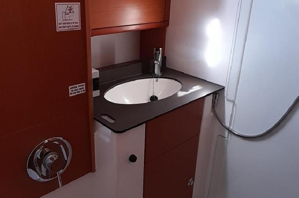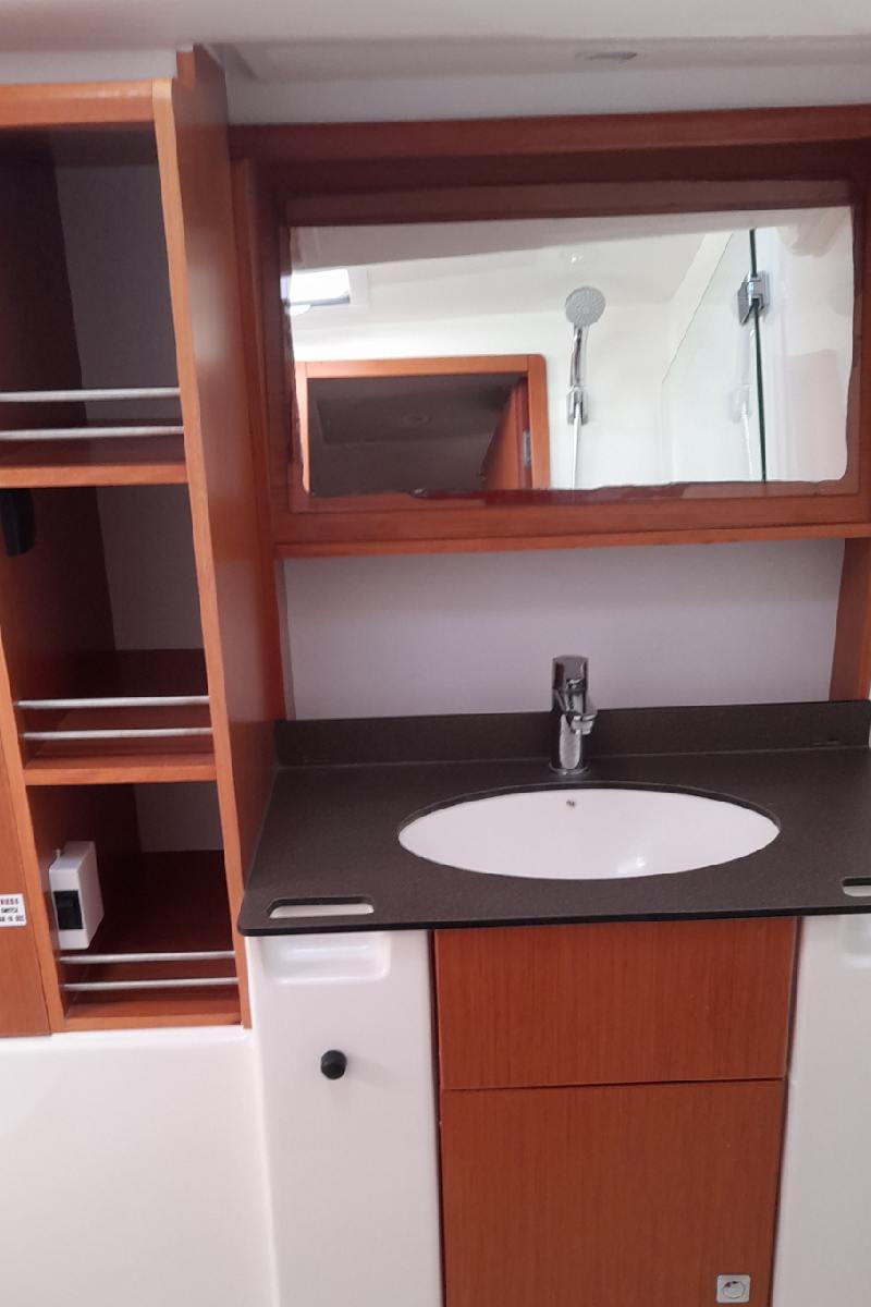 | Outside | 220 V-Landanschluss, Anker mit Kette, Badeleiter, Biminitop, Bootshaken, Cockpitdusche, Cockpitlautsprecher, elektr. Ankerwinsch, Fender, Festmacherleinen, Gangway, Schnorchelausrüstung, Selbstholende Winschen, Solaranlage, Sprayhood, Treibanker, Wasserschlauch, Windex |