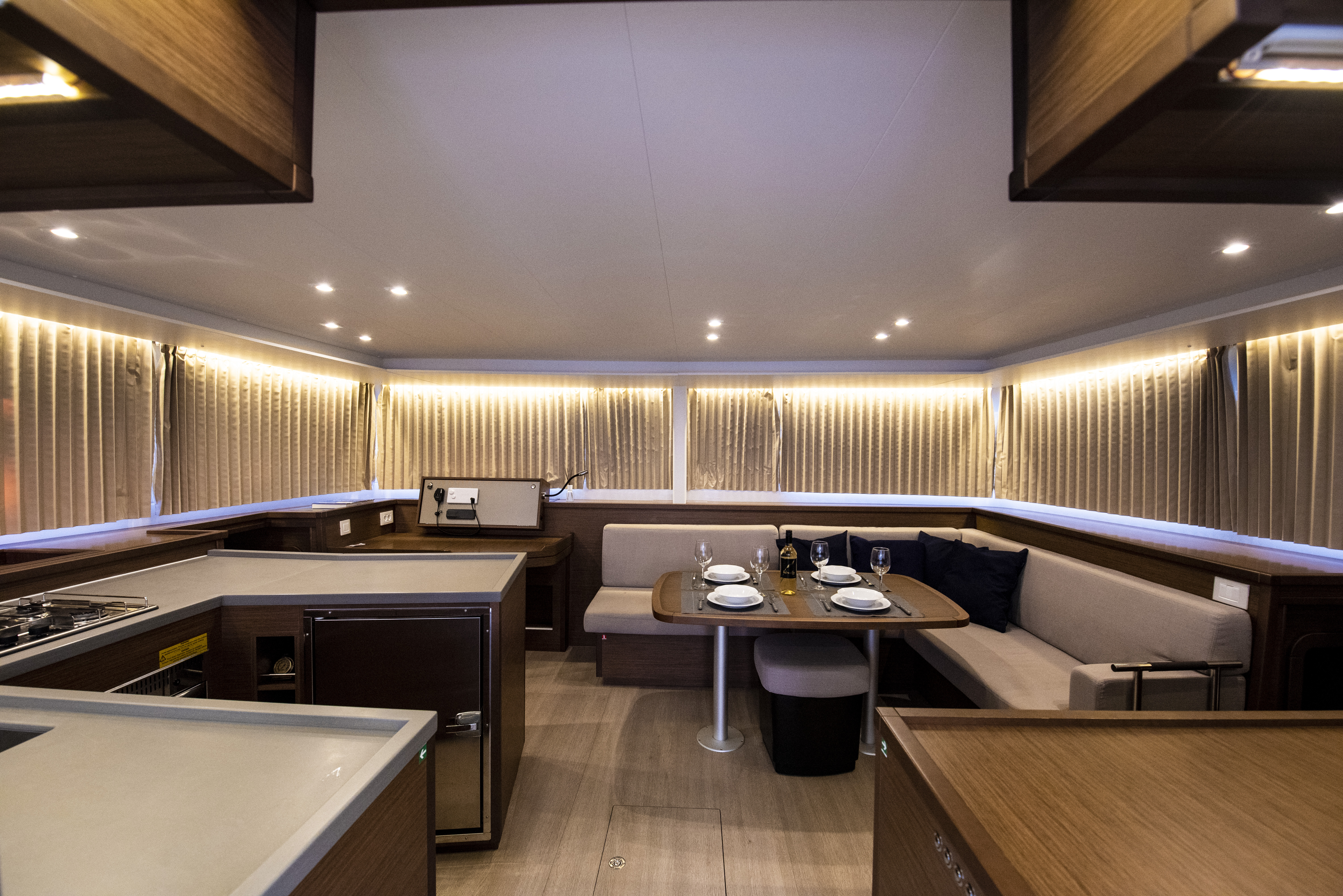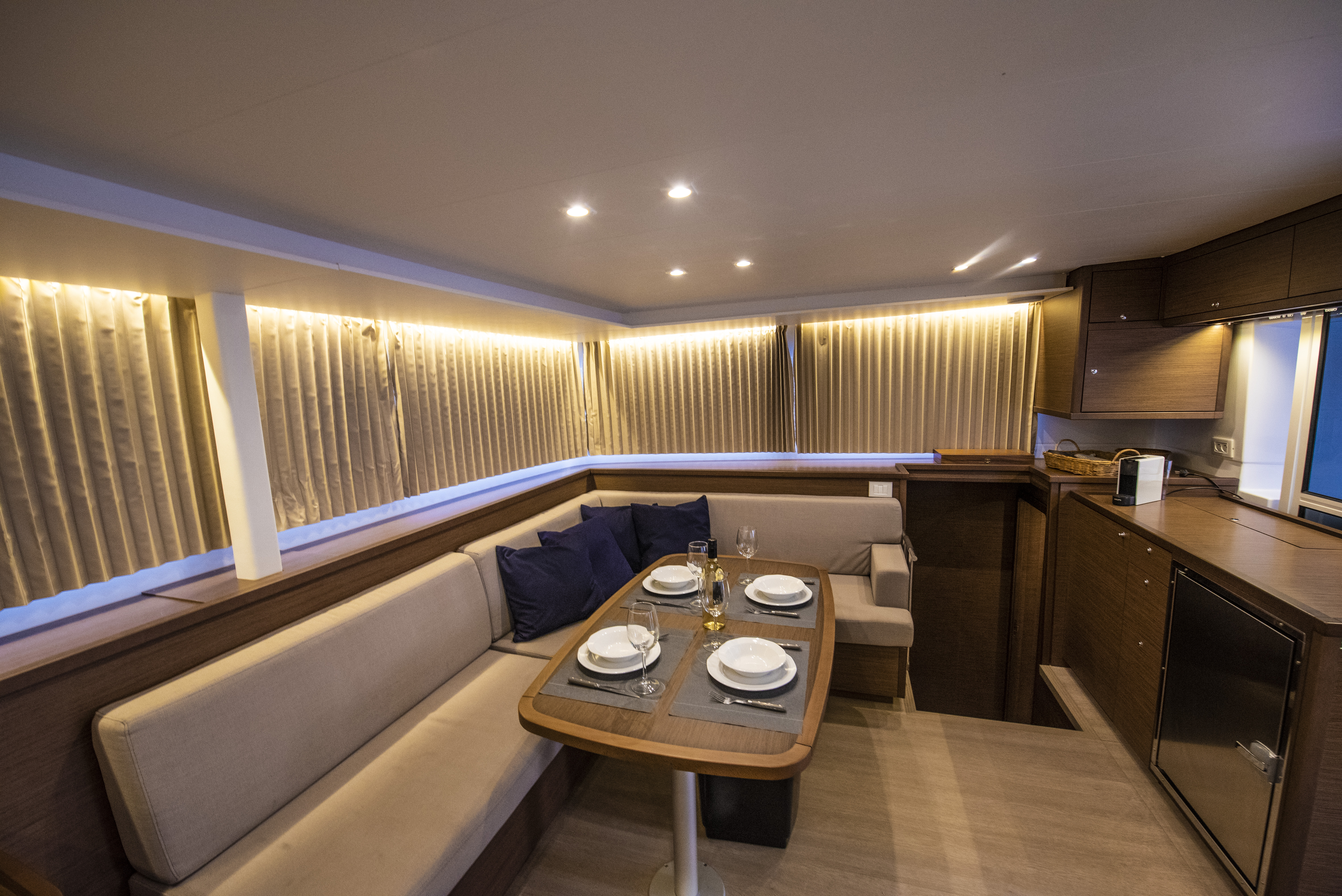 | Inside | 220V Steckdosen, Bluetooth Player, Gefrierschrank, Generator, Geschirrspüler, Kaffeemaschine, Klimaanlage (ohne Landstrombedarf), Kühlschrank, Nespresso-Maschine, Pantryausstattung, Salontisch absenkbar, USB Steckdose, Ventilatoren in Kabinen, Watermaker, WC (elektr.) |