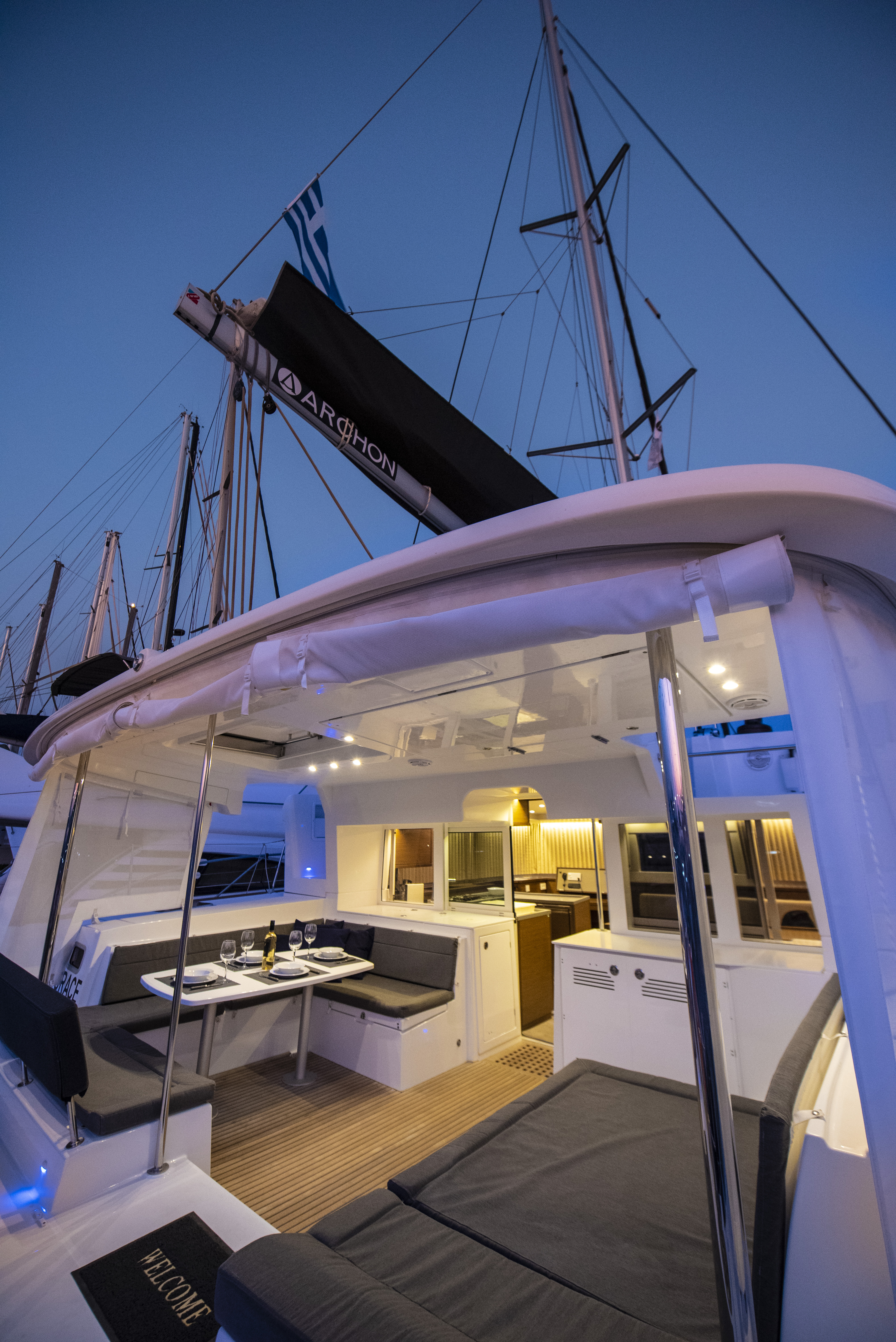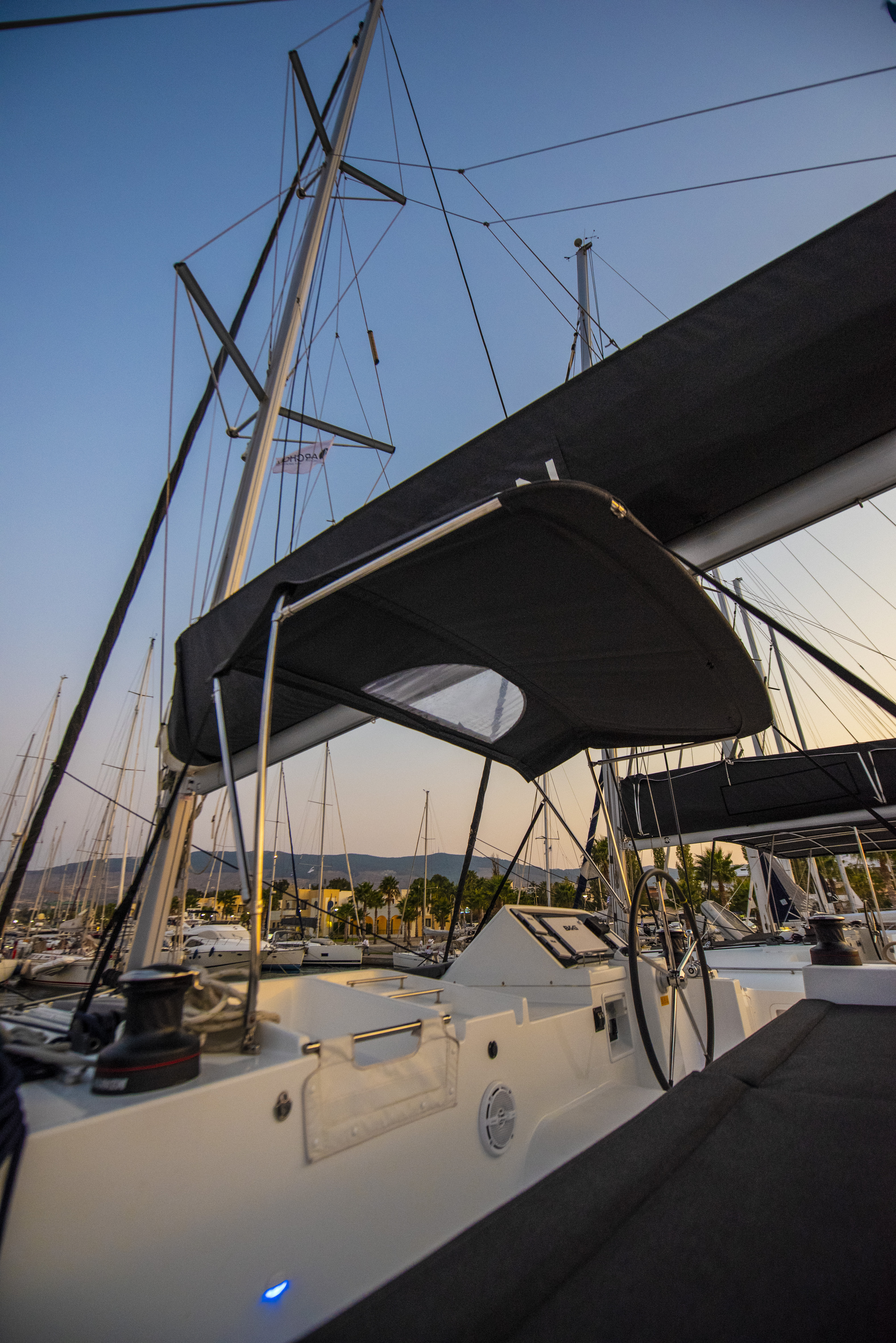 | Outside | Badeleiter, Biminitop, Cockpitdusche, Cockpitlautsprecher, Cockpitpolster, Cockpittisch, elektr. Ankerwinsch, elektr. Winsch, Fender, hydraul. Gangway, Solaranlage, Sprayhood |
