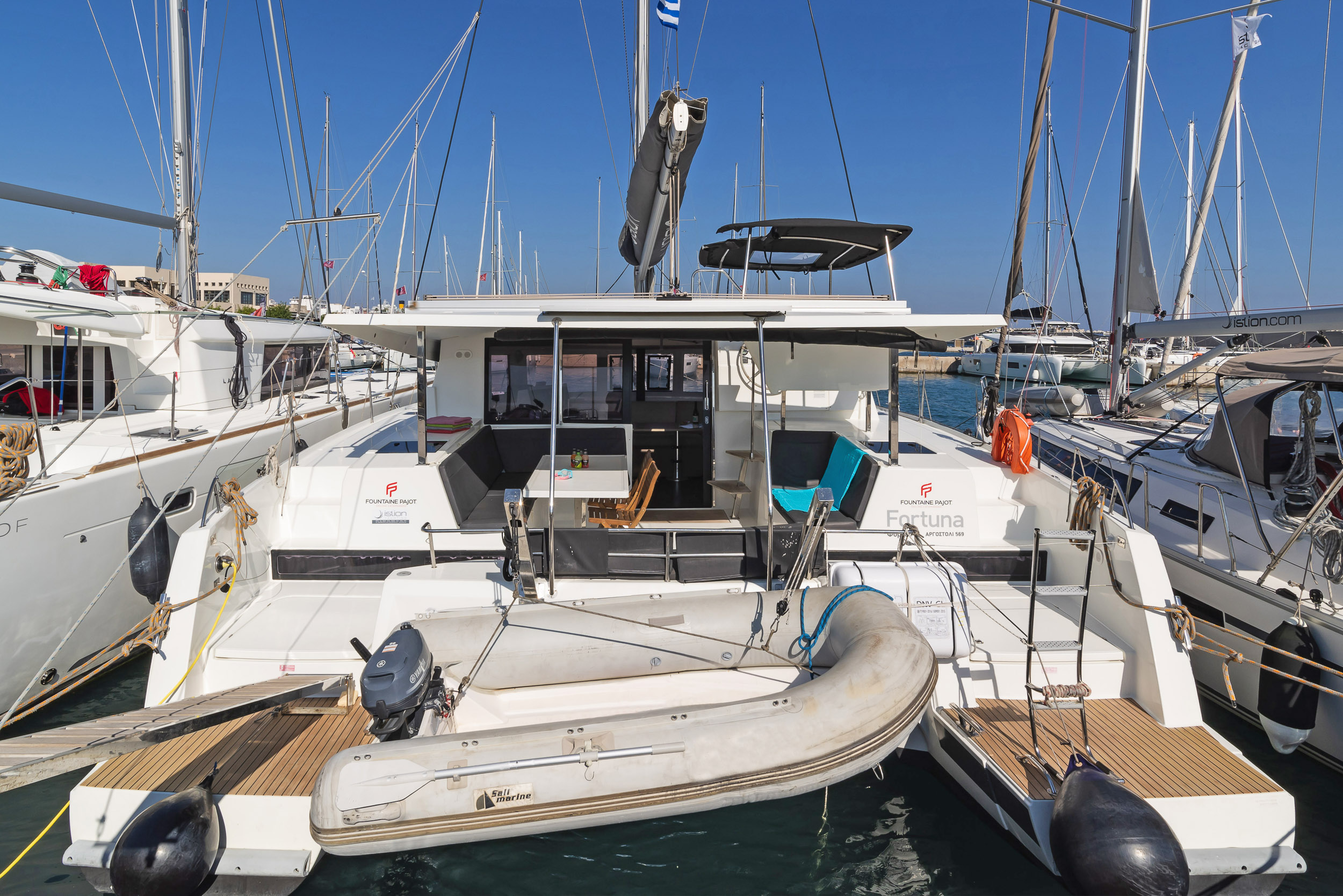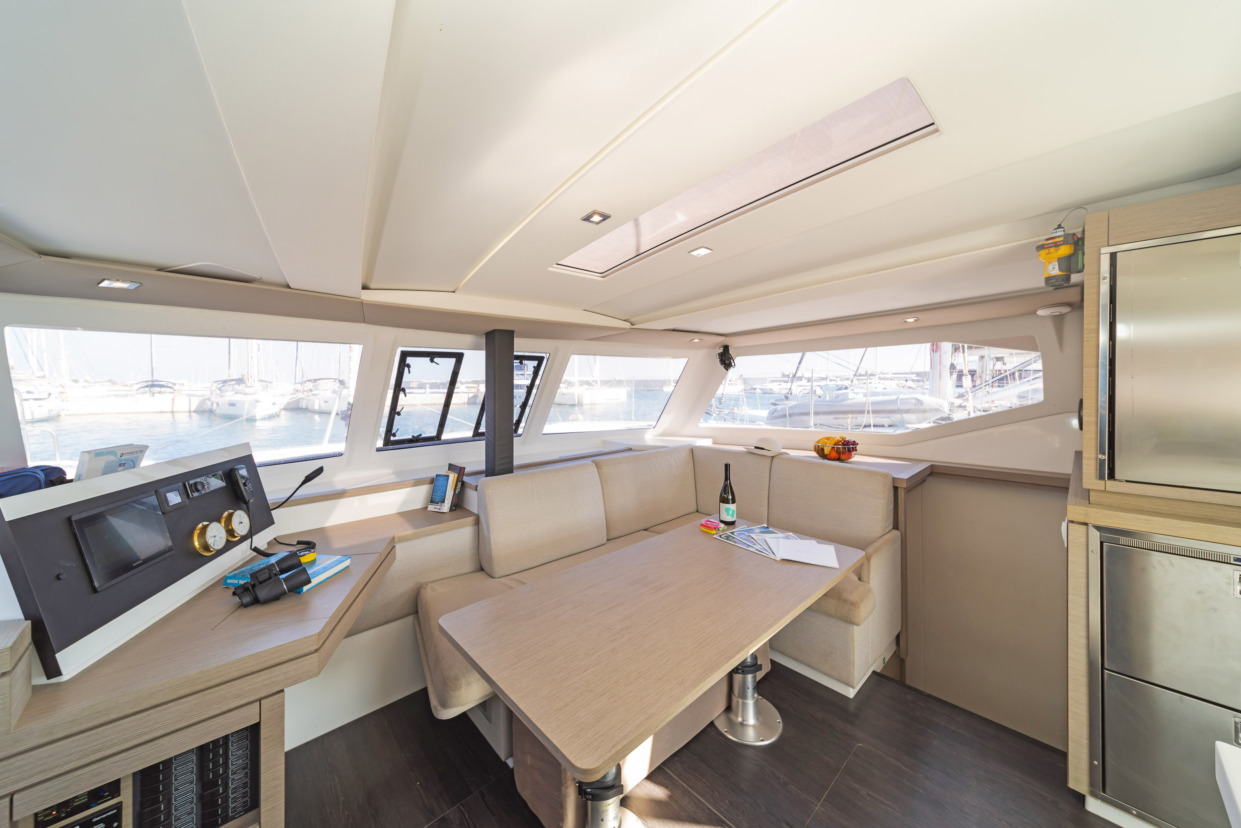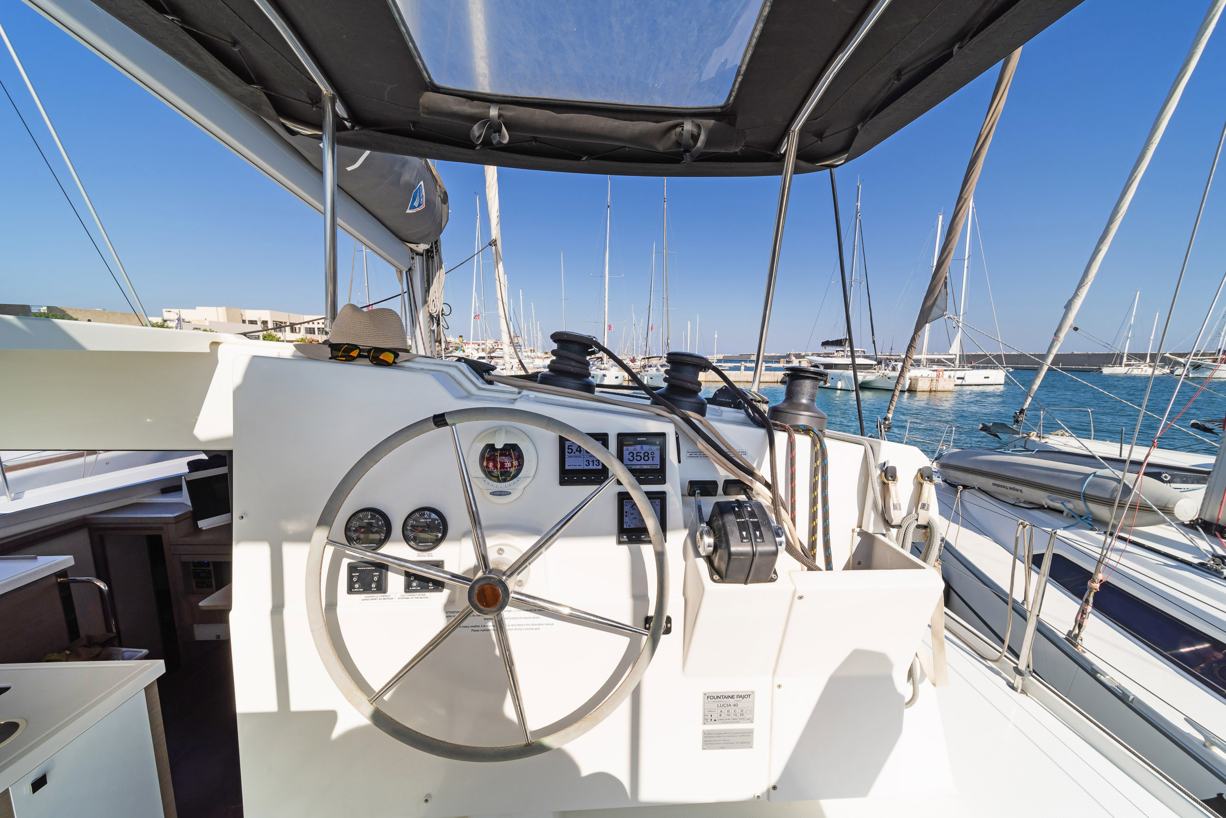 | Outside | Biminitop, Cockpitpolster, elektr. Winsch, Gangway, Solaranlage, Sprayhood |