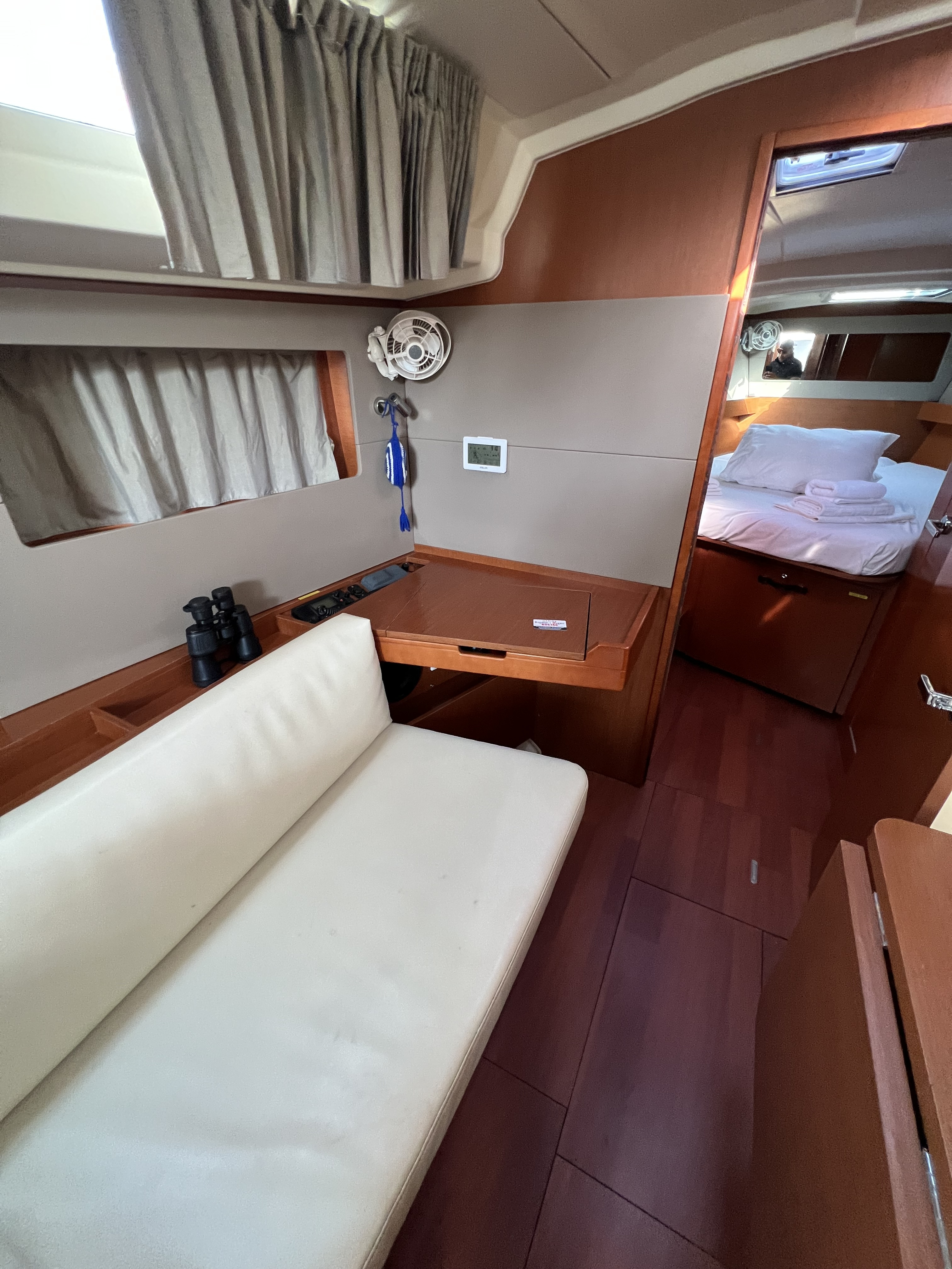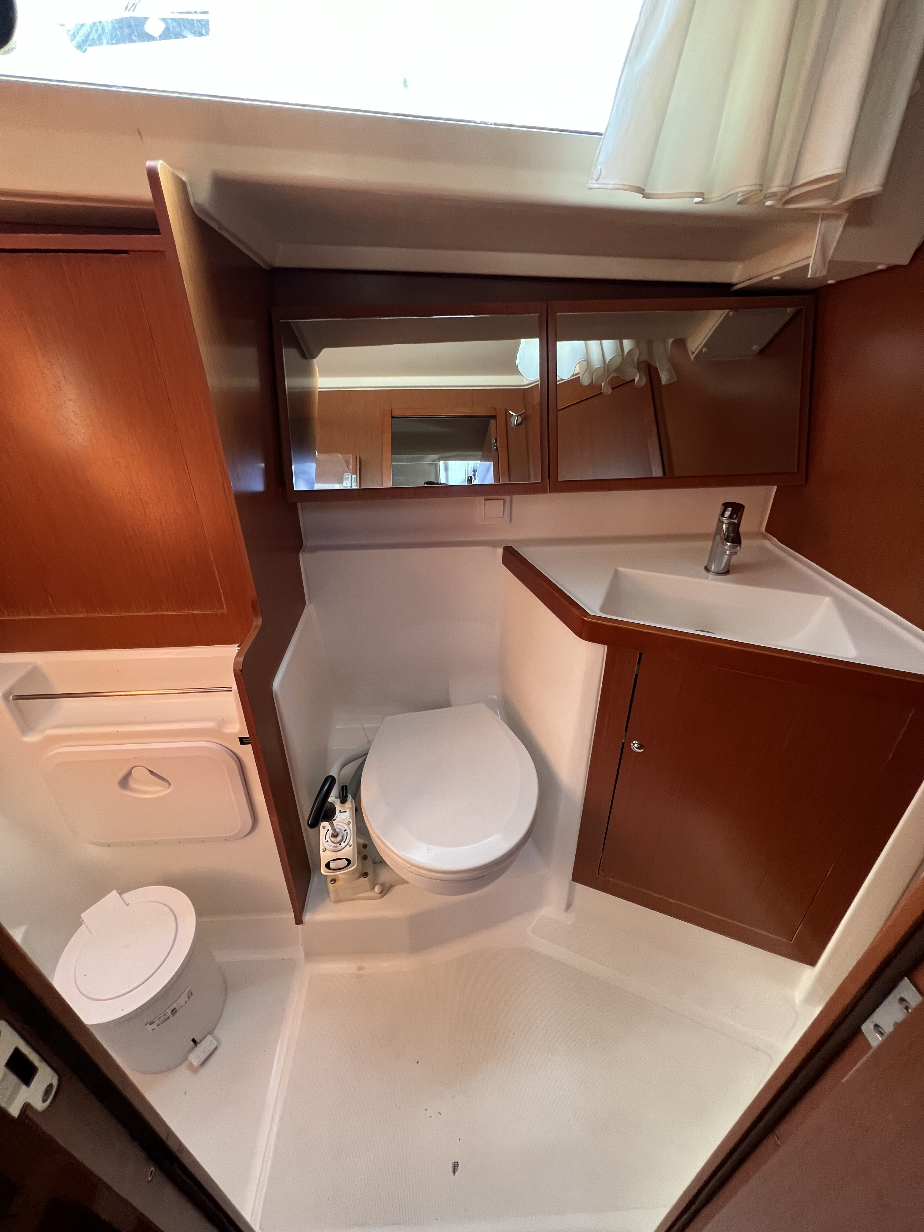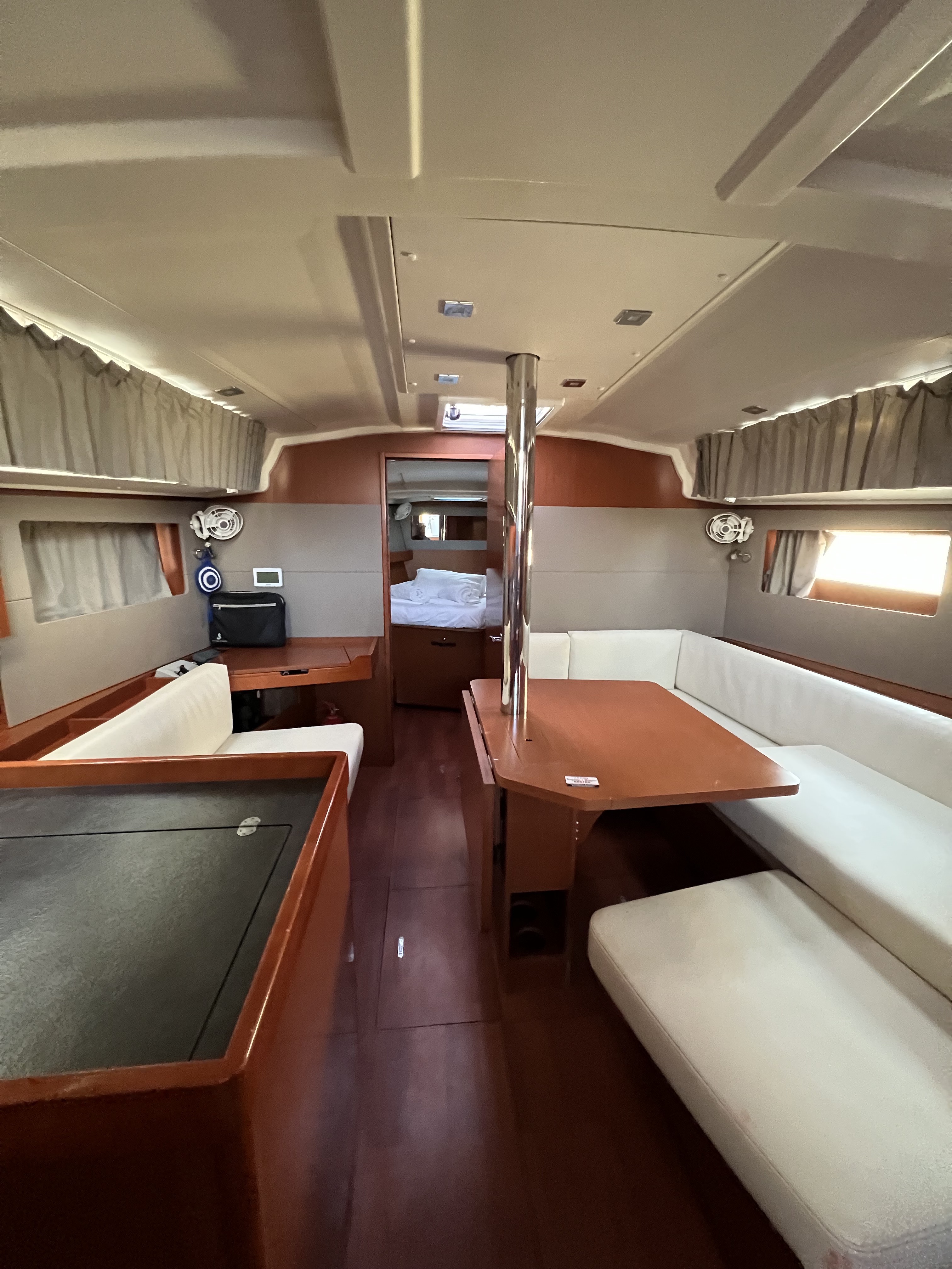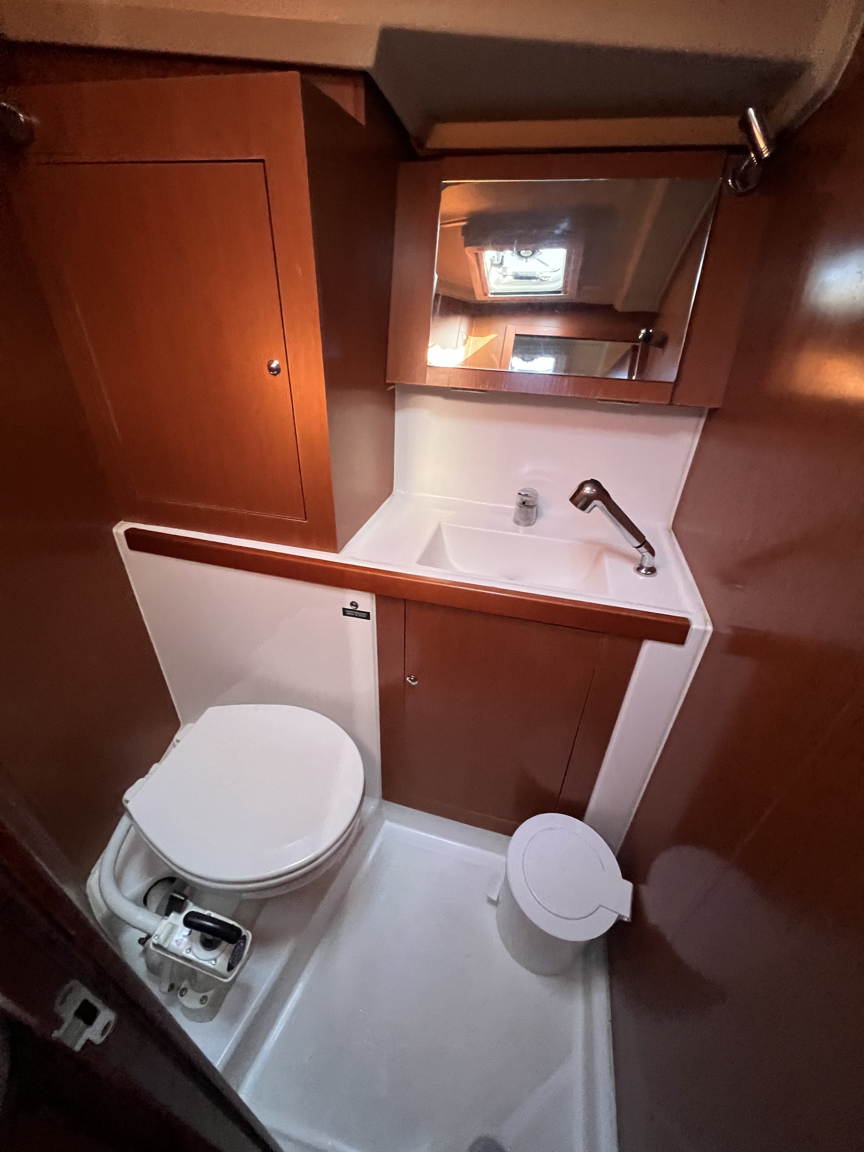 | Navigation | Echolot, GPS mit Kartenplotter im Cockpit, Hafenhandbücher, Seekarten, Sumlog, Windmesser |
