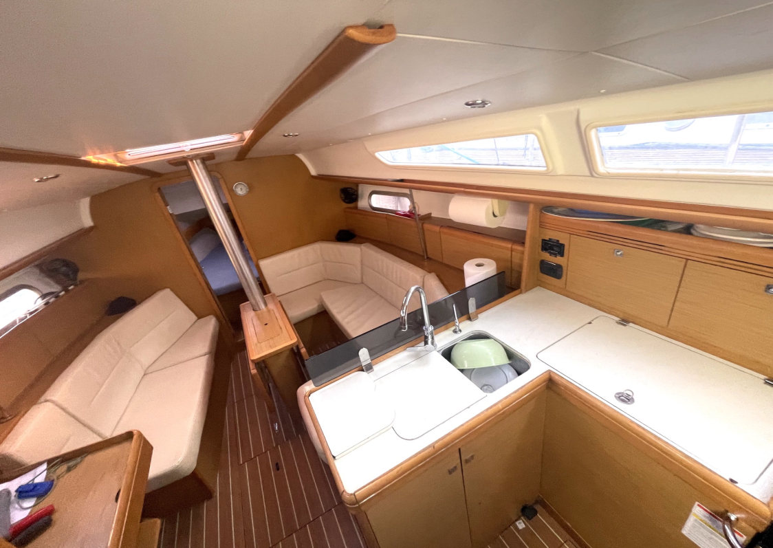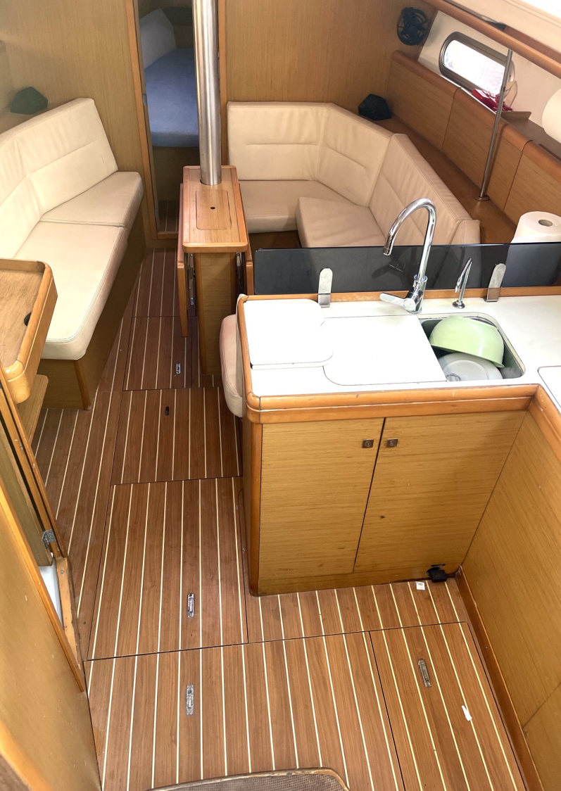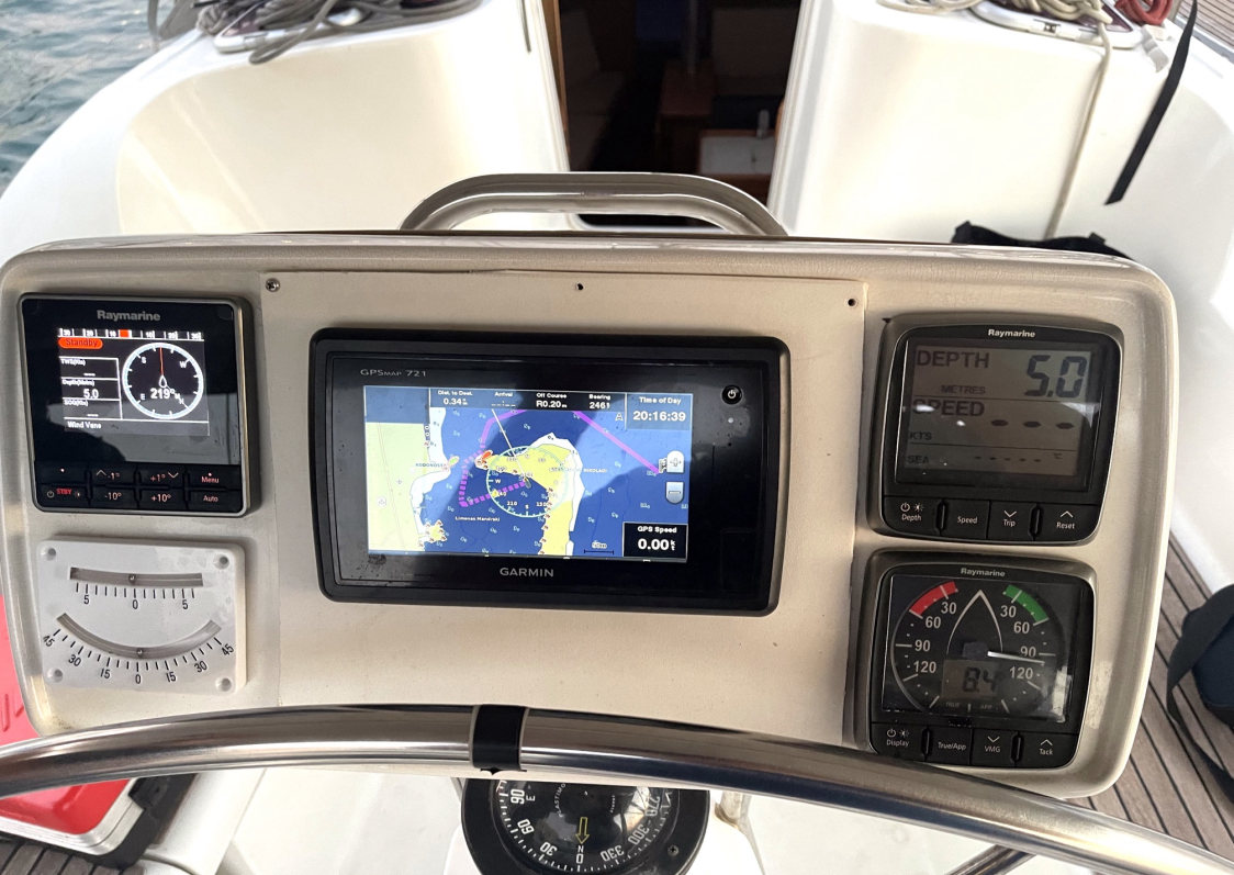 | Navigation | Echolot, GPS mit Kartenplotter im Cockpit, Hafenhandbücher, Seekarten, Sumlog, Windmesser |