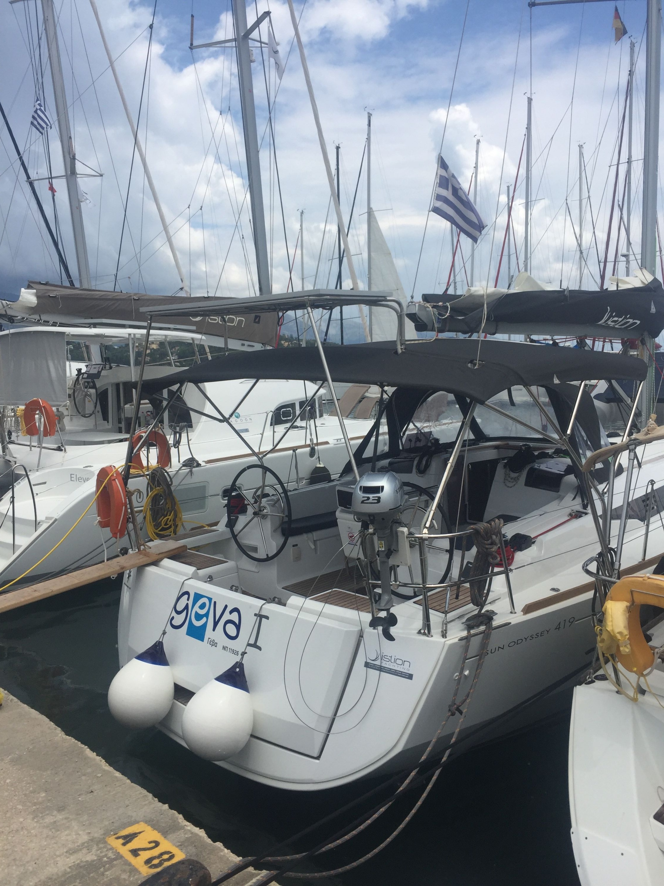 Größter Kritikpunkt: Ein Schäkel am Großsegel war angerissen, das habe ich kurz nach Übernahme bemerkt und dem Vercharterer gemeldet. Es hieß, das sei kein Problem. Bei starkem Wind (ca. 23 kn) riß der Schäkel dann ganz durch, sodass wir das Segel nicht mehr verwenden konnten. Die Reparatur hat uns etwa zweieinhalb Tage gekostet, in denen wir nicht segeln konnten und nicht genau wussten, wann und wie es weitergeht. Dass etwas kaputt geht, ist nicht weiter schlimm, das passiert eben. Die Kommunikation mit Istion war aber nicht ideal. Es hieß immer wieder, es wird sich jemand vor Ort kümmern, und darauf haben wir dann immer wieder stundenlang gewartet, darauf habe ich im Urlaub keine Lust. Hätten sich alle beteiligten bei Istion (es waren verschiedene Base-Manager beteiligt) ernsthaft, also vor allem rechtzeitig, damit befasst und entsprechend kommuniziert, wären wir nicht zwei Tage lang in der Luft gehangen.