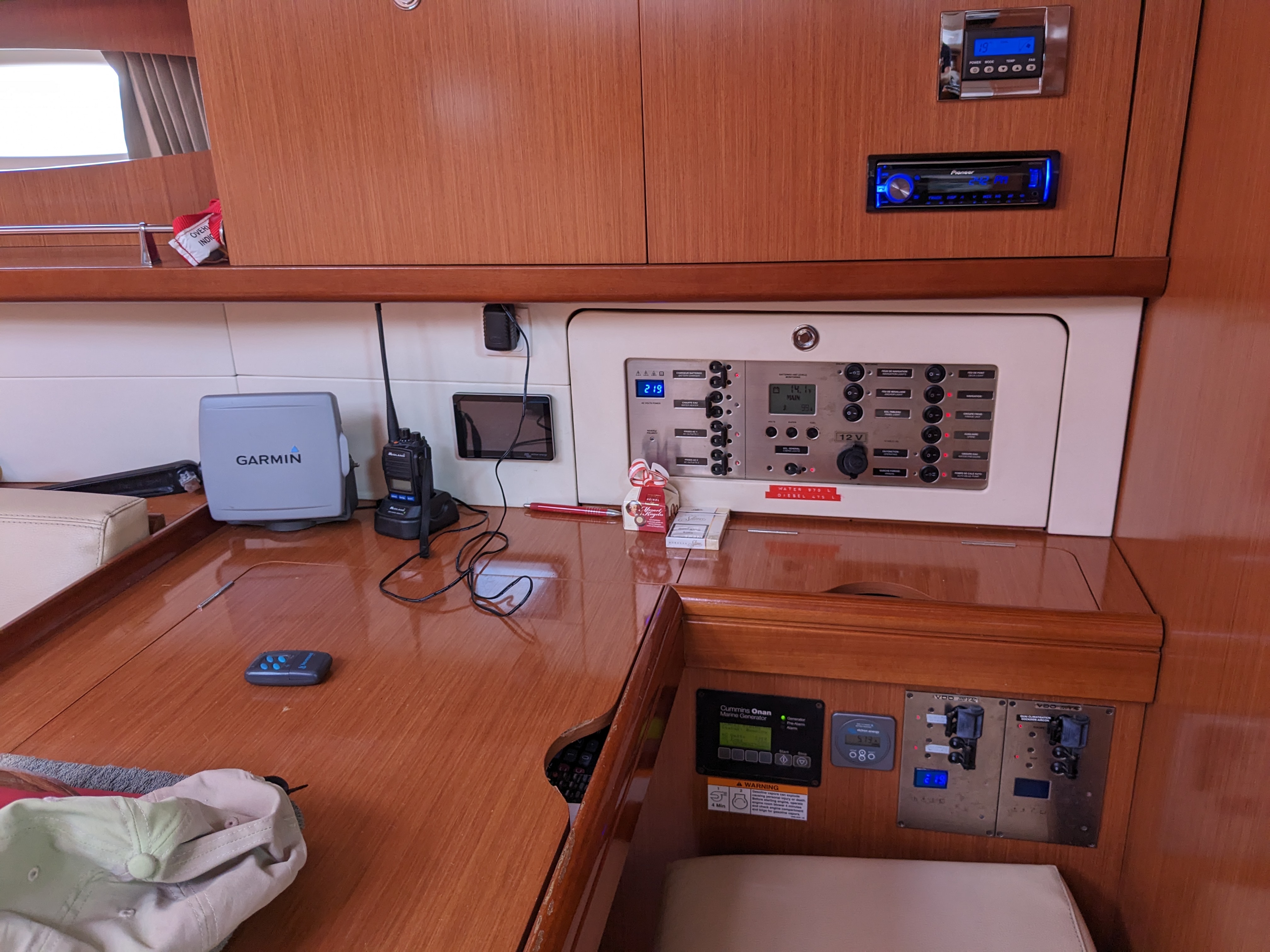 | Navigation | Echolot, GPS mit Kartenplotter, Sumlog, Windmesser |