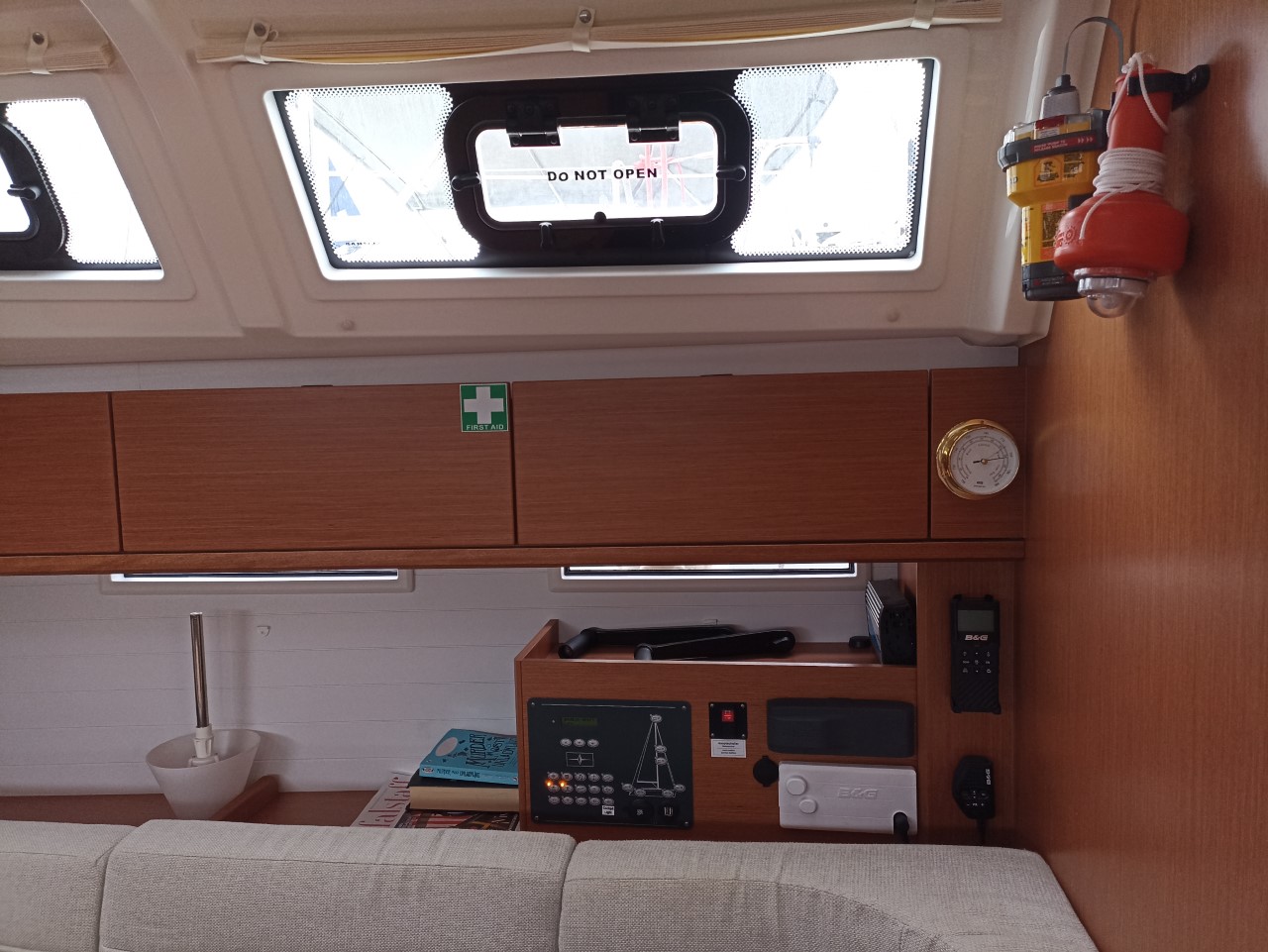 | Safety | Autopilot, Bordapotheke, Bordwerkzeug, Bugstrahlruder, Feststoffschwimmwesten, Feuerlöscher, Flaggen, Navigationslichter, Nebelhorn, Notpinne, Notsignale, Radarreflektor, Reparaturset für Beiboot, Reserve-Motoröl, Rettungsinsel, Rettungskragen, Sicherheitsgurt, Signalspiegel, Taschenlampe, UKW-Funk |