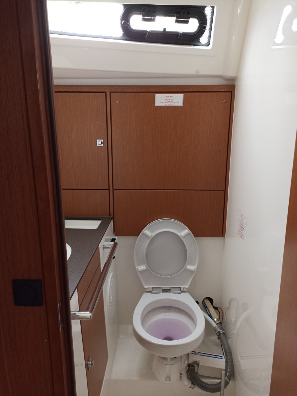 | Outside | 220 V-Landanschluss, Anker mit Kette, Badeleiter, Badeplattform, Biminitop, Bootshaken, Cockpitlautsprecher, Cockpitleuchte, Cockpitpolster, Deckbürste, elektr. Ankerwinsch, Fender, Festmacherleinen, Gangway, Kunststoff-Eimer (Pütz), Segel-Flickwerkzeug, Solaranlage, Sprayhood, Treibanker, Wantenschneider, Wasserschlauch, Winschen |