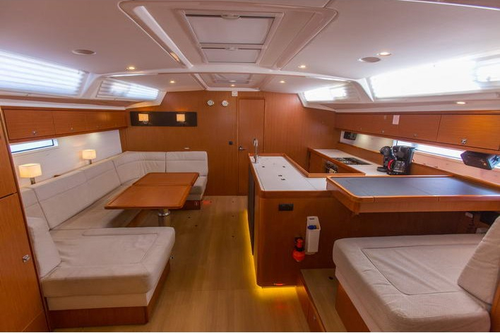 | Safety | Autopilot, Bordapotheke, Bordwerkzeug, Bugstrahlruder, Feststoffschwimmwesten, Feuerlöscher, Flaggen, Navigationslichter, Nebelhorn, Notpinne, Notsignale, Radarreflektor, Reparaturset für Beiboot, Reserve-Motoröl, Rettungsinsel, Rettungskragen, Sicherheitsgurt, Taschenlampe, UKW-Funk |