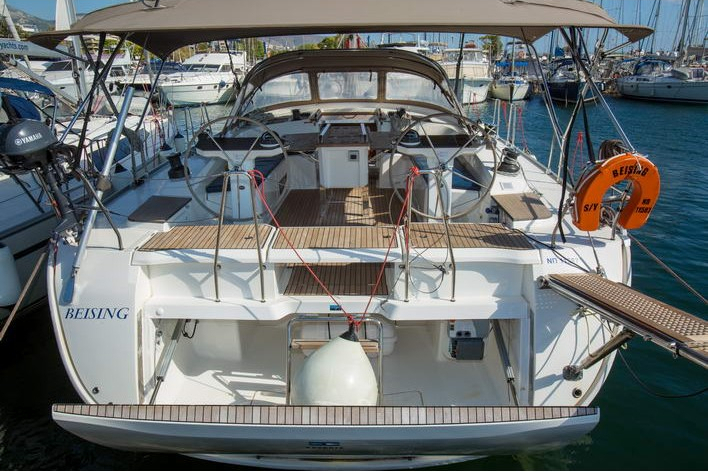 | Outside | 220 V-Landanschluss, Anker mit Kette, Badeleiter, Badeplattform, Biminitop, Bootshaken, Cockpitlautsprecher, Cockpitleuchte, Cockpitpolster, Cockpittisch, Deckbürste, elektr. Ankerwinsch, Fender, Festmacherleinen, hydraul. Gangway, Kunststoff-Eimer (Pütz), Segel-Flickwerkzeug, Solaranlage, Sprayhood, Treibanker, Wantenschneider, Wasserschlauch, Winschen |