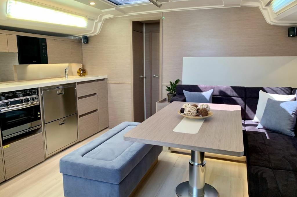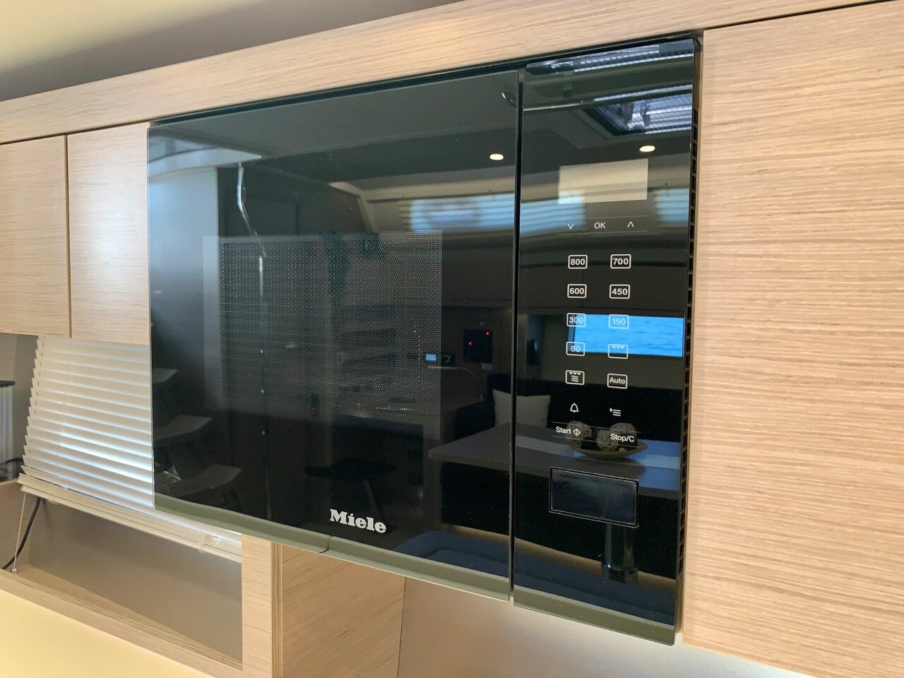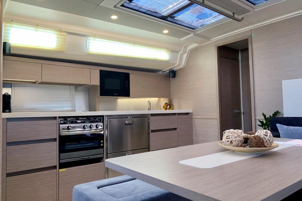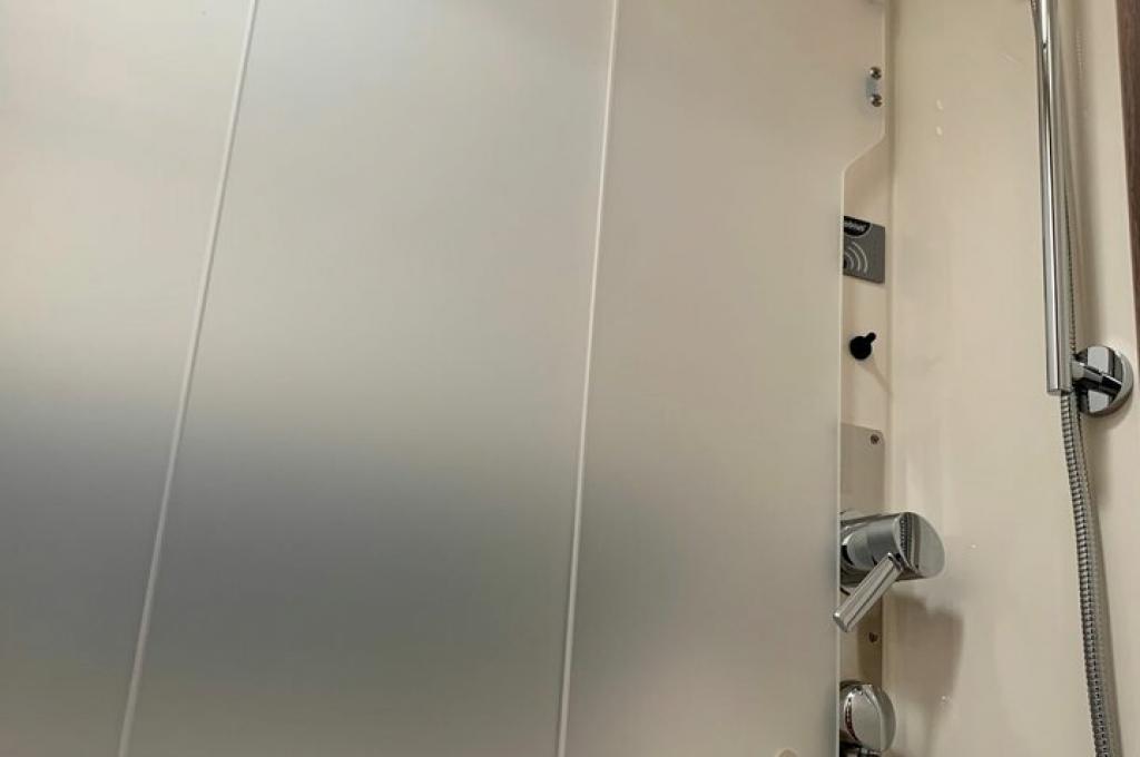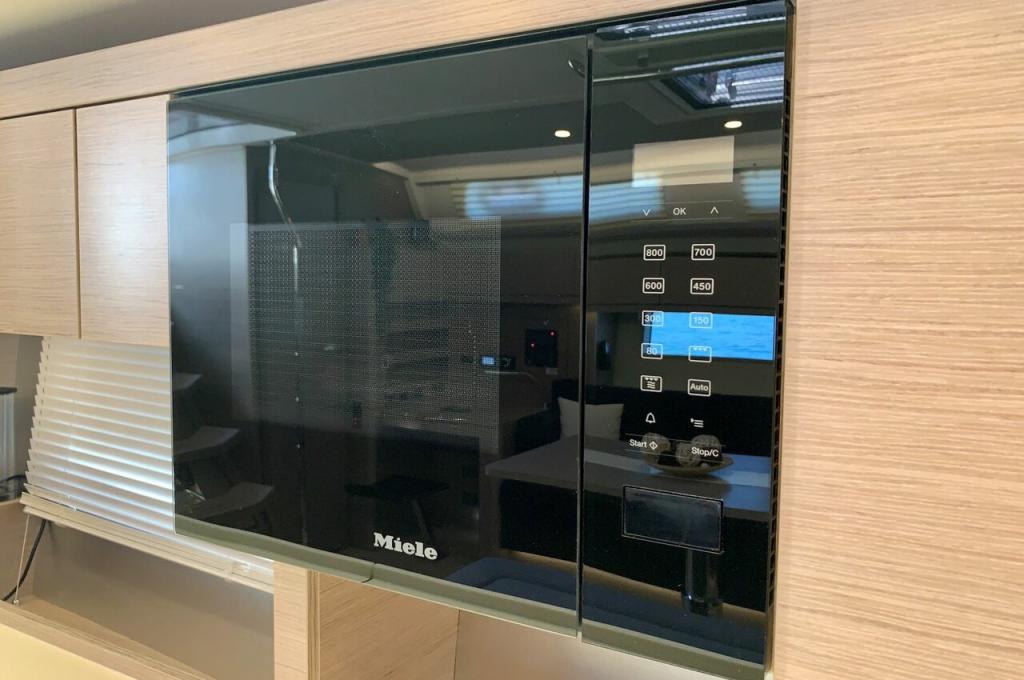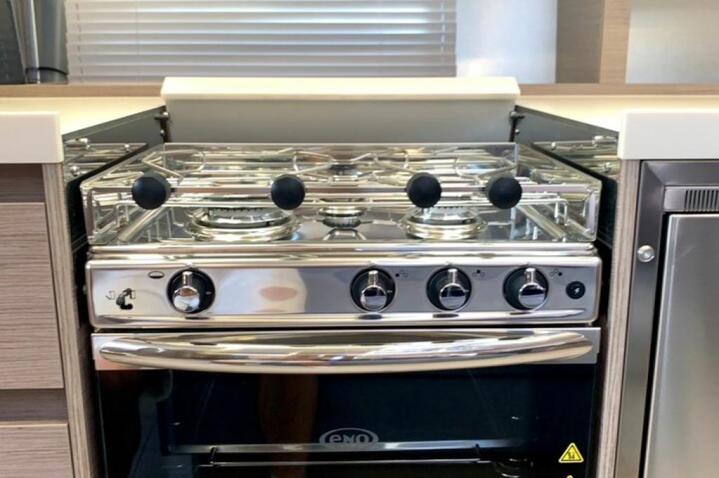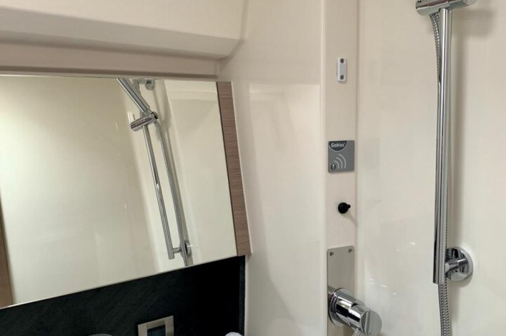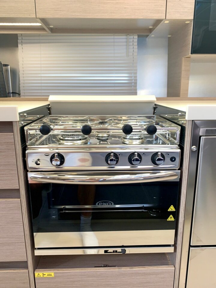 | Inside | Backofen, Eiswürfelmaschine, Gefrierschrank, Generator, Inverter 12V/220V, Klimaanlage (ohne Landstrombedarf), Kühlschrank, Lautsprecher im Salon, Mikrowelle, Pantryausstattung, Radio mit CD/MP3/USB, Salontisch absenkbar, TV, Watermaker, WC (elektr.) |