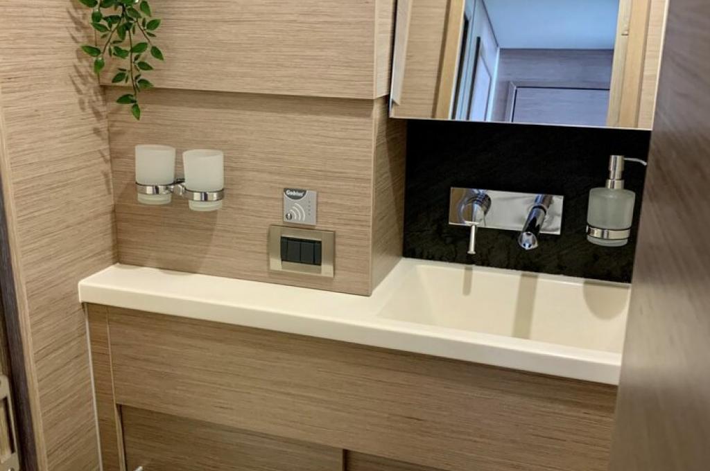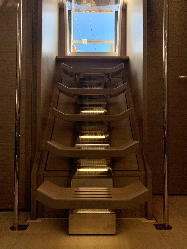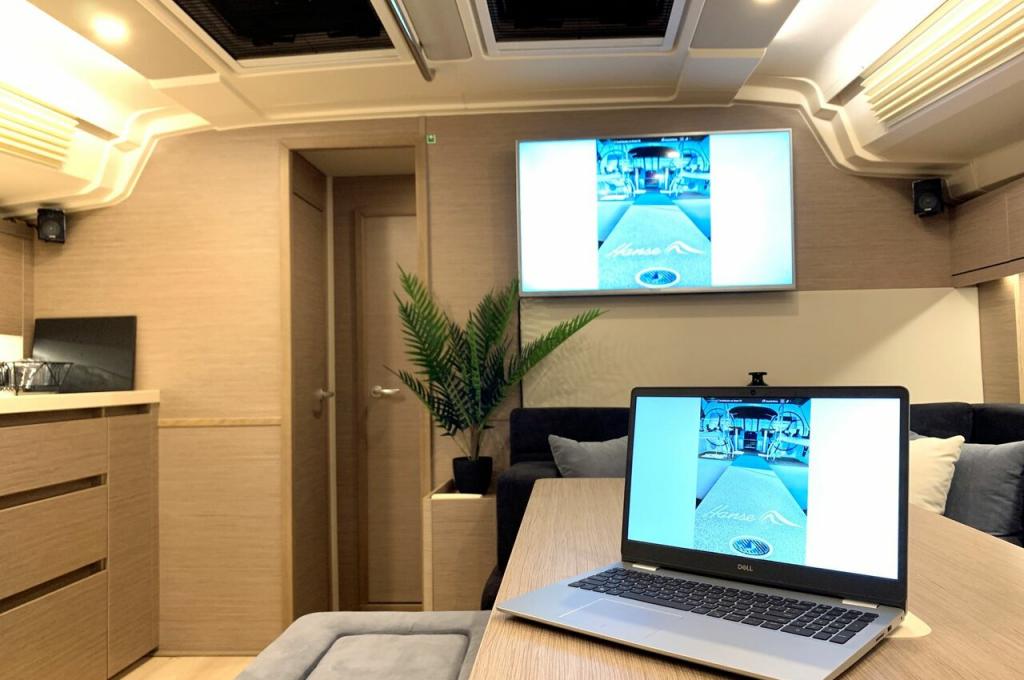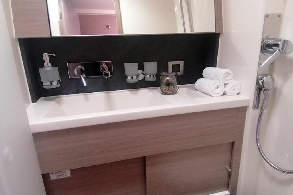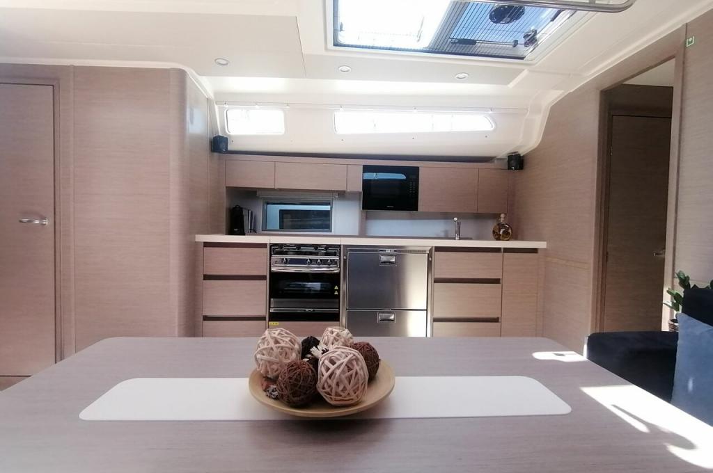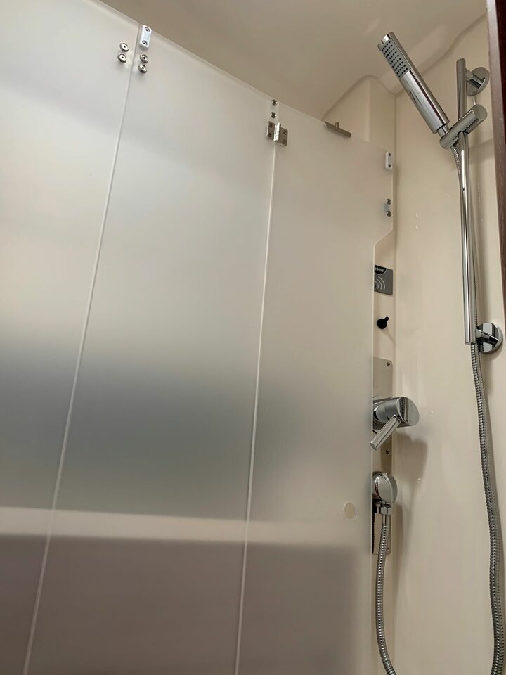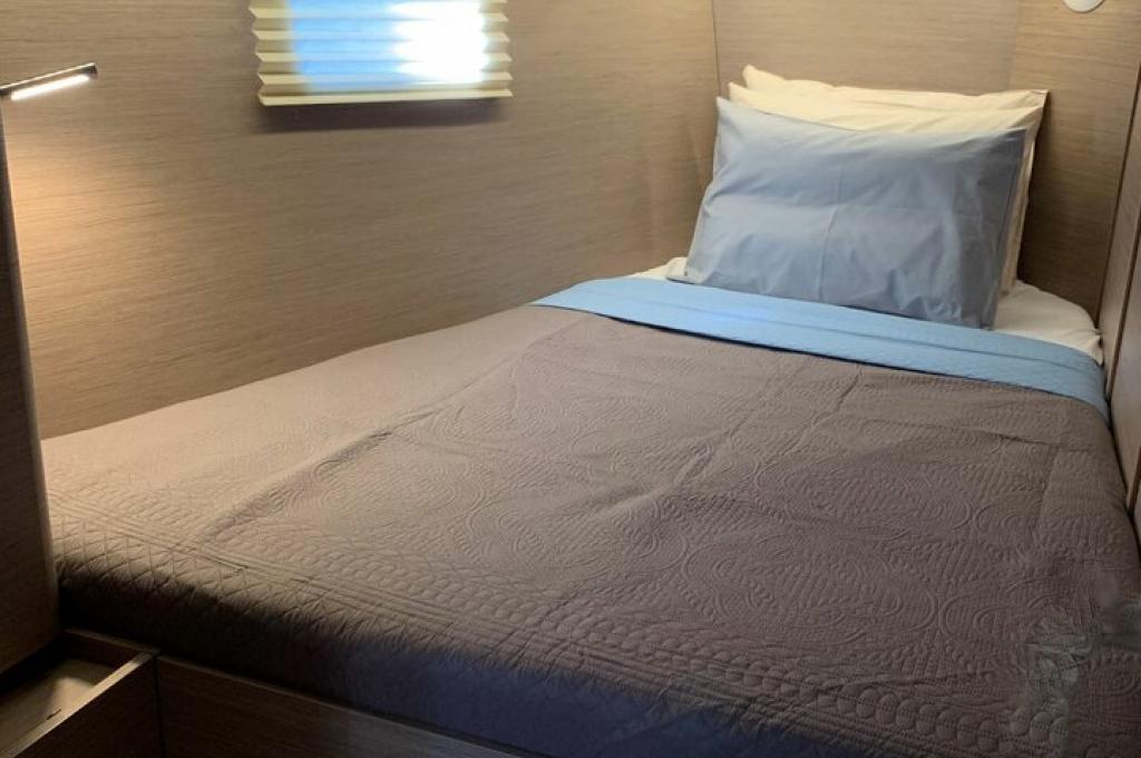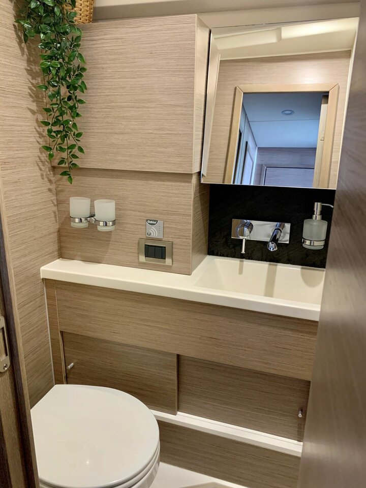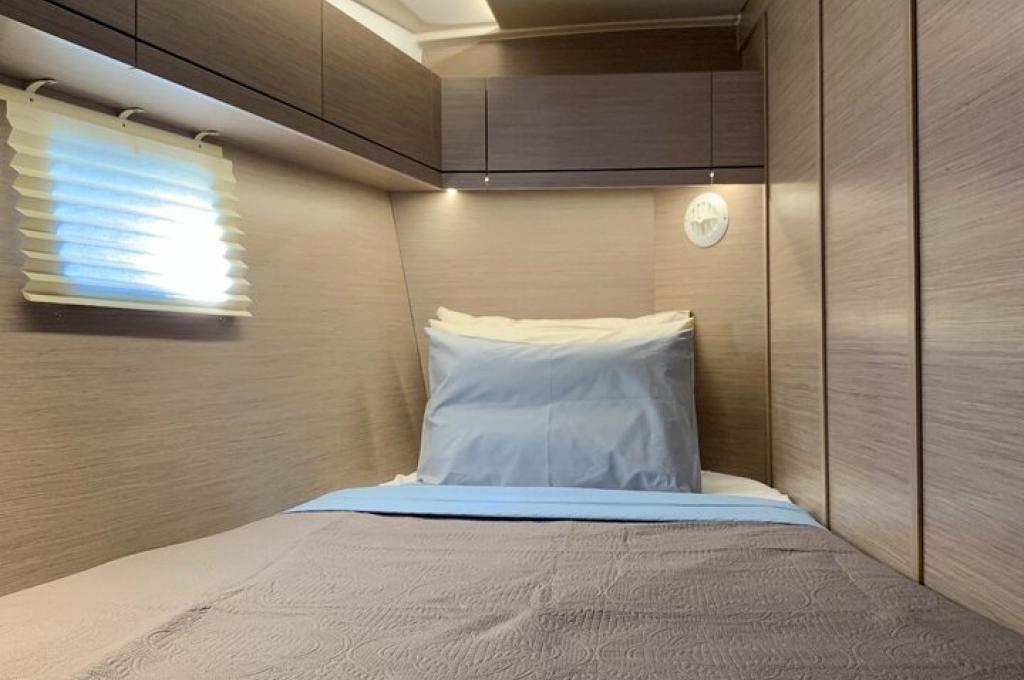 | Inside | Backofen, Eiswürfelmaschine, Gefrierschrank, Generator, Inverter 12V/220V, Klimaanlage (ohne Landstrombedarf), Kühlschrank, Lautsprecher im Salon, Mikrowelle, Pantryausstattung, Radio mit CD/MP3/USB, Salontisch absenkbar, TV, Watermaker, WC (elektr.) |