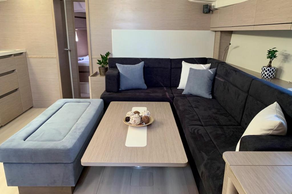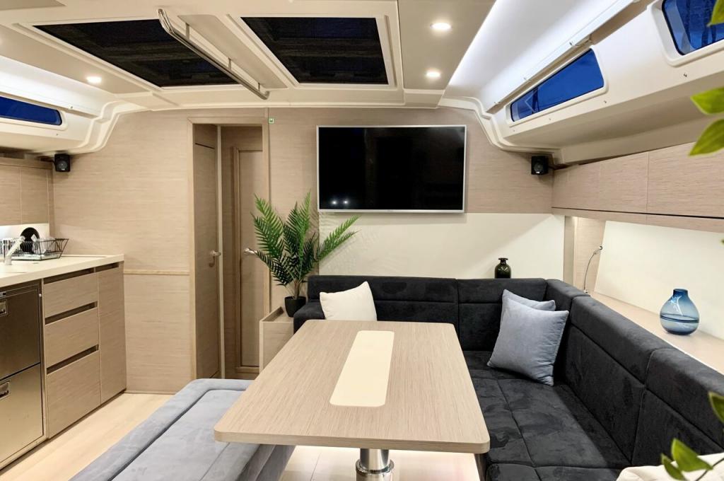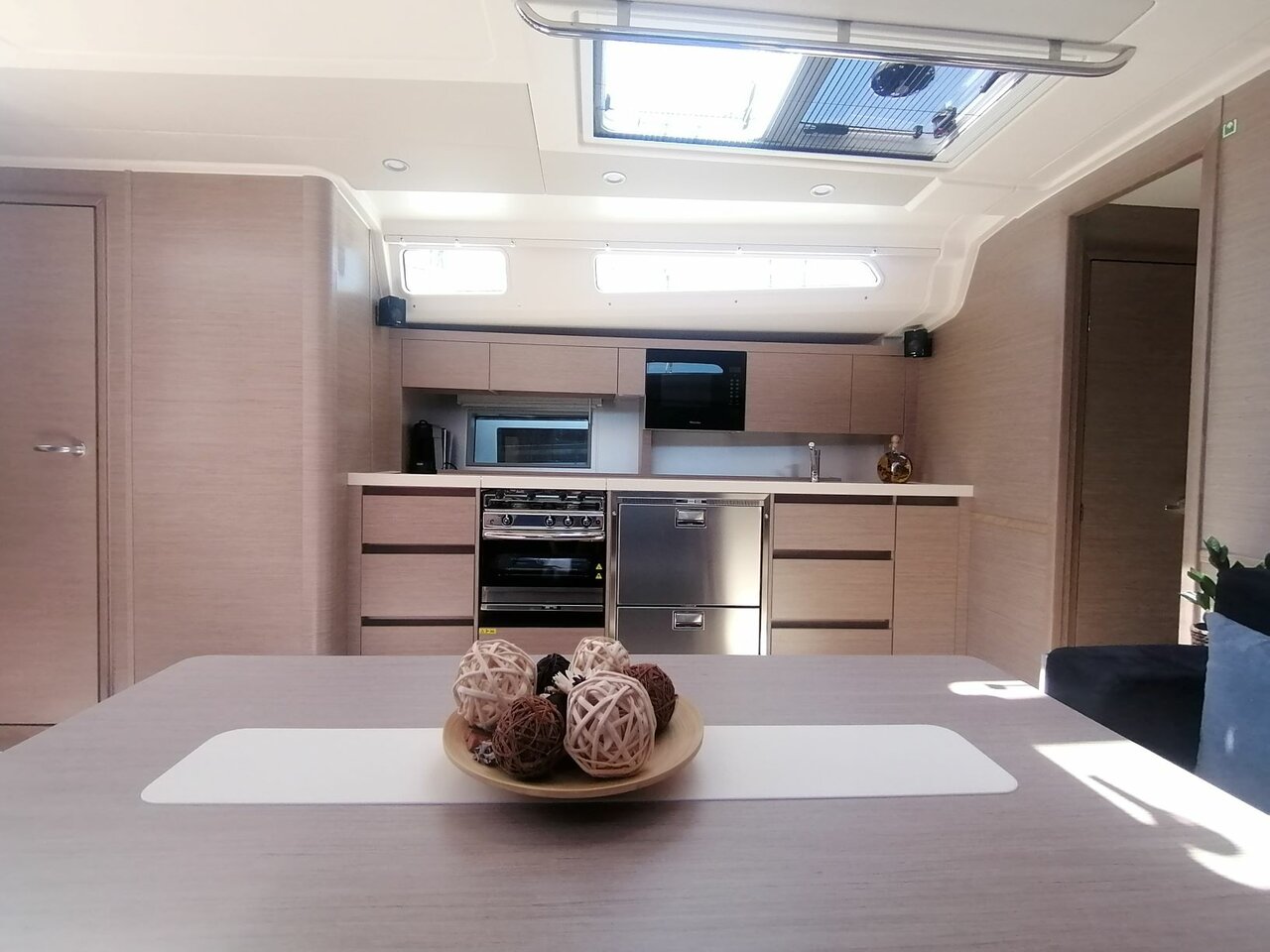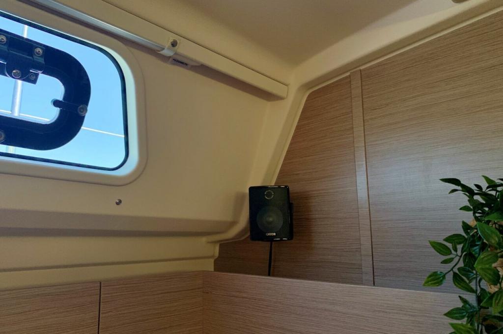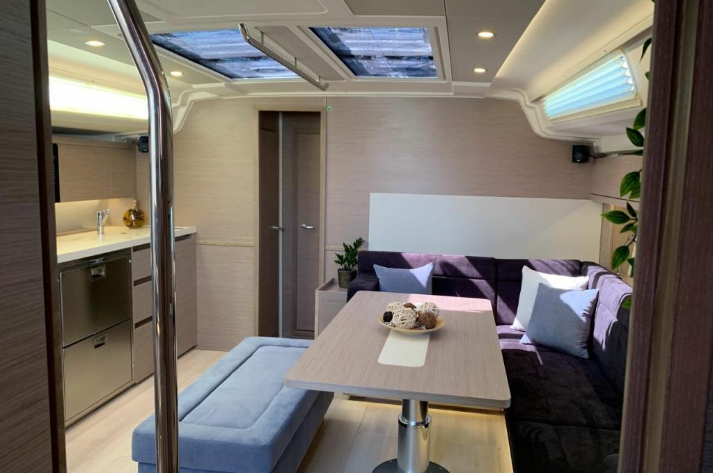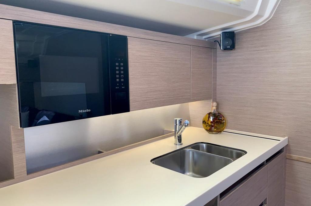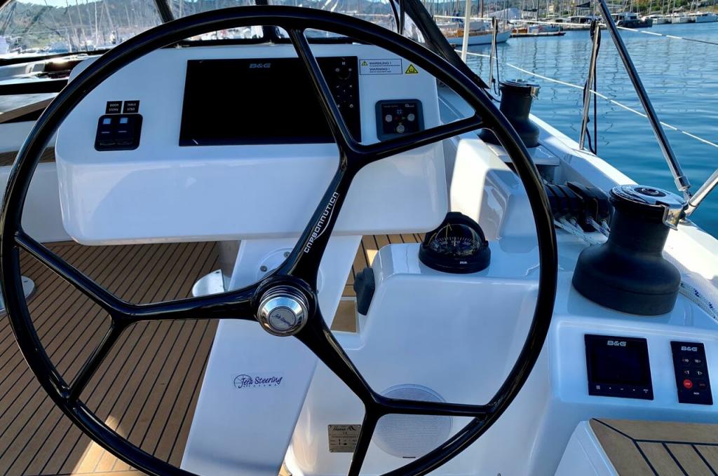 | Outside | Badeleiter, Badeplattform, Biminitop, Cockpitlautsprecher, Cockpitpolster, Delta-Anker, Sprayhood, Teak im Cockpit, Winschen |