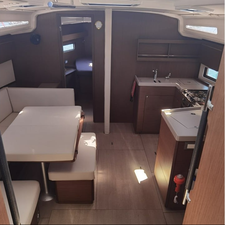 | Outside | 220 V-Landanschluss, Anker mit Kette, Badeleiter, Badeplattform, Biminitop, Bootshaken, Cockpitlautsprecher, Cockpitleuchte, Cockpitpolster, Deckbürste, elektr. Ankerwinsch, Fender, Festmacherleinen, Gangway, Kunststoff-Eimer (Pütz), Segel-Flickwerkzeug, Solaranlage, Sprayhood, Treibanker, Wantenschneider, Wasserschlauch, Winschen |