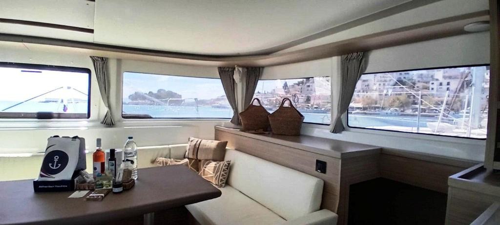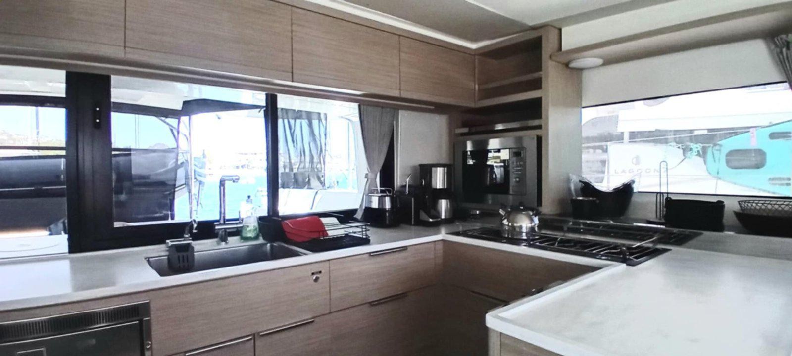 | Inside | 220V Steckdosen, Backofen, Eiswürfelmaschine, Fäkalientank, Gasherd, Gefrierschrank, Generator, Inverter 12V/220V, Kaffeemaschine, Klimaanlage (ohne Landstrombedarf), Kühlschrank, Ladegerät, Landstromkabel, Salontisch absenkbar, USB Steckdose, Ventilatoren in Salon und Kabinen, Warmwasser, Watermaker, WC (elektr.) |