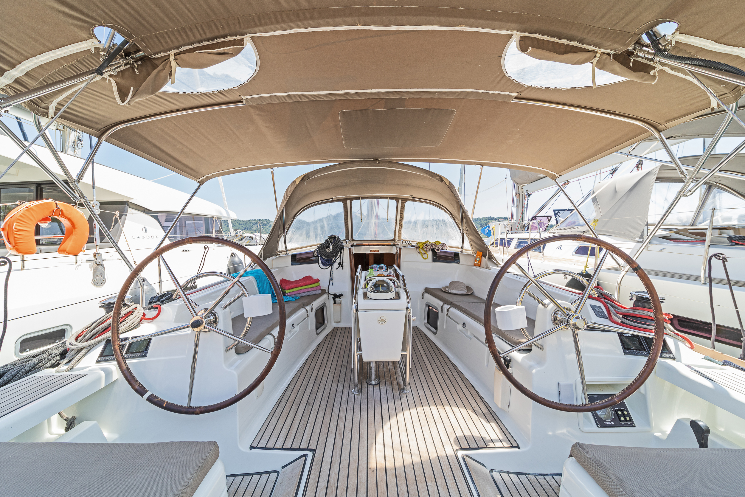 | Outside | 220 V-Landanschluss, Anker mit Kette, Badeleiter, Badeplattform, Biminitop, Bootshaken, Cockpitpolster, Cockpittisch, Fender, Gangway, Schnorchelausrüstung, Solaranlage, Sprayhood, Wantenschneider, Wasserschlauch, Winschen |