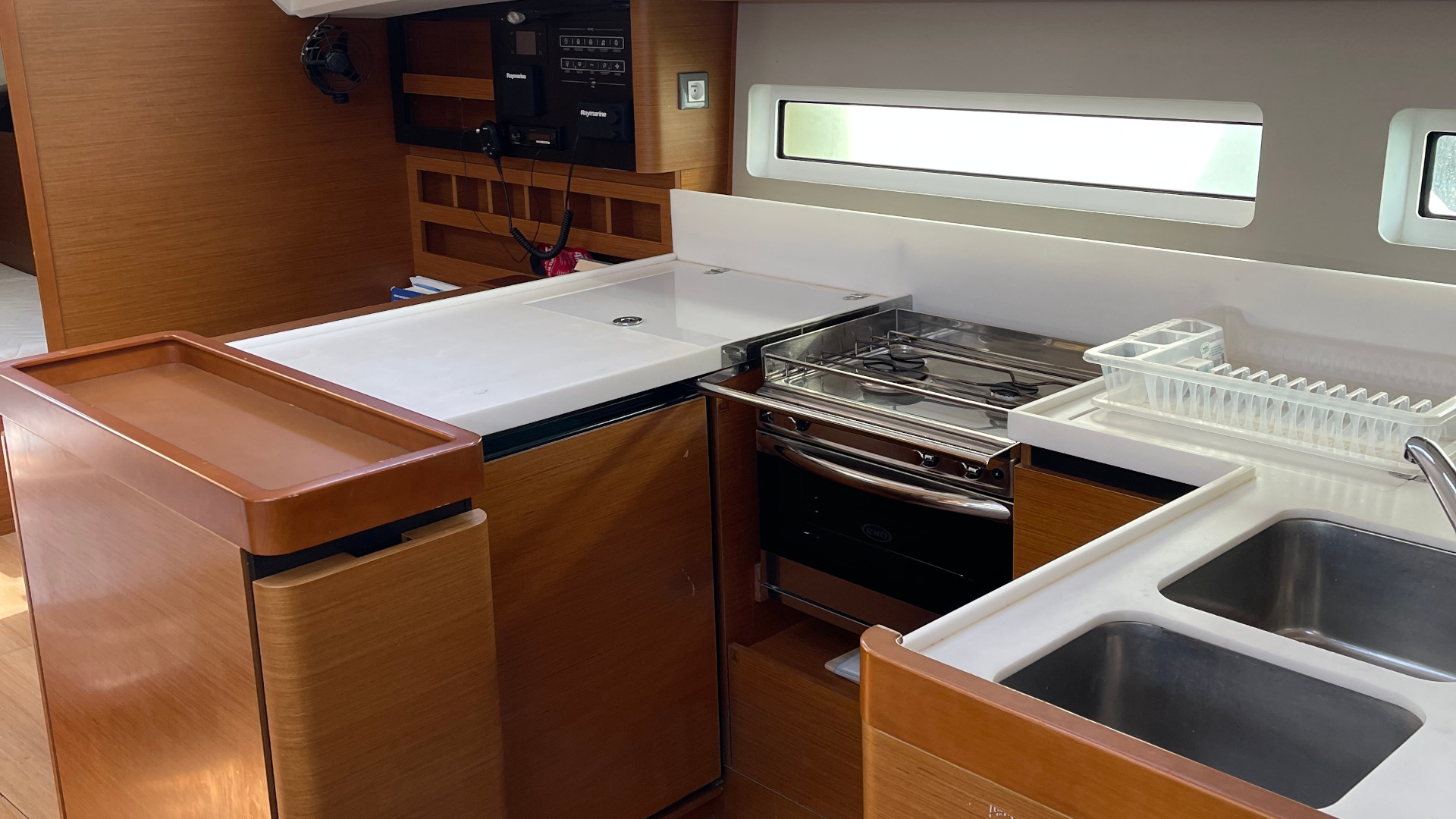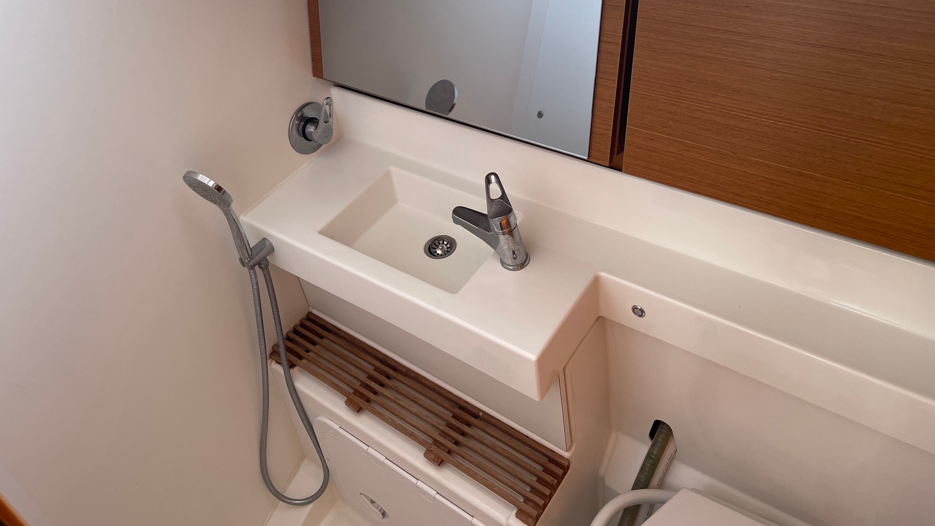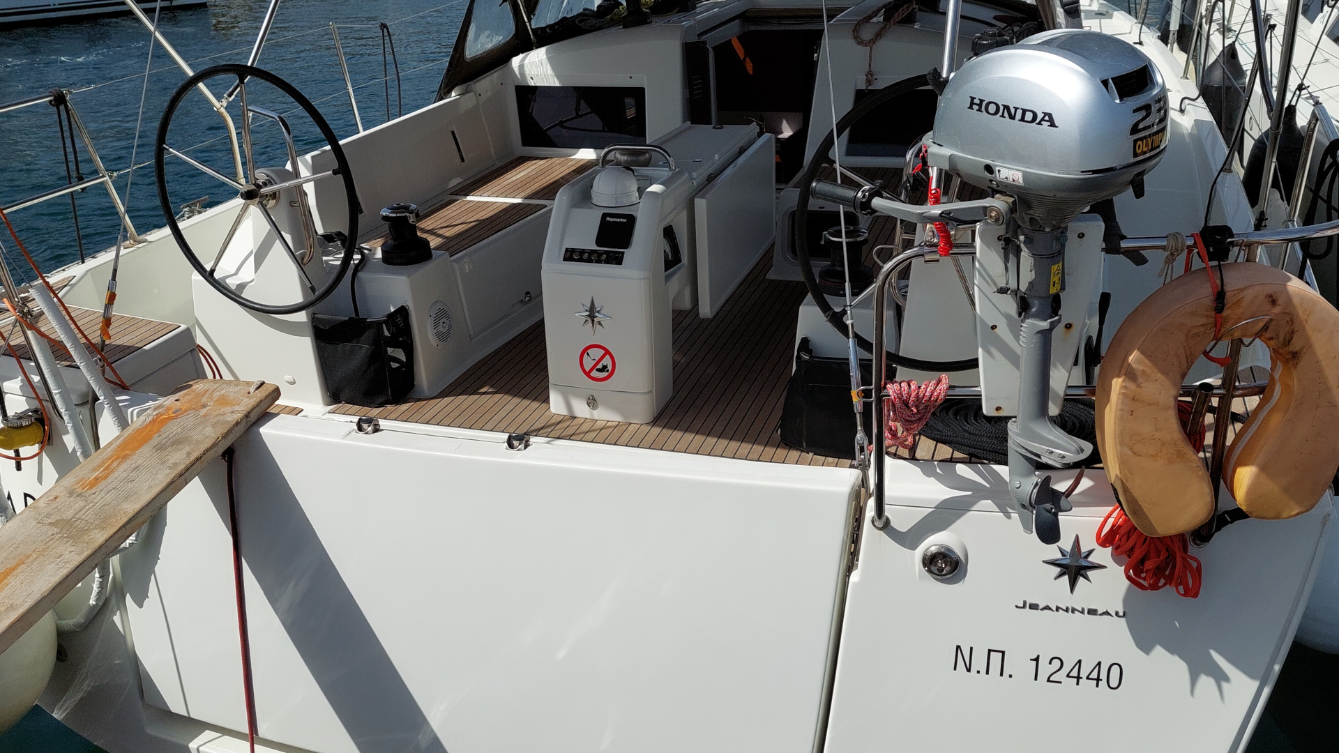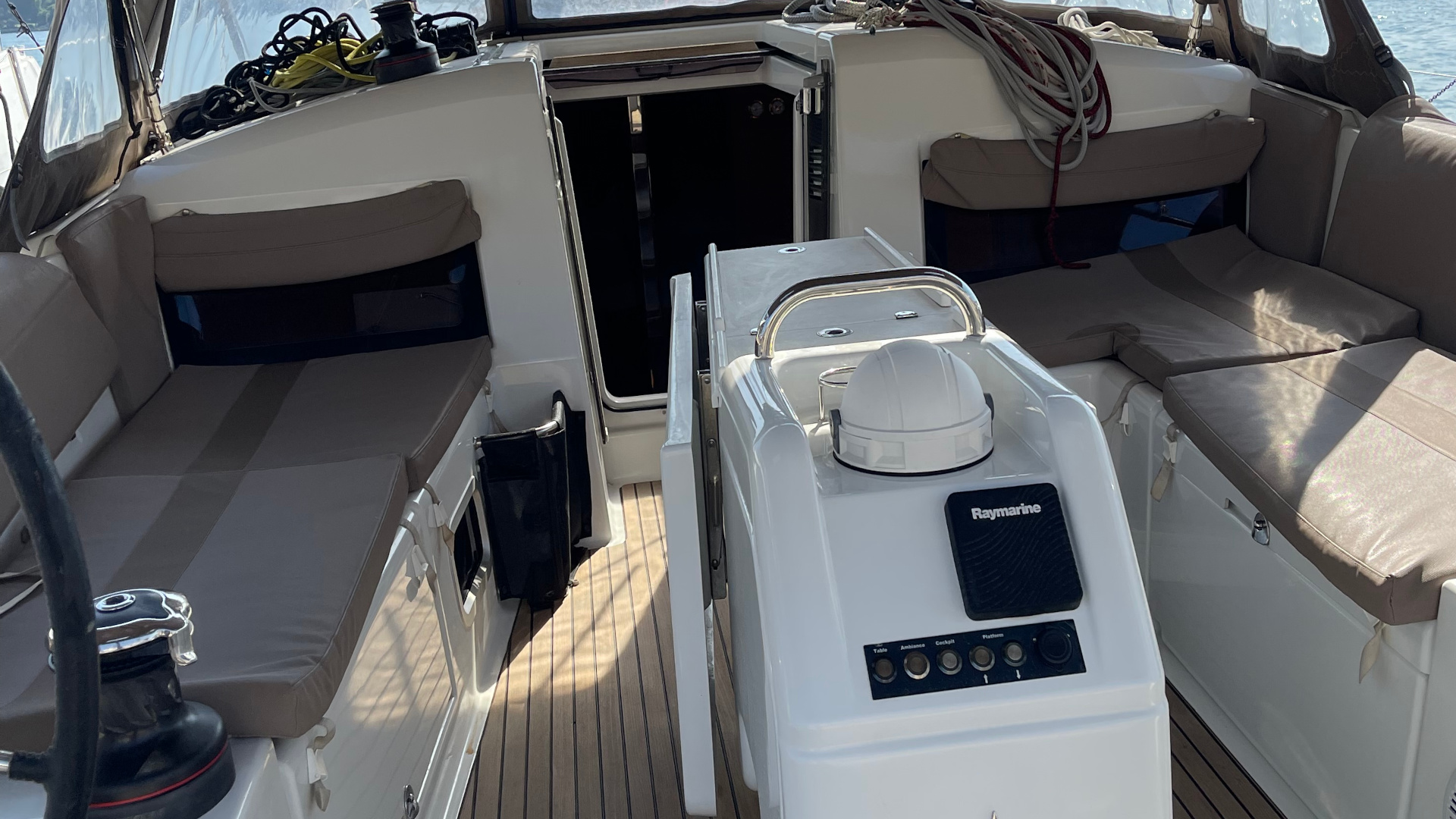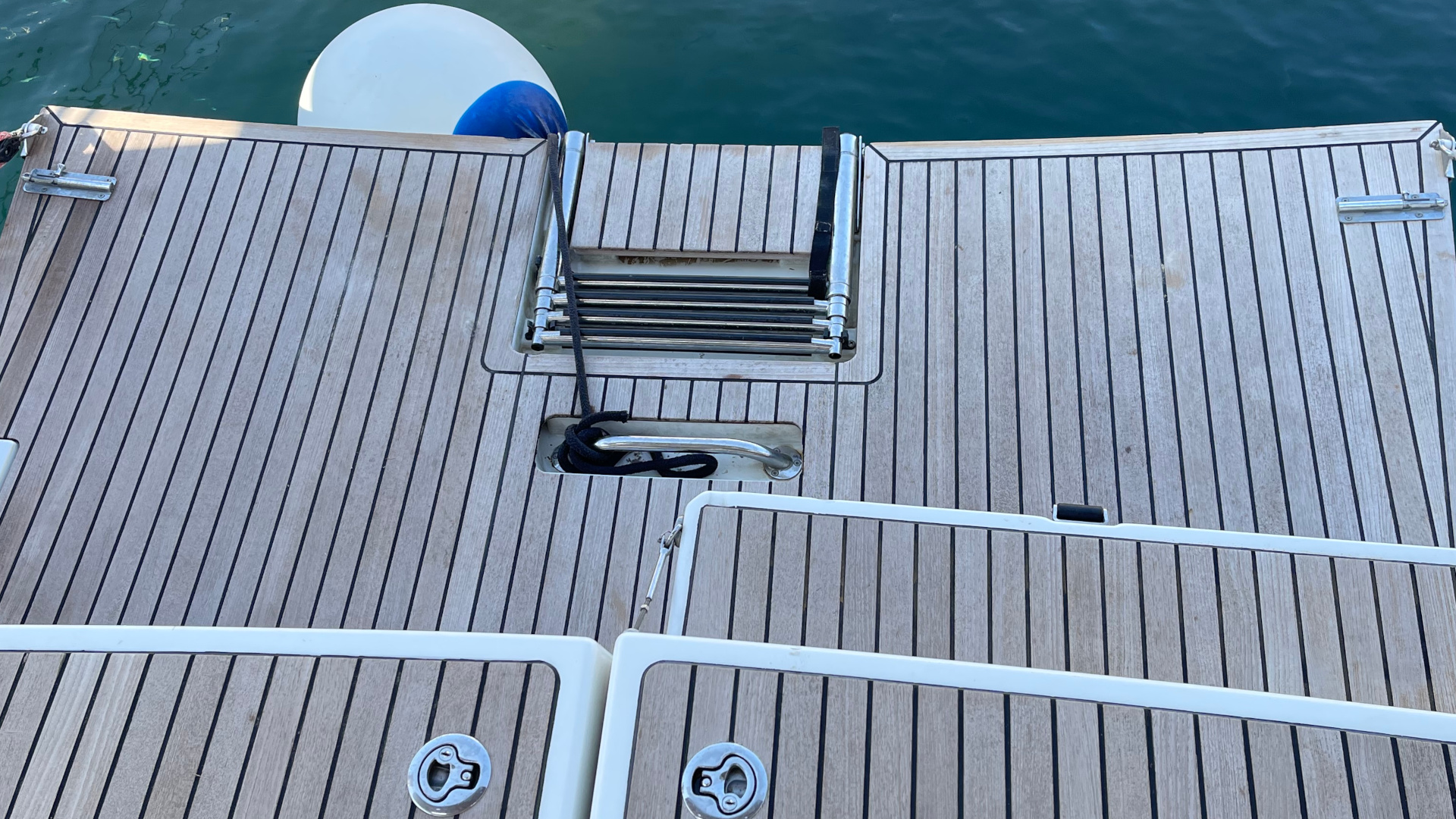 | Outside | 220 V-Landanschluss, Badeplattform, Biminitop, Cockpitdusche, Cockpitlautsprecher, Cockpitpolster, Cockpittisch, elektr. Ankerwinsch, Festmacherleinen, Gangway, Schnorchelausrüstung, Solaranlage, Sprayhood, Teak im Cockpit |