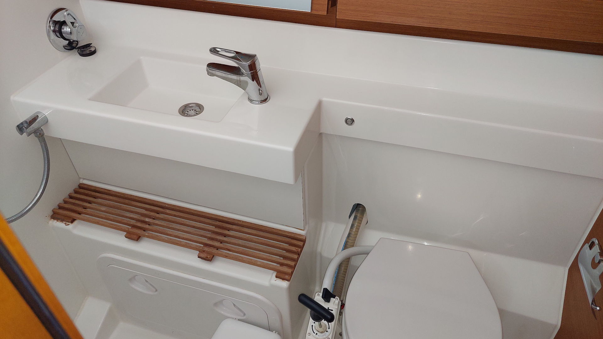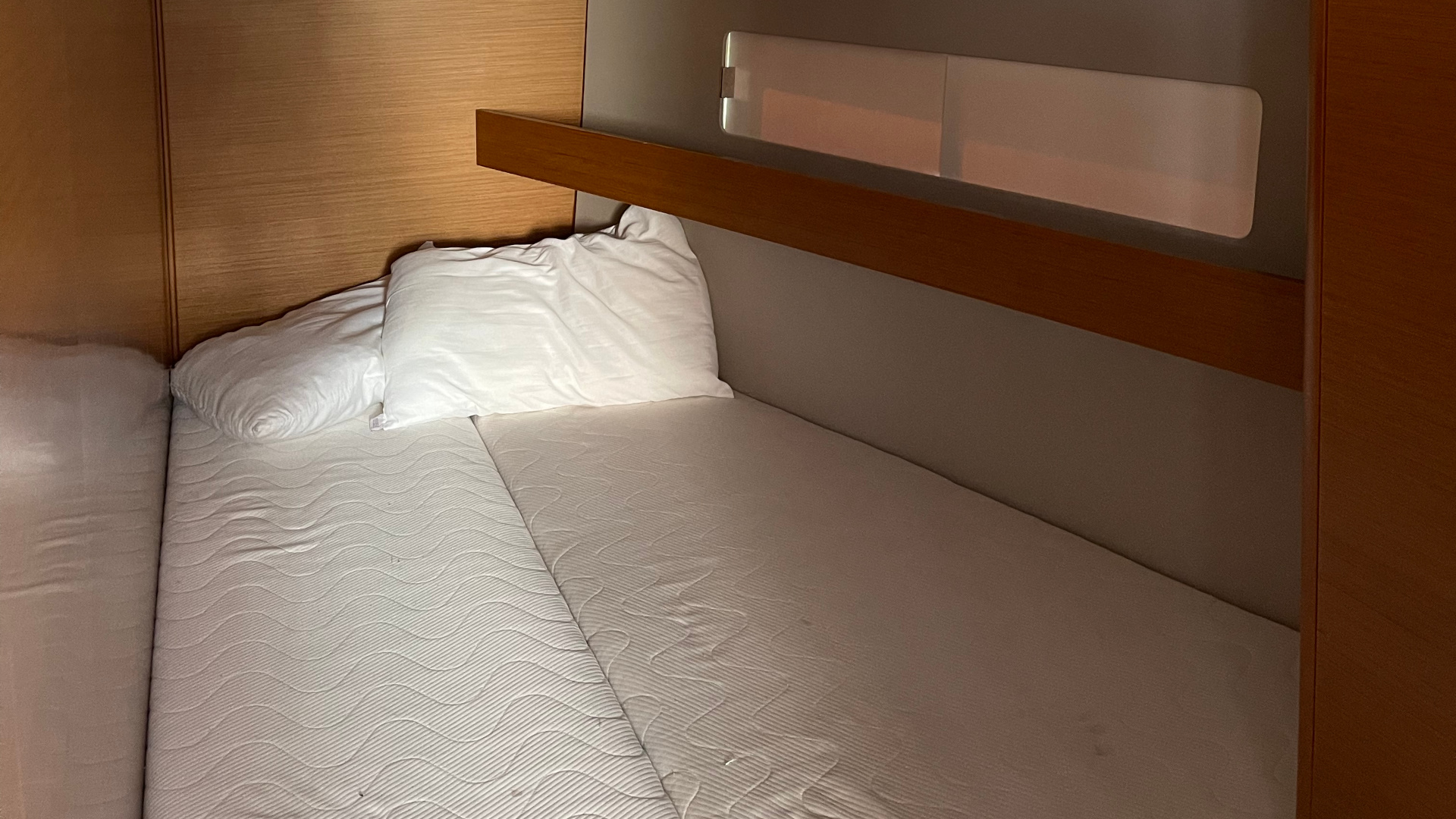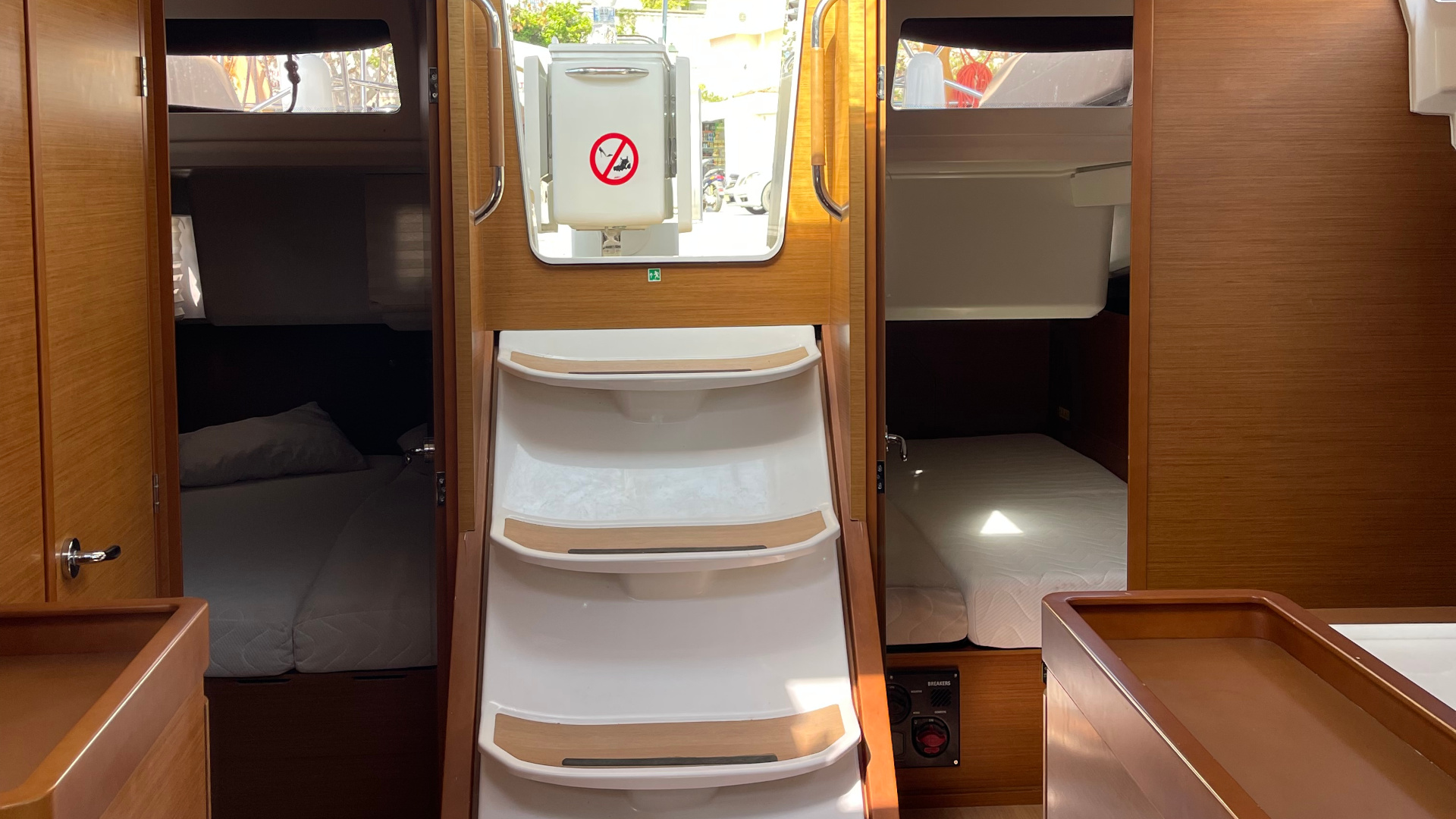 | Inside | 220V Steckdosen, Fäkalientank, Flexschott, Kühlschrank mit Gefrierfach, Pantryausstattung, Radio mit CD, USB, Bluetooth, Salontisch absenkbar, Ventilatoren in Salon und Kabinen, Warmwasser |