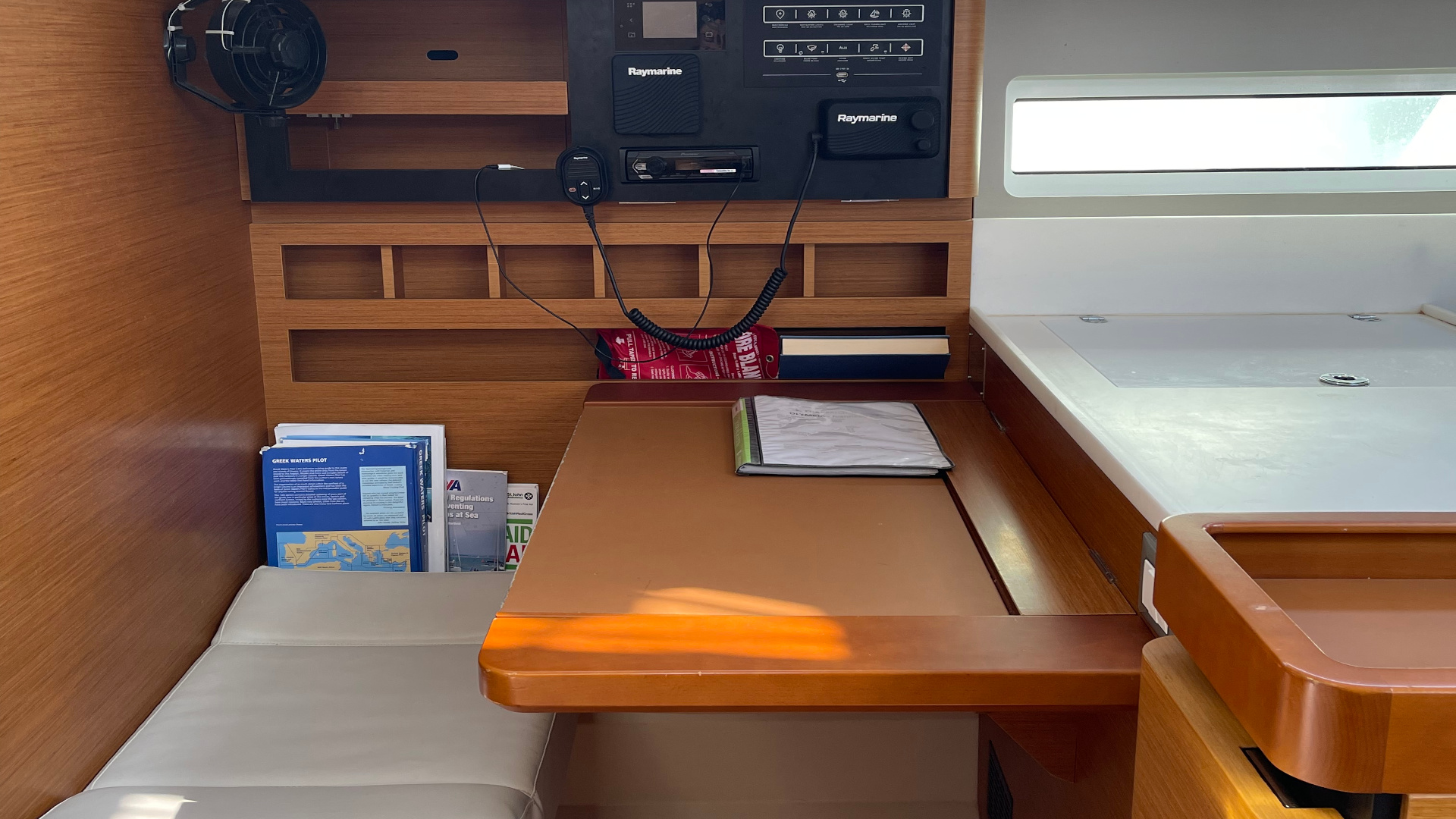 | Navigation | Barometer, GPS mit Farbkartenplotter im Cockpit, Hafenhandbücher, Seekarten, Tridata (Log, Echolot, Windm.) |