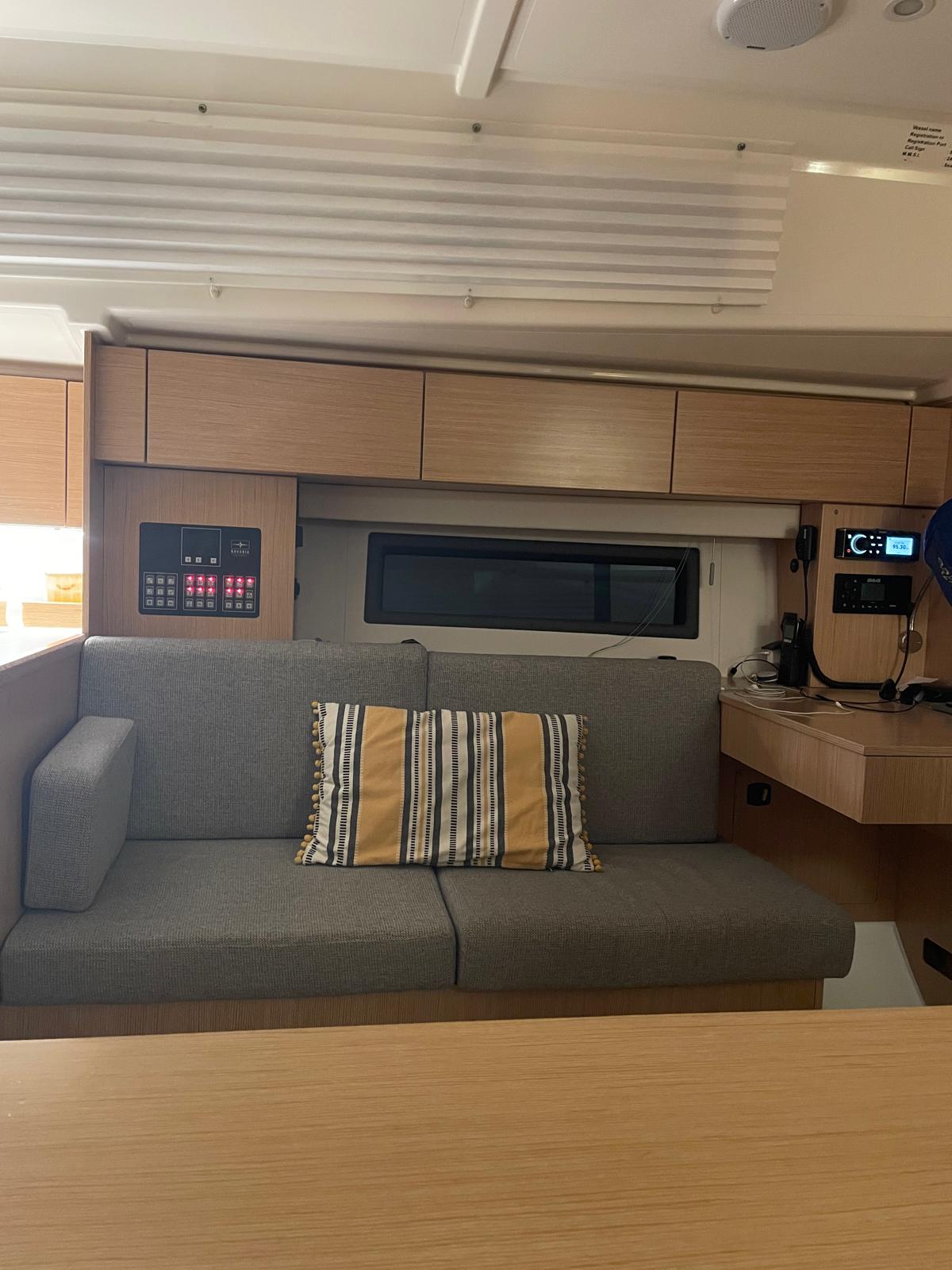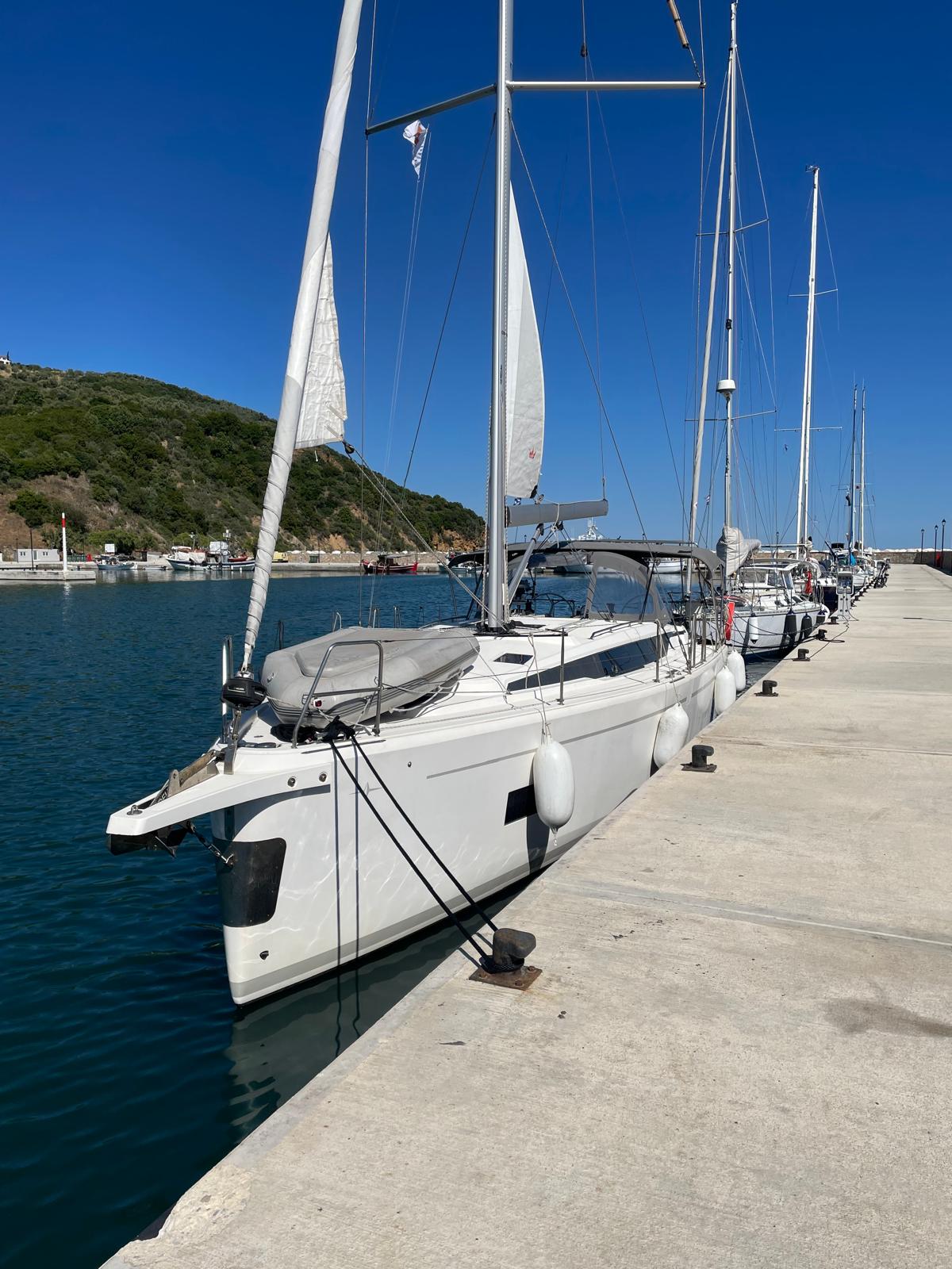 | Outside | Außendusche, Badeleiter, Biminitop, Cockpitlautsprecher, Cockpitpolster, Cockpittisch, elektr. Ankerwinsch, Gangway, Solaranlage, Sprayhood, Teak im Cockpit |