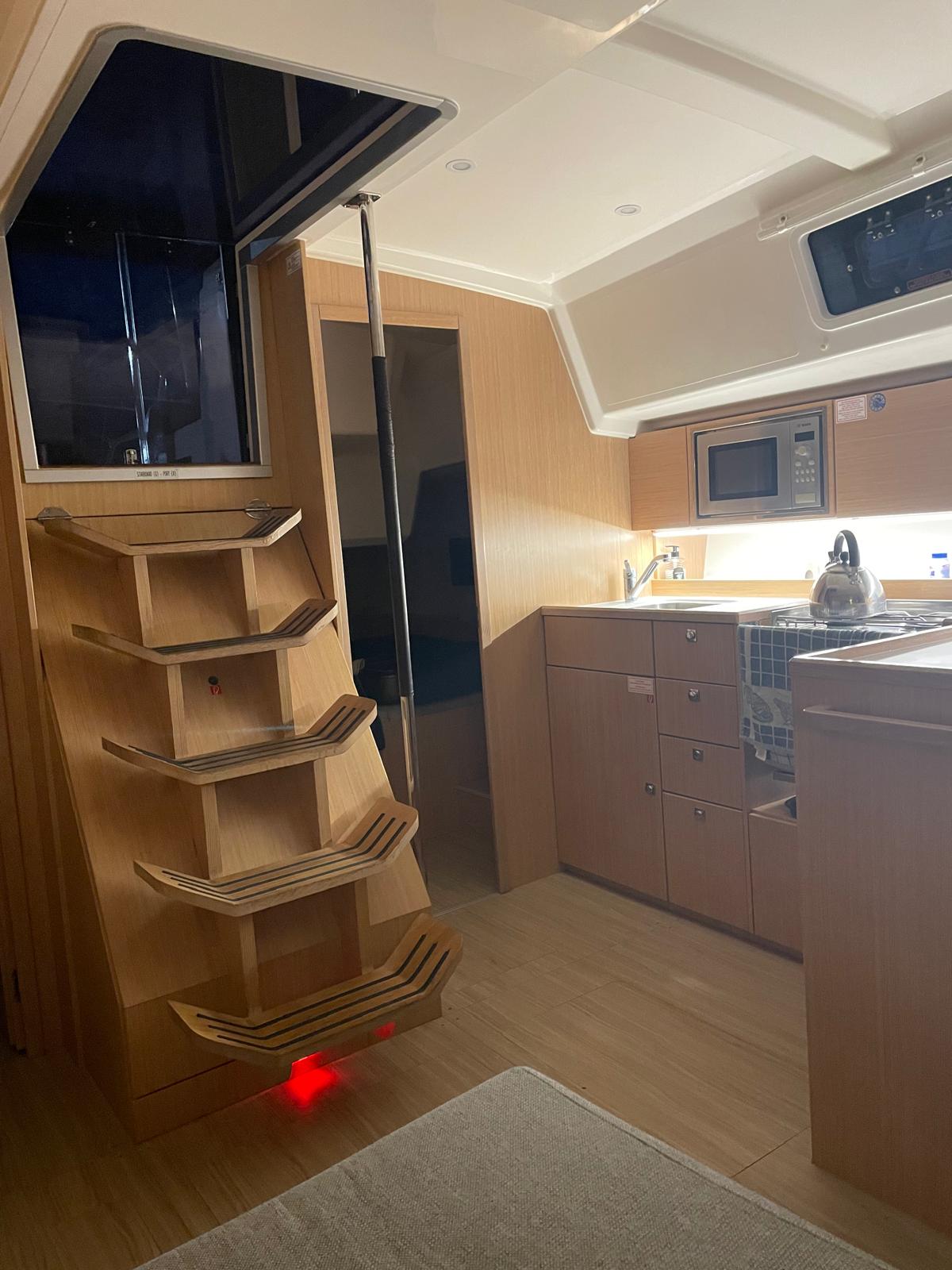 | Inside | Fäkalientank, Gasherd, Gefrierschrank, Kühlschrank, Moskitonetze, Pantryausstattung, Radio mit USB, Bluetooth und AUX-In, Ventilatoren in Kabinen, Warmwasser, WC (elektr.) |