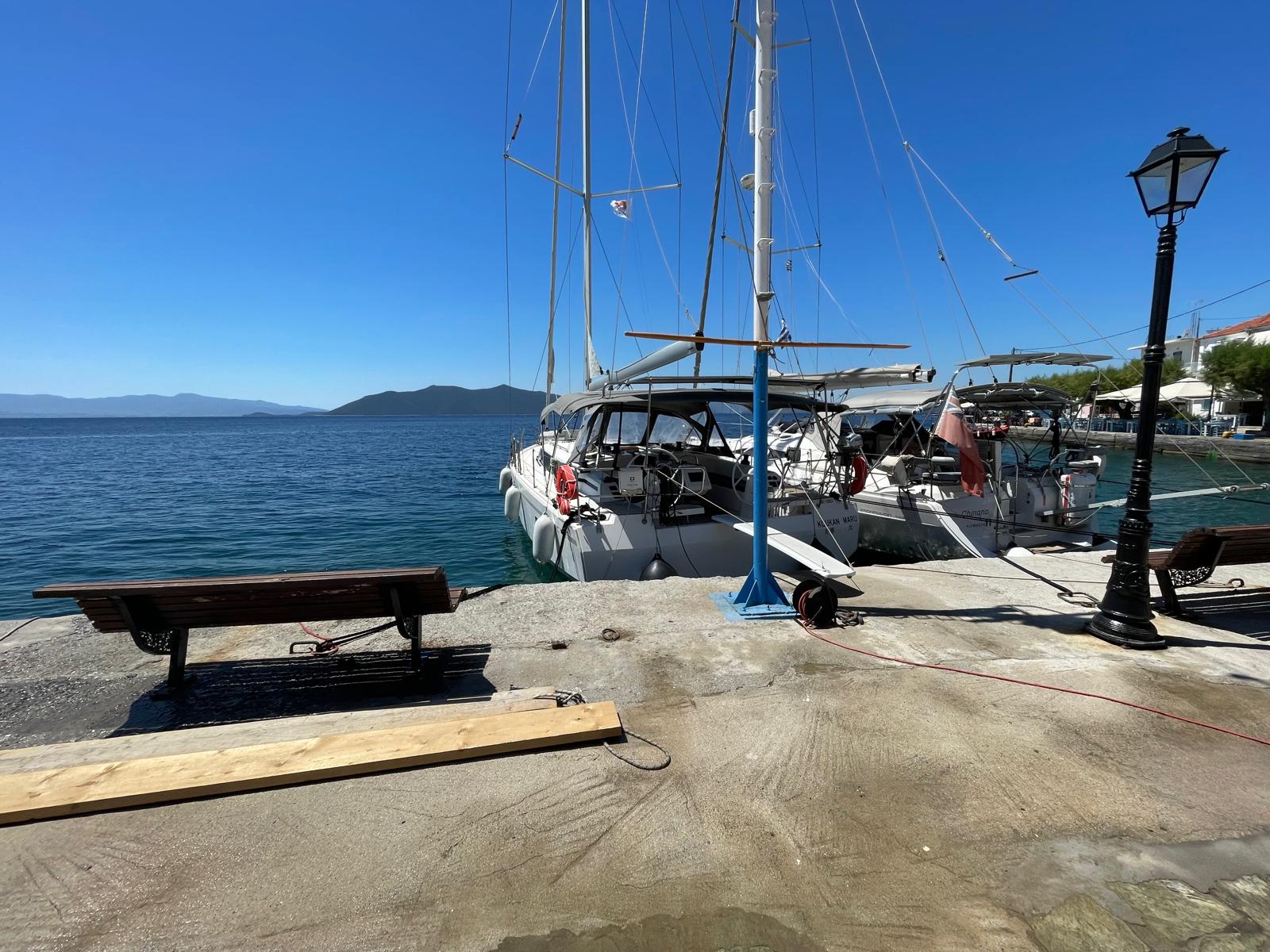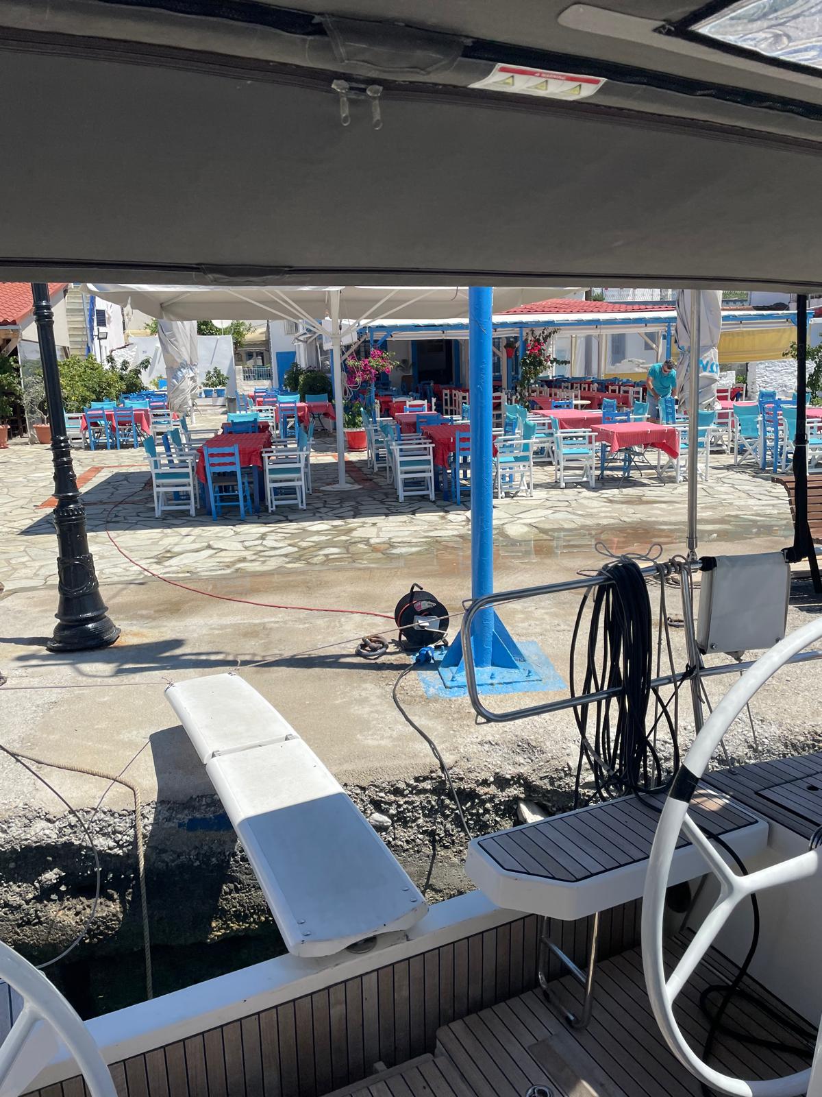 2. Die Gangway war schlichtweg gefährlich. Sie ist in der Mitte faltbar und das landseitige Ende an der Railing per dünner Leine befestigt. Zweimal ist sie beim verlassen der Yacht zusammengklappt und zwischen Yacht und Pier gestürzt. Die Befestigung mittels Leine an der Yacht war zu tief. Bei anderen Yachten war die Befestigung mittels Leine aus Richtung Mast gegeben. Das wäre auch hier sehr hilfreich.