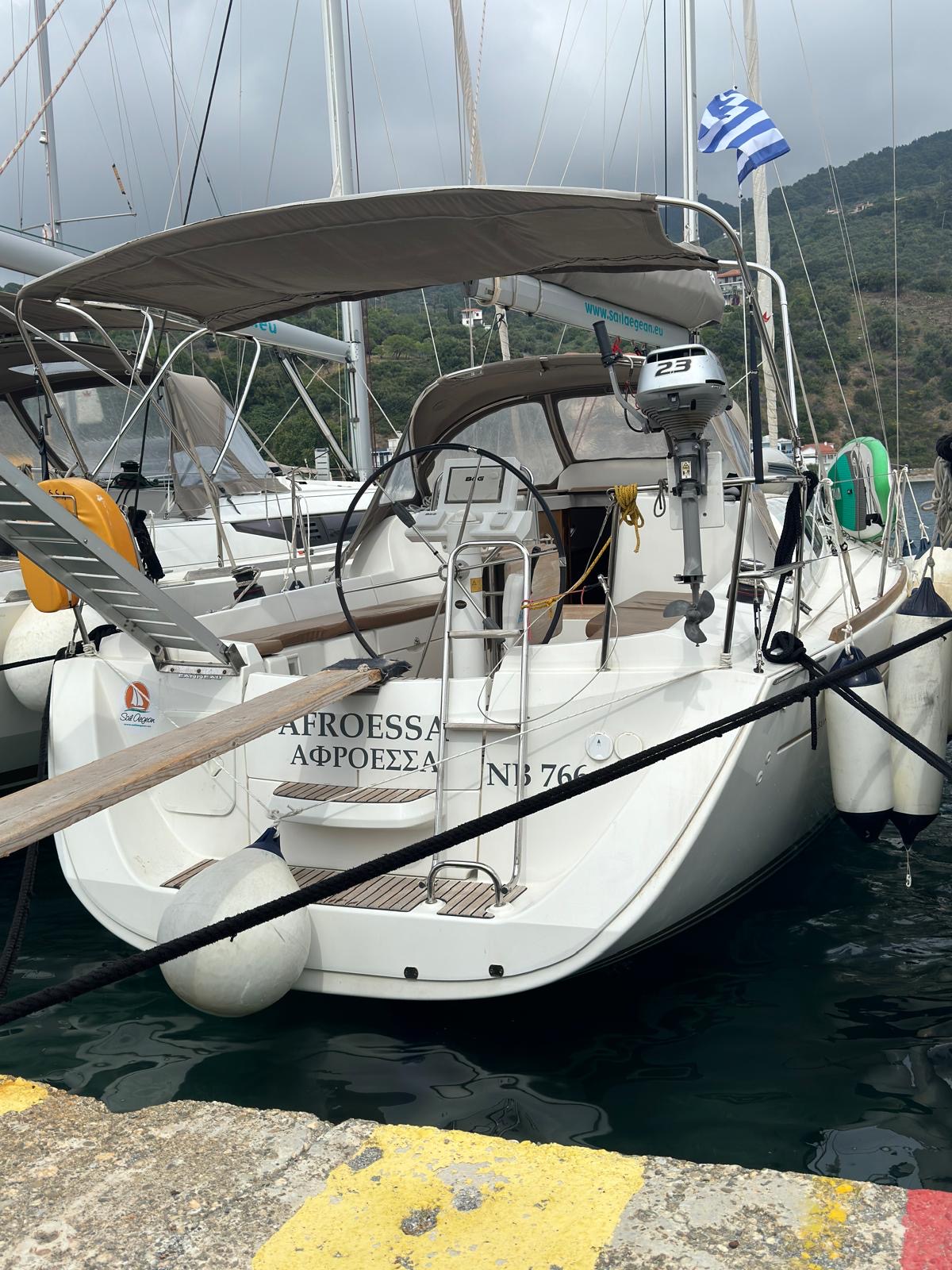 | Outside | Außendusche, Badeleiter, Biminitop, Cockpitlautsprecher, Cockpitpolster, Cockpittisch, elektr. Ankerwinsch, Gangway, Solaranlage, Sprayhood, Teak im Cockpit |