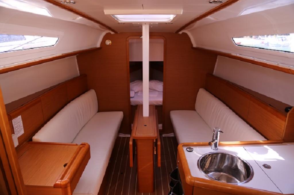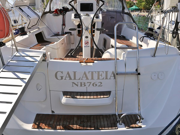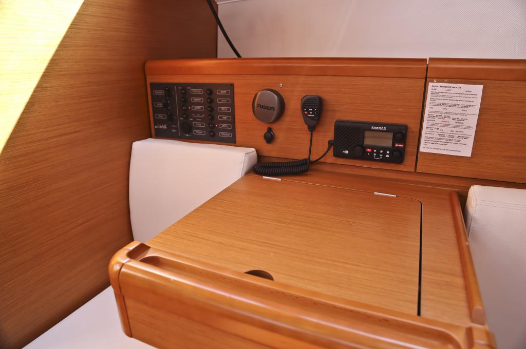 | Outside | Außendusche, Badeleiter, Biminitop, Cockpitlautsprecher, Cockpitpolster, Cockpittisch, elektr. Ankerwinsch, Gangway, Solaranlage, Sprayhood, Teak im Cockpit |