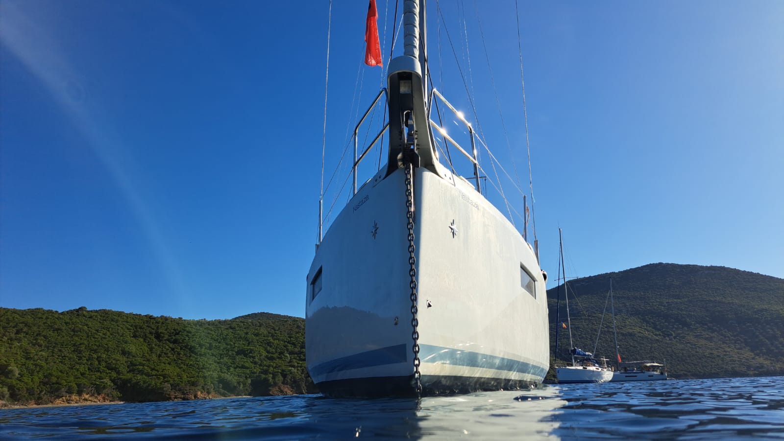 | Navigation | Echolot, GPS mit Kartenplotter, Hafenhandbücher, Seekarten, Sumlog, Windmesser |