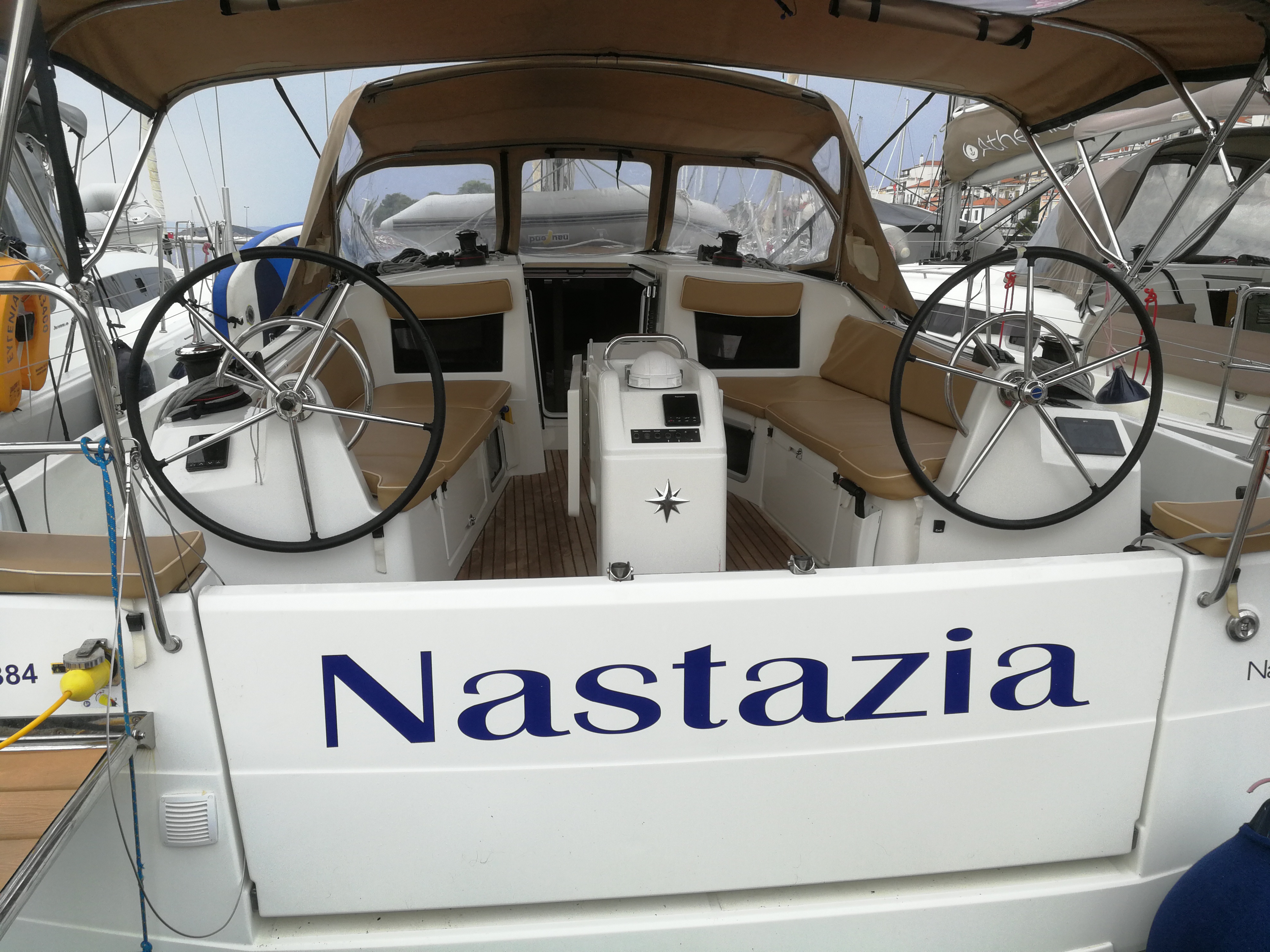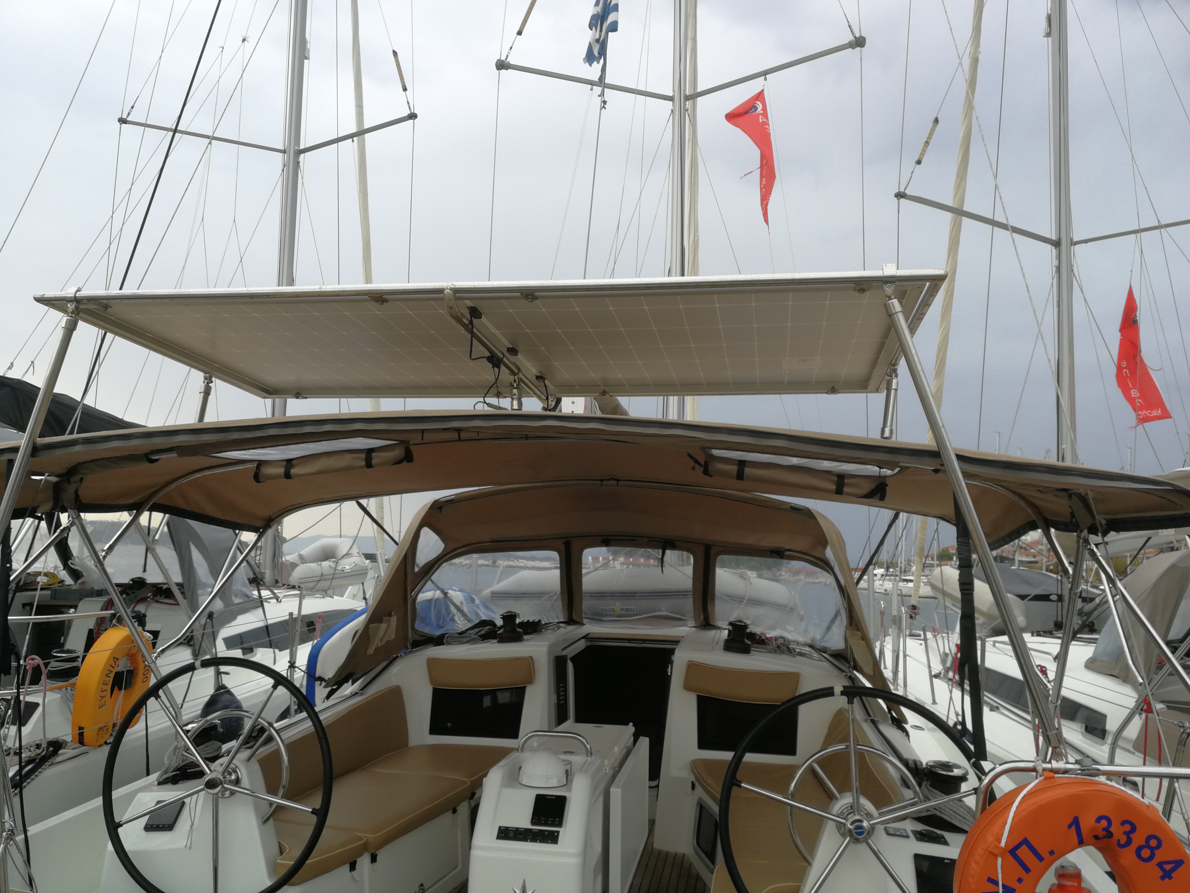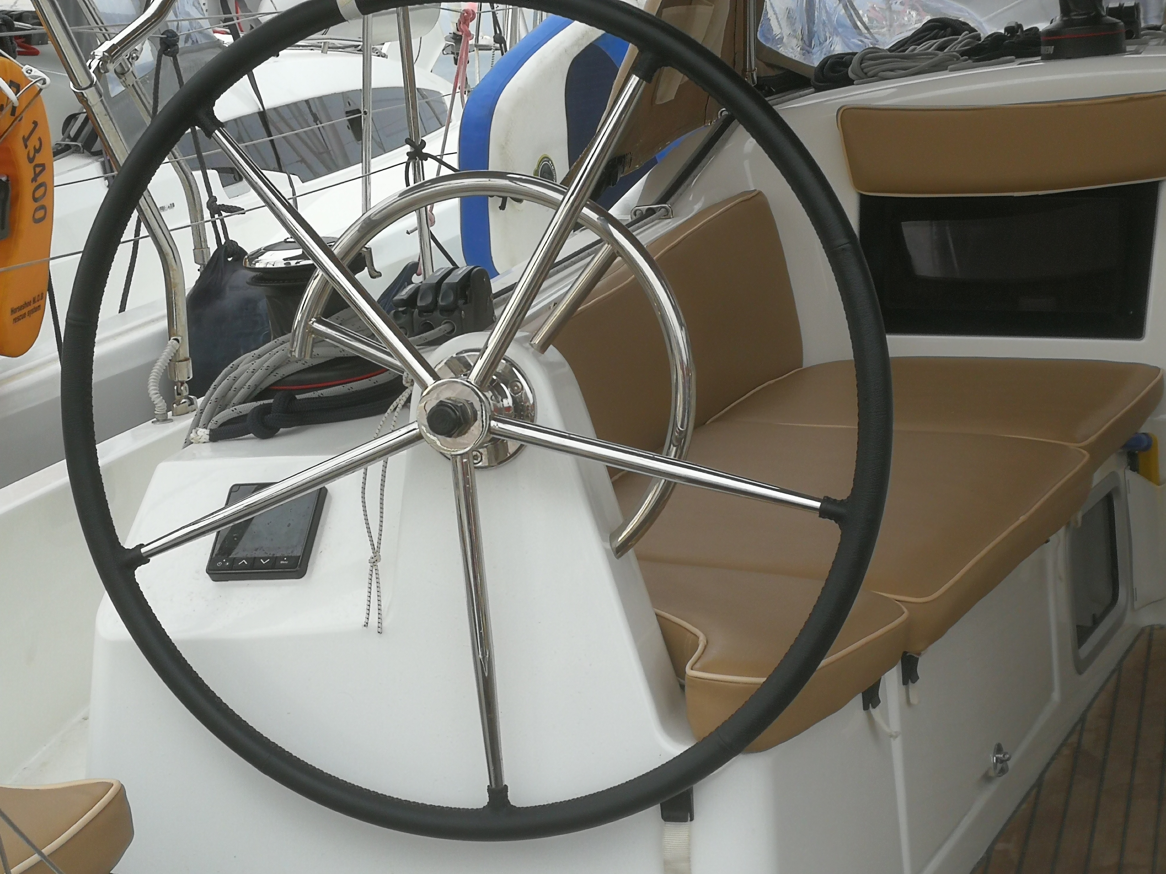 | Outside | 220 V-Landanschluss, Badeleiter, Biminitop, Cockpitdusche, Cockpitlautsprecher, Cockpitpolster, Cockpittisch, elektr. Ankerwinsch, Schnorchelausrüstung, Solaranlage, Sprayhood, Teak im Cockpit |