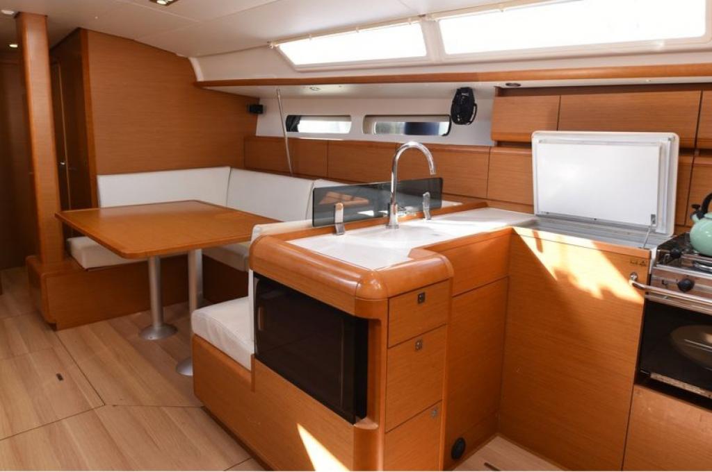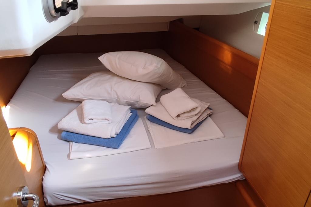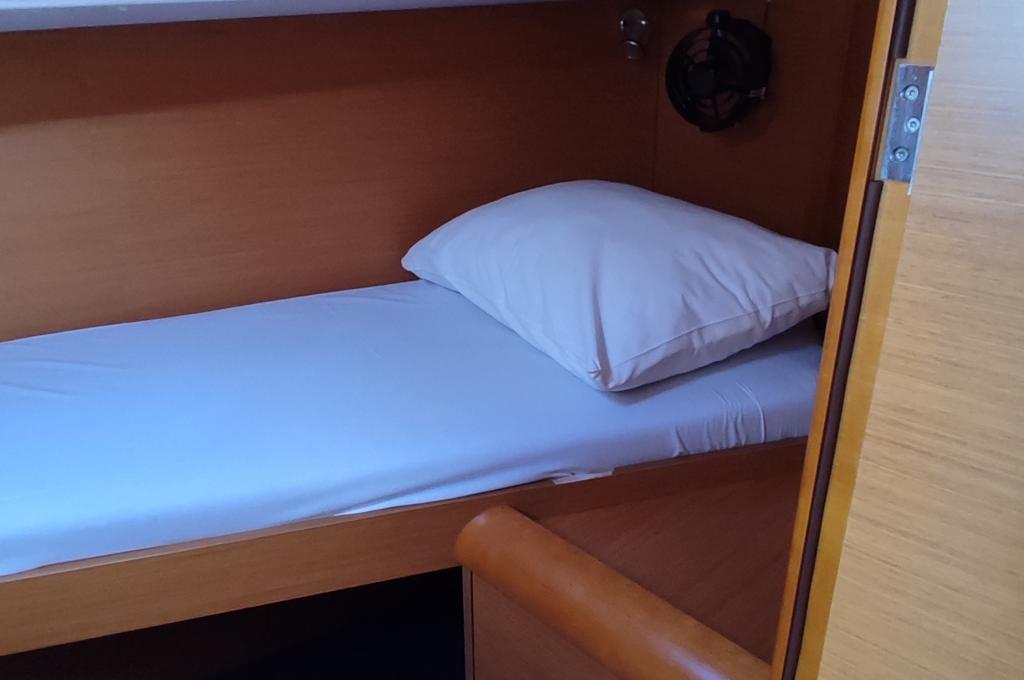 | Inside | Fäkalientank, Gasherd, Gefrierschrank, Inverter 12V/220V, Kühlschrank, Moskitonetze, Pantryausstattung, Radio mit USB und Bluetooth, Salontisch absenkbar, Ventilator, Ventilatoren in Kabinen, Warmwasser |