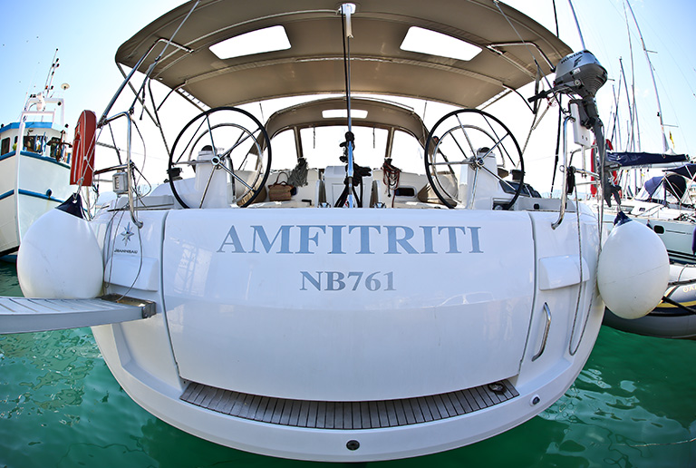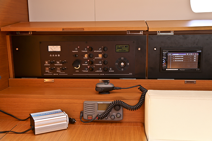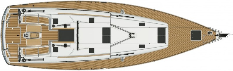 | Outside | Außendusche, Badeleiter, Biminitop, Cockpitlautsprecher, Cockpitpolster, Cockpittisch, elektr. Ankerwinsch, Gangway, Sprayhood, Teak im Cockpit |