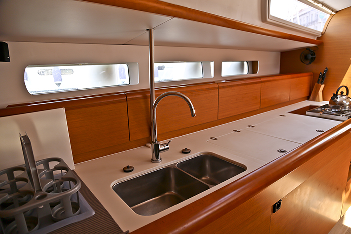 Inside Fäkalientank, Gasherd, Gefrierschrank, Inverter 12V/220V, Kühlschrank, Moskitonetze, Pantryausstattung, Radio mit CD und Bluetooth, Salontisch absenkbar, Ventilator, Ventilatoren in Kabinen